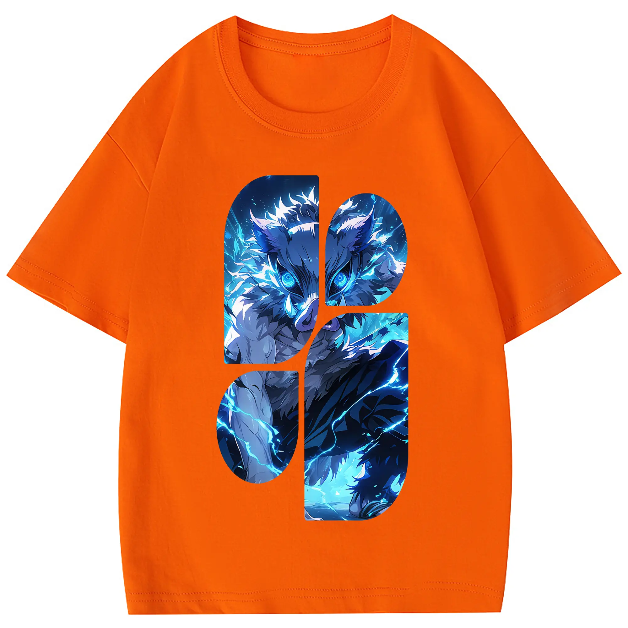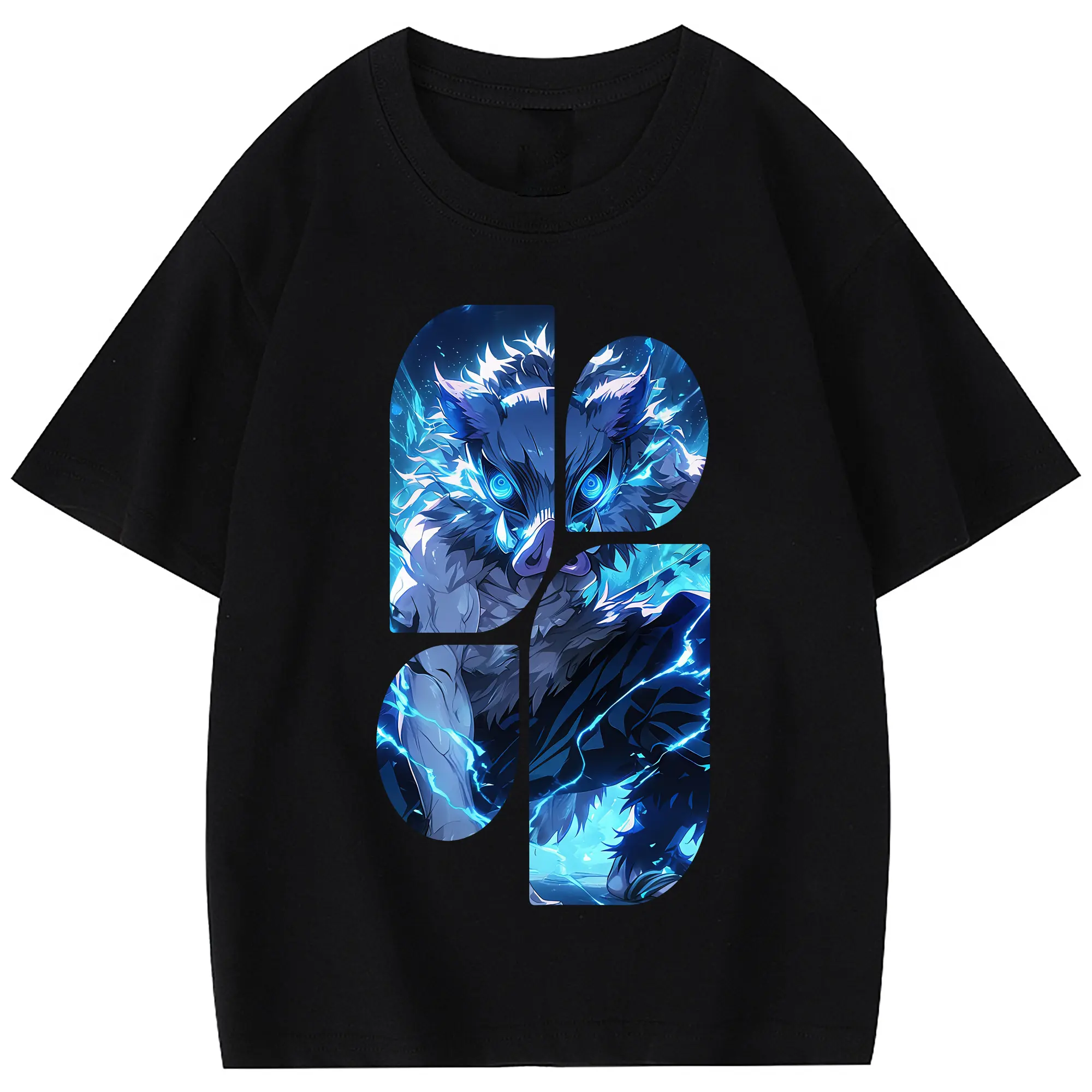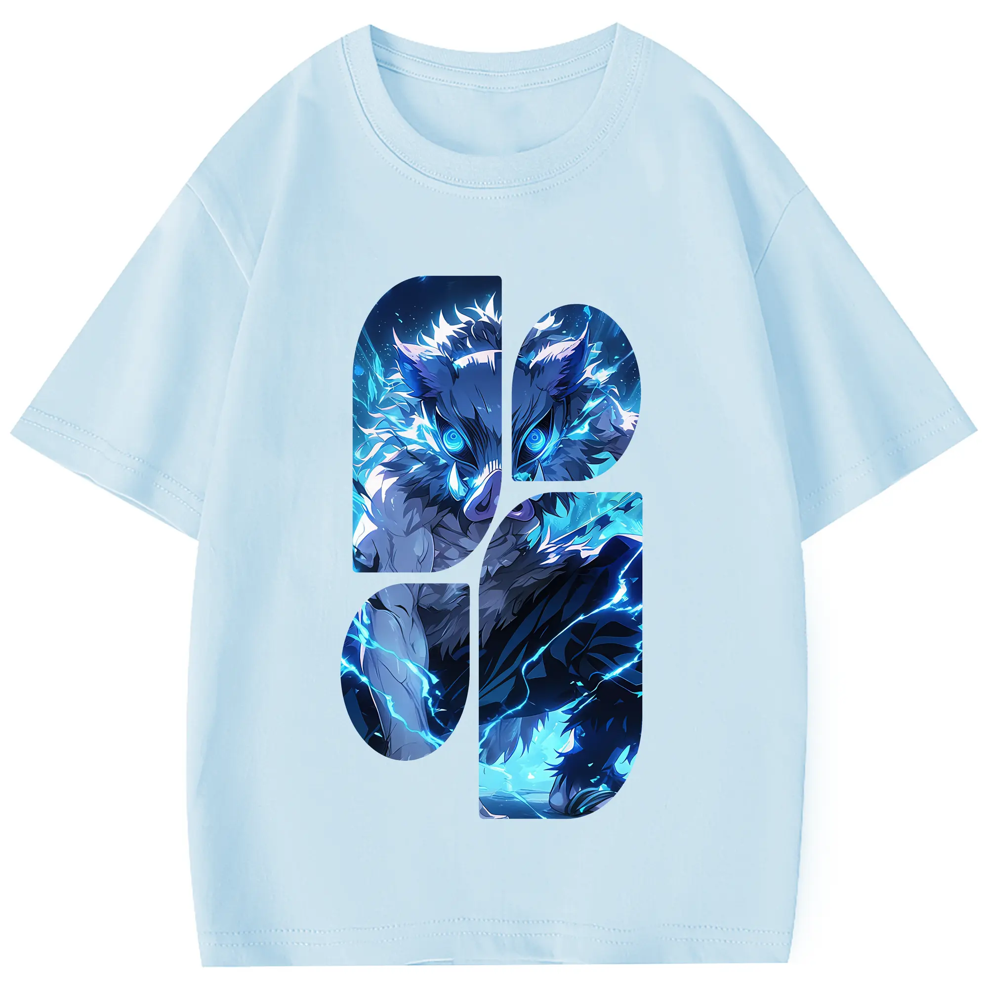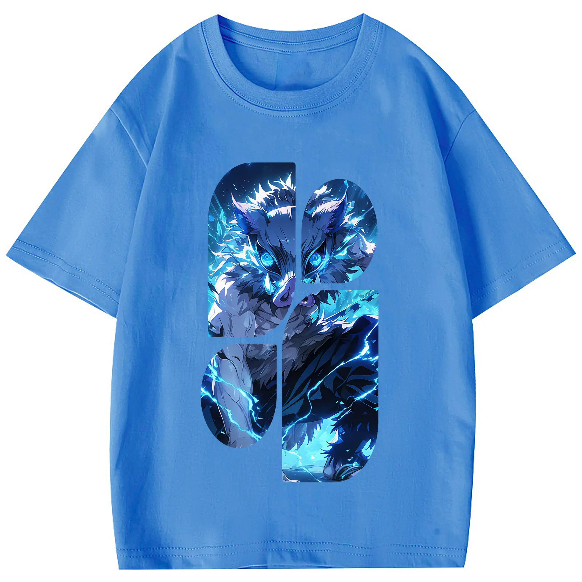 鬼滅の刃 グッズ,嘴平 伊之助 - 綿100% 半袖Tシャツ ・ フロントプリント ・ 快適 通気性 ・ 日常使い 散歩 スポーツ用