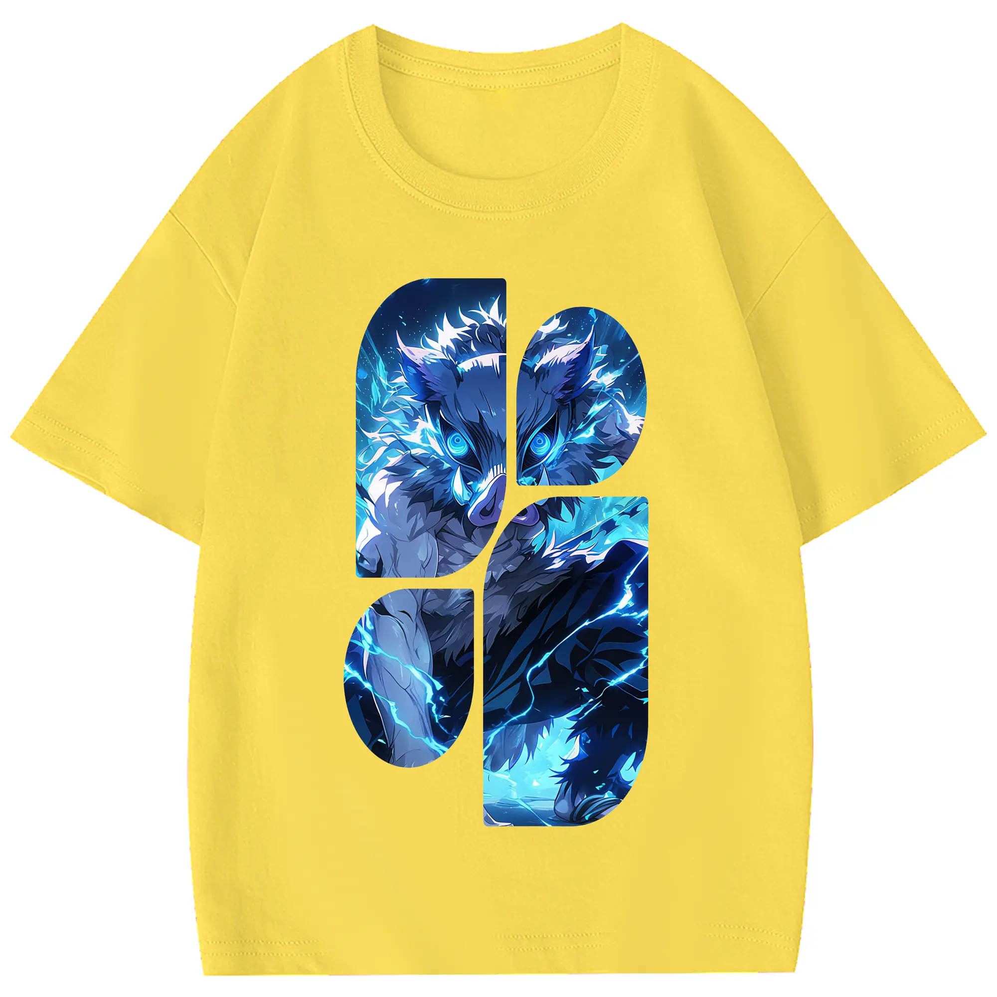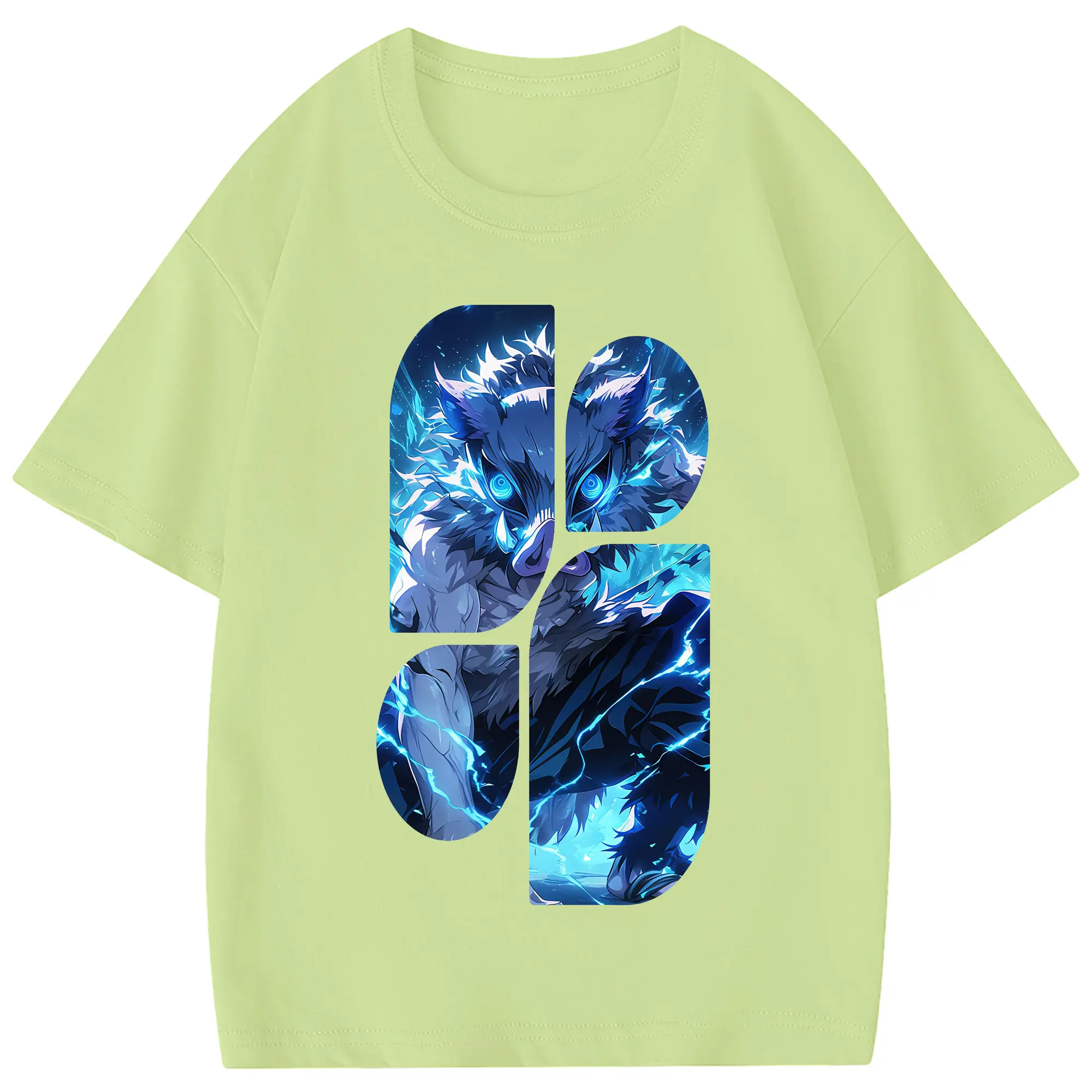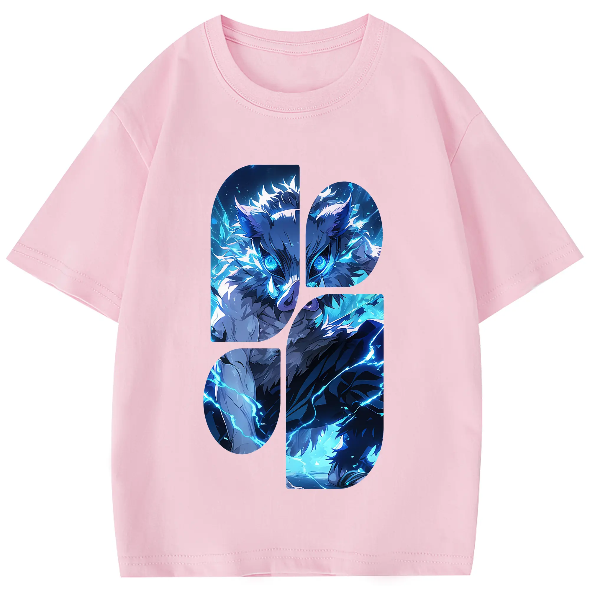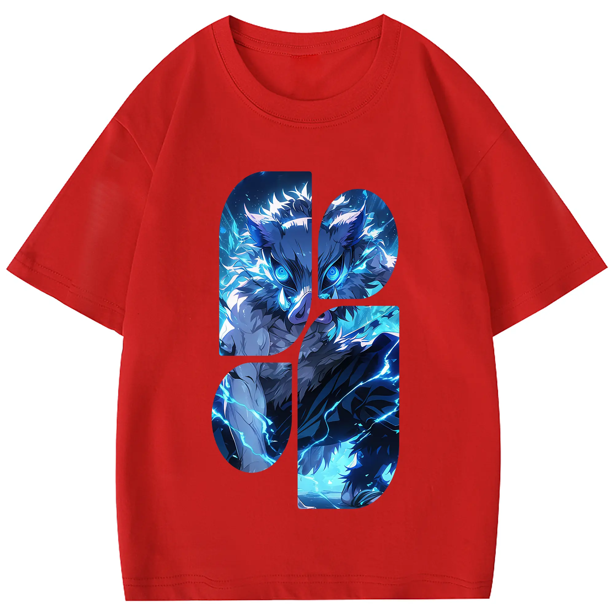 鬼滅の刃 グッズ,嘴平 伊之助 - 綿100% 半袖Tシャツ ・ フロントプリント ・ 快適 通気性 ・ 日常使い 散歩 スポーツ用