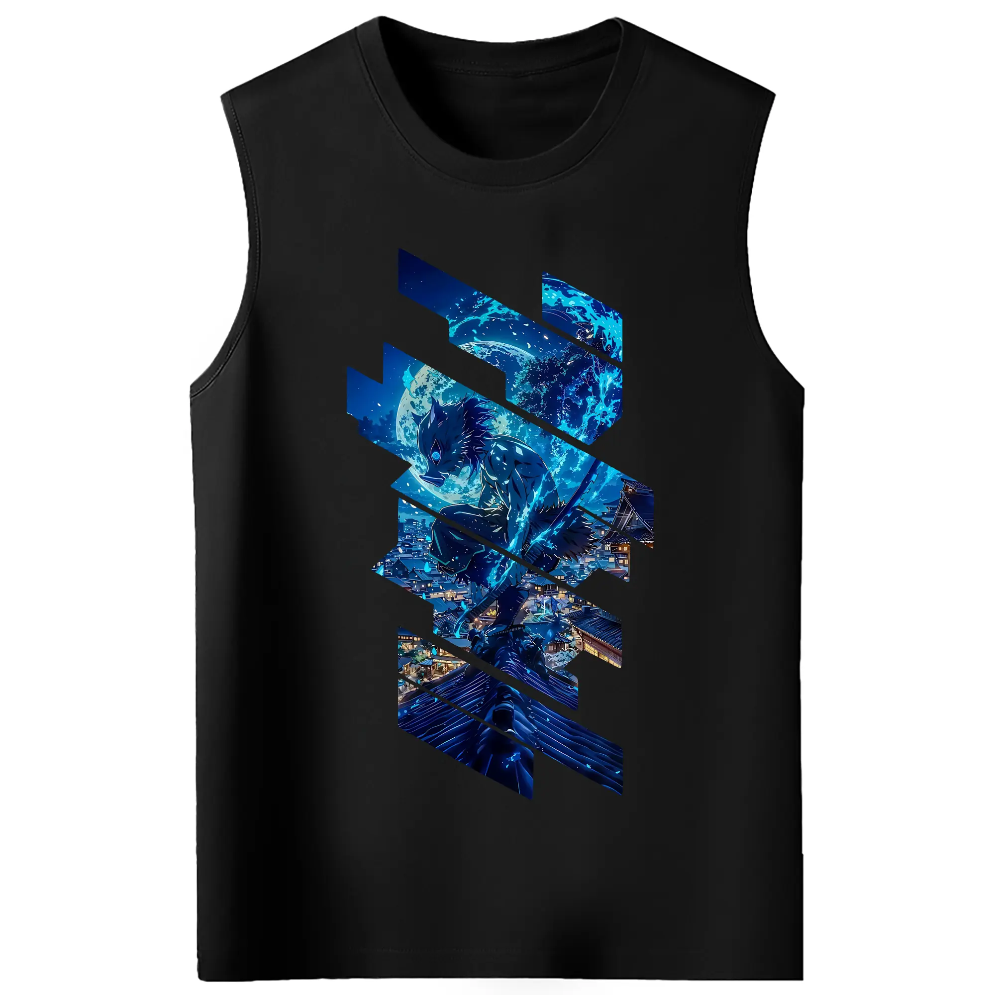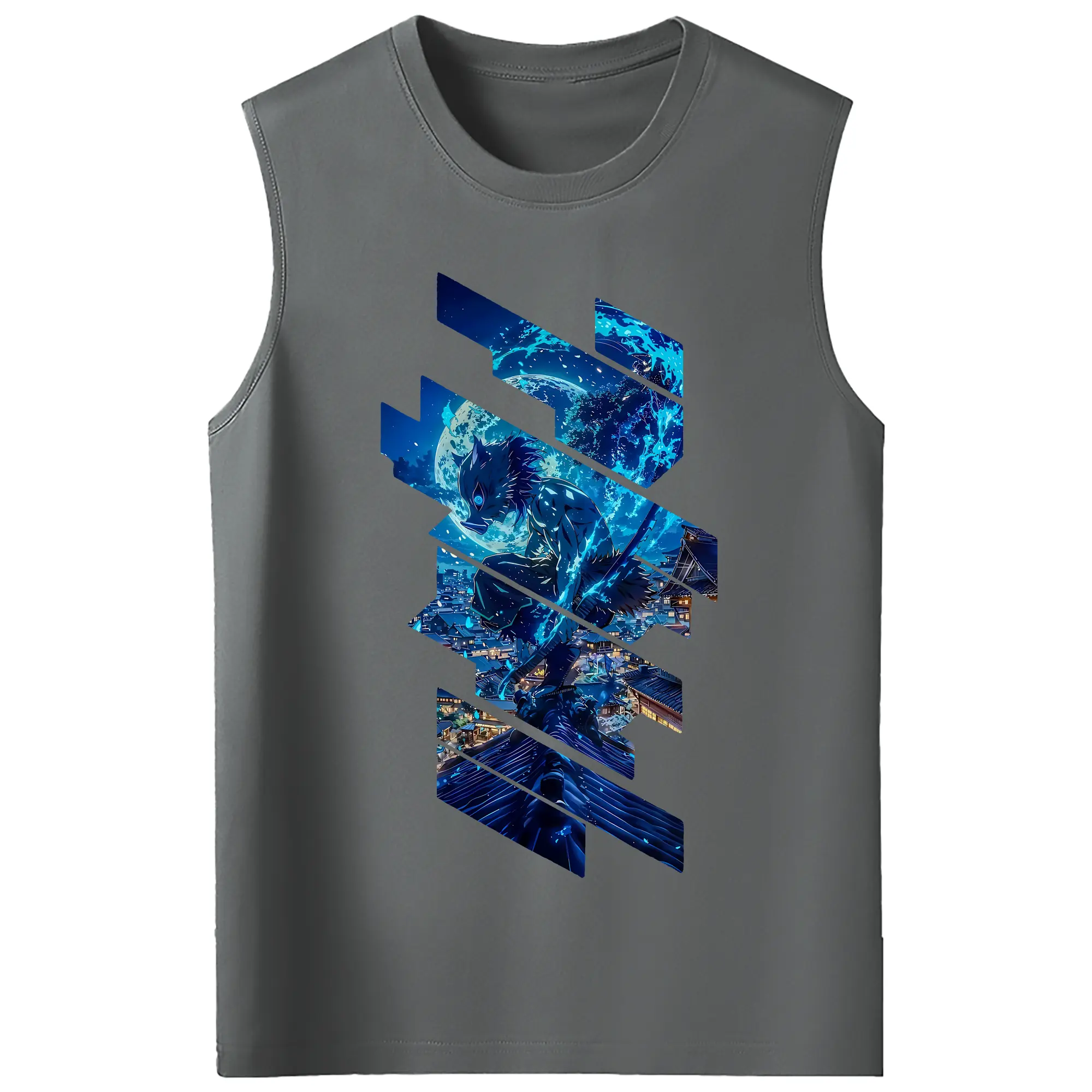 鬼滅の刃 グッズ,嘴平 伊之助 - コットン100% タンクトップ ・ フロントプリント ・ タイトフィット ・ 快適 通気性 ・ スポーツ カジュアル 散歩用