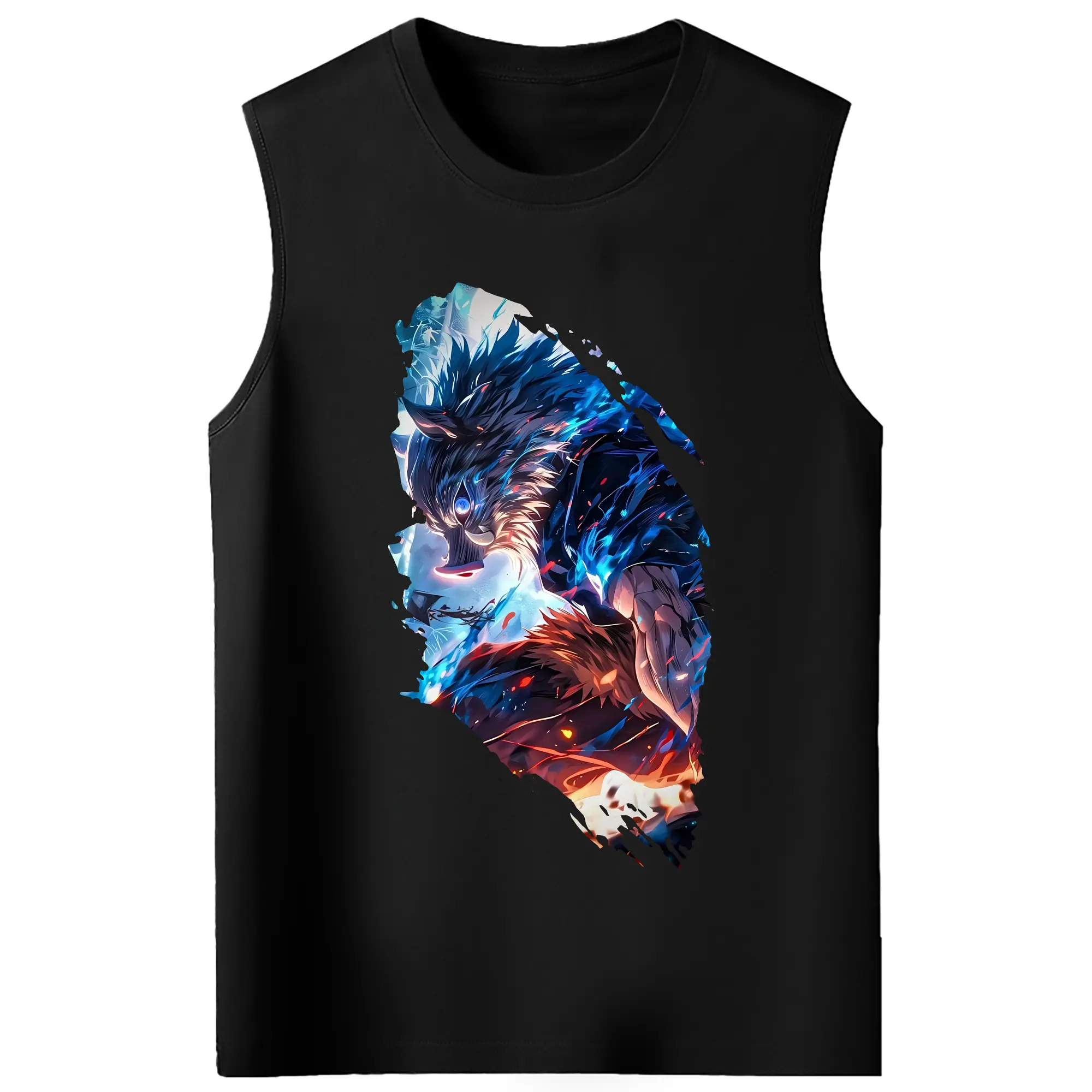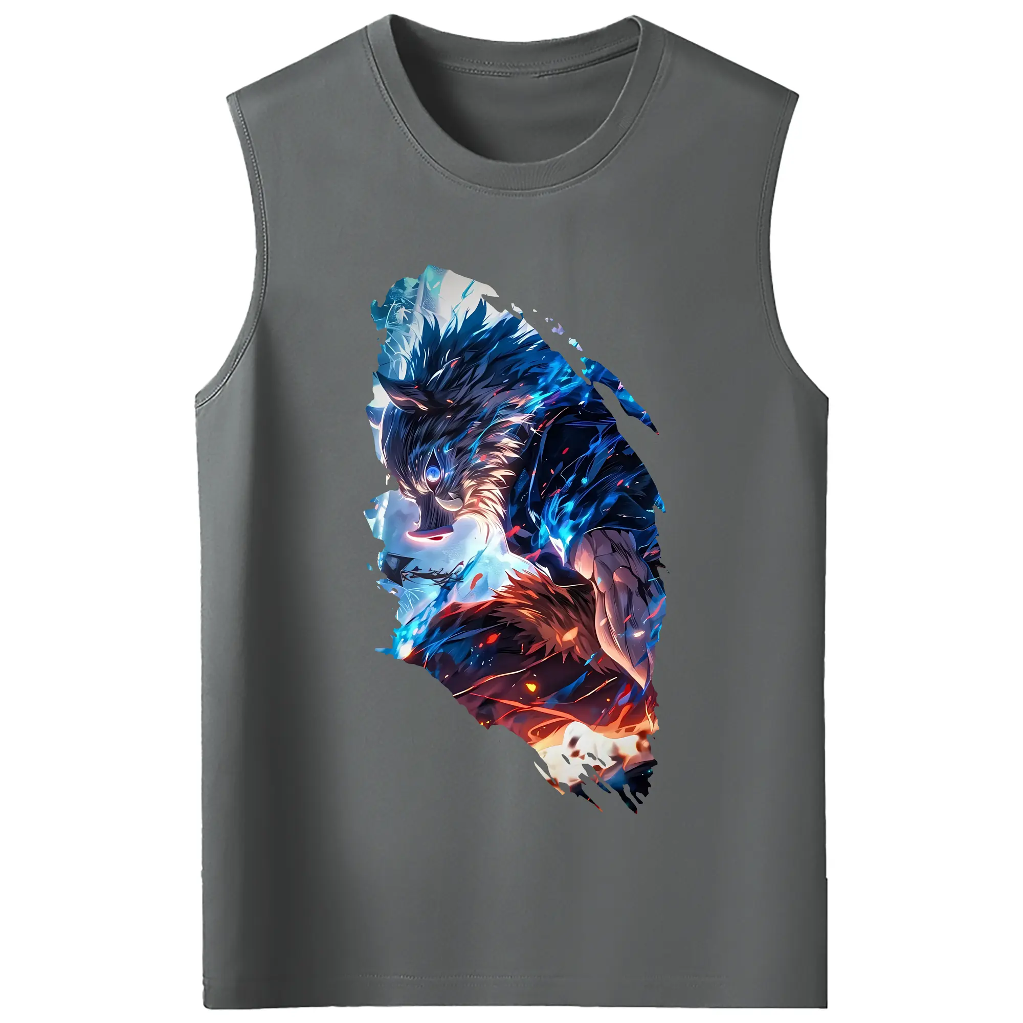 鬼滅の刃 グッズ,嘴平 伊之助 - コットン100% タンクトップ ・ フロントプリント ・ タイトフィット ・ 快適 通気性 ・ スポーツ カジュアル 散歩用