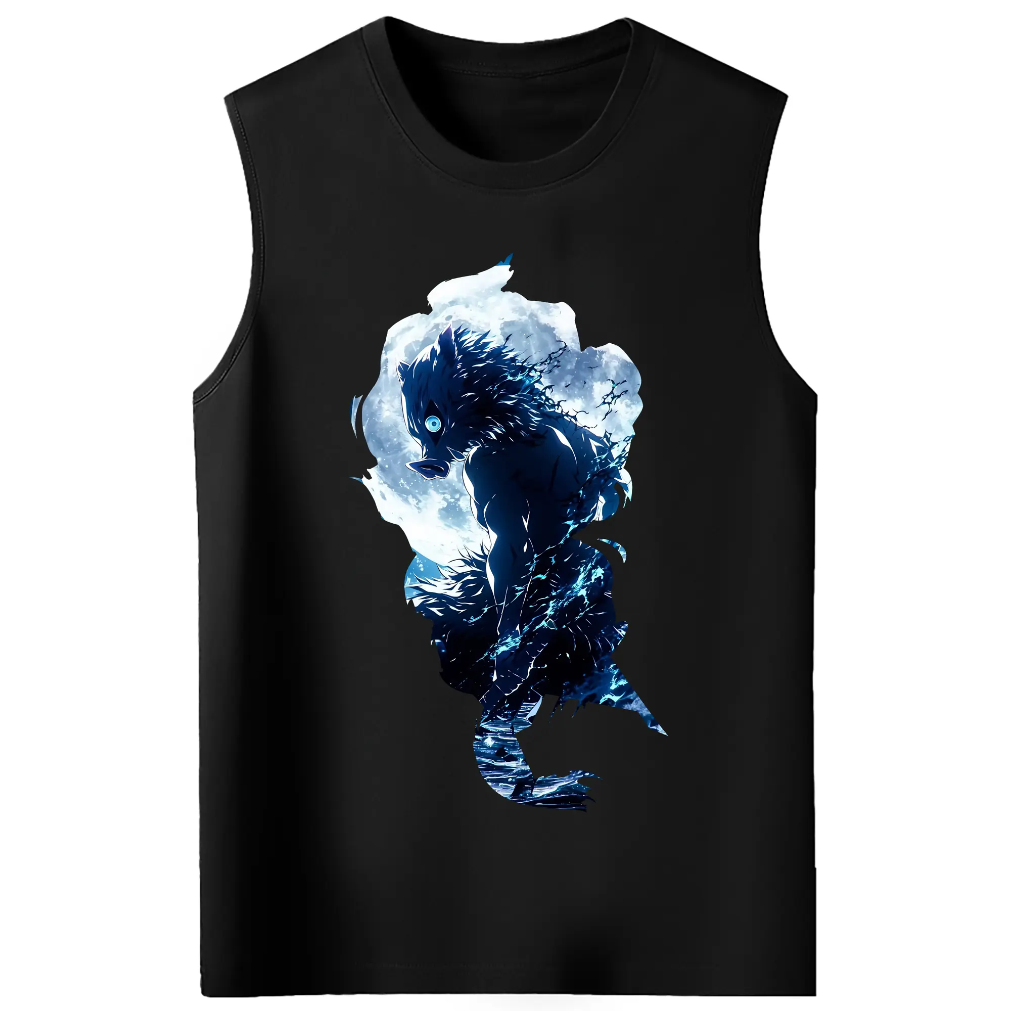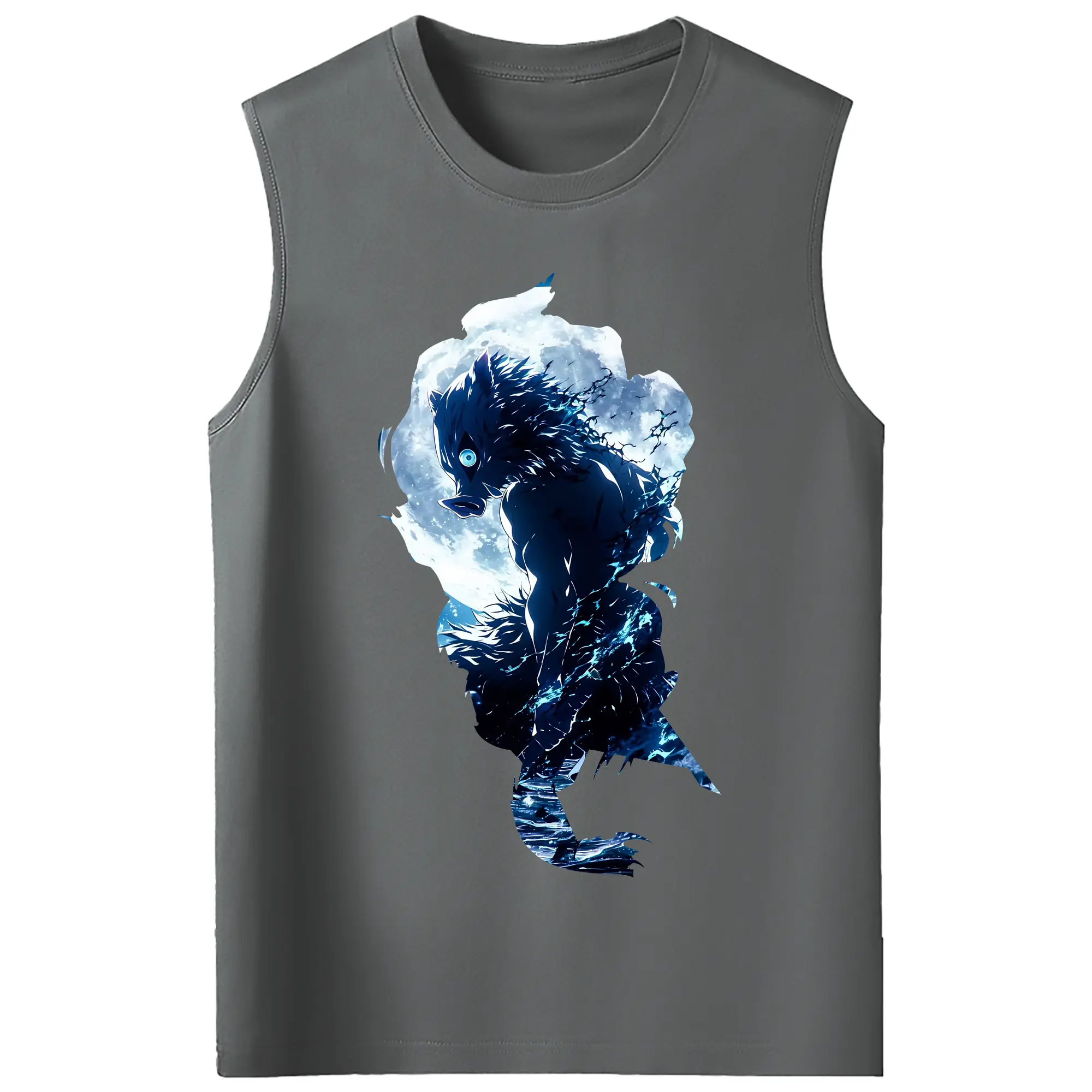 鬼滅の刃 グッズ,嘴平 伊之助 - コットン100% タンクトップ ・ フロントプリント ・ タイトフィット ・ 快適 通気性 ・ スポーツ カジュアル 散歩用