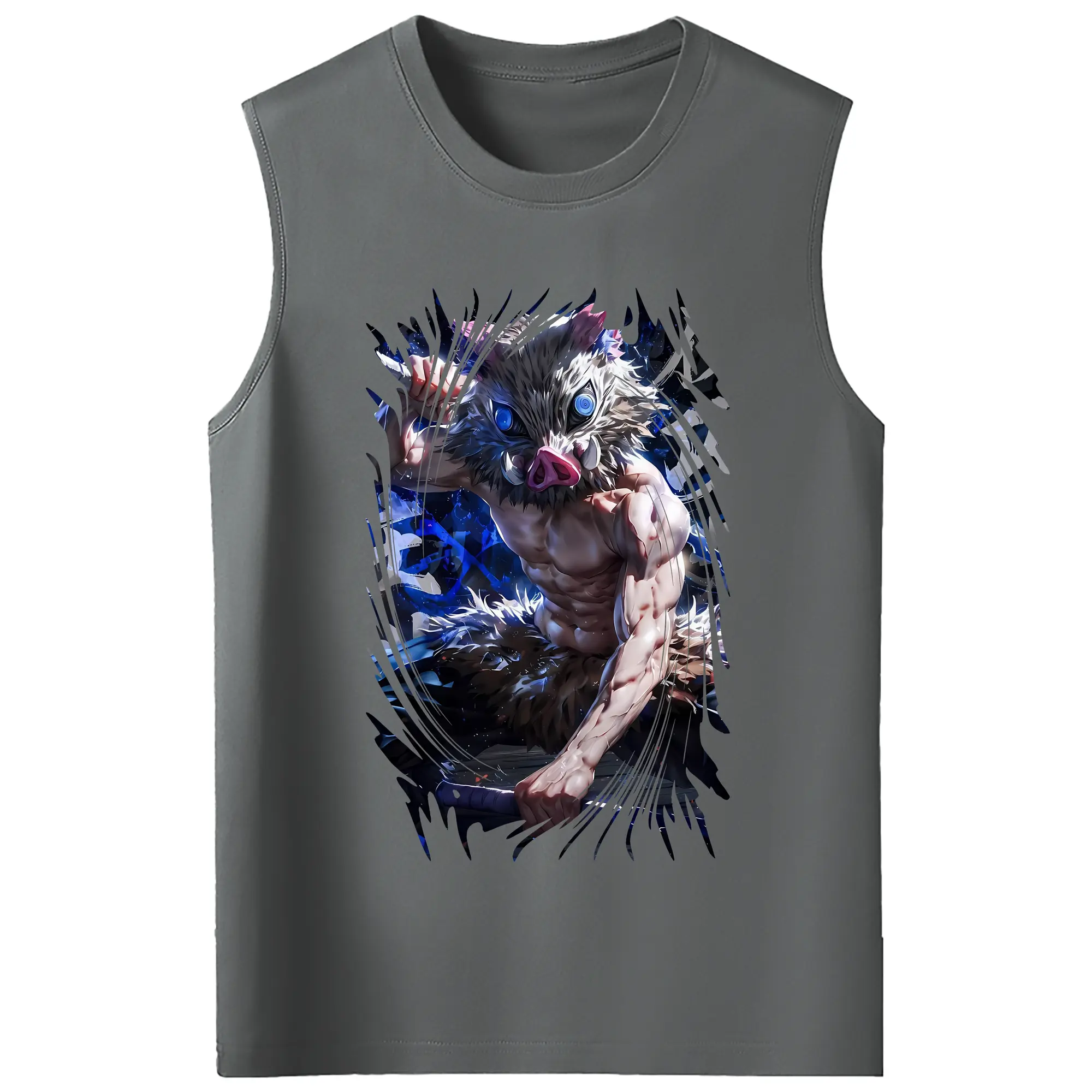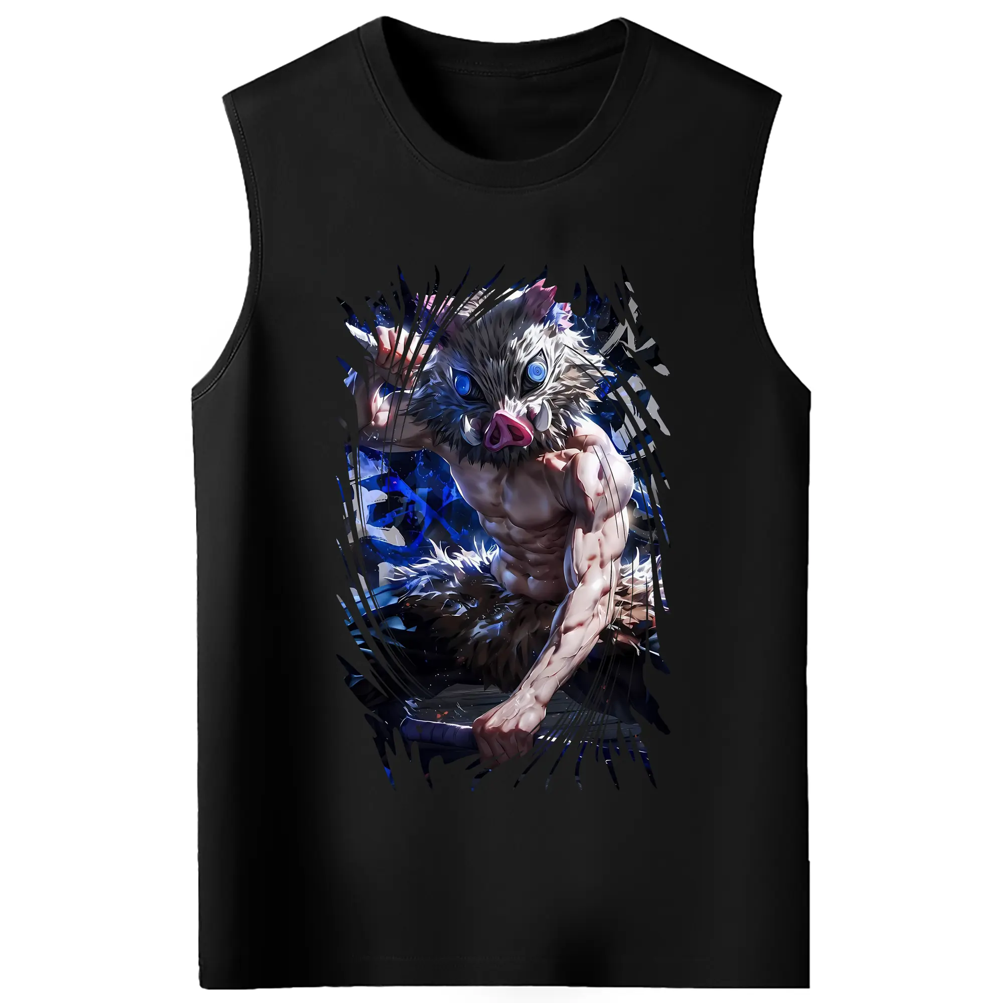 鬼滅の刃 グッズ,嘴平 伊之助 - コットン100% タンクトップ ・ フロントプリント ・ タイトフィット ・ 快適 通気性 ・ スポーツ カジュアル 散歩用