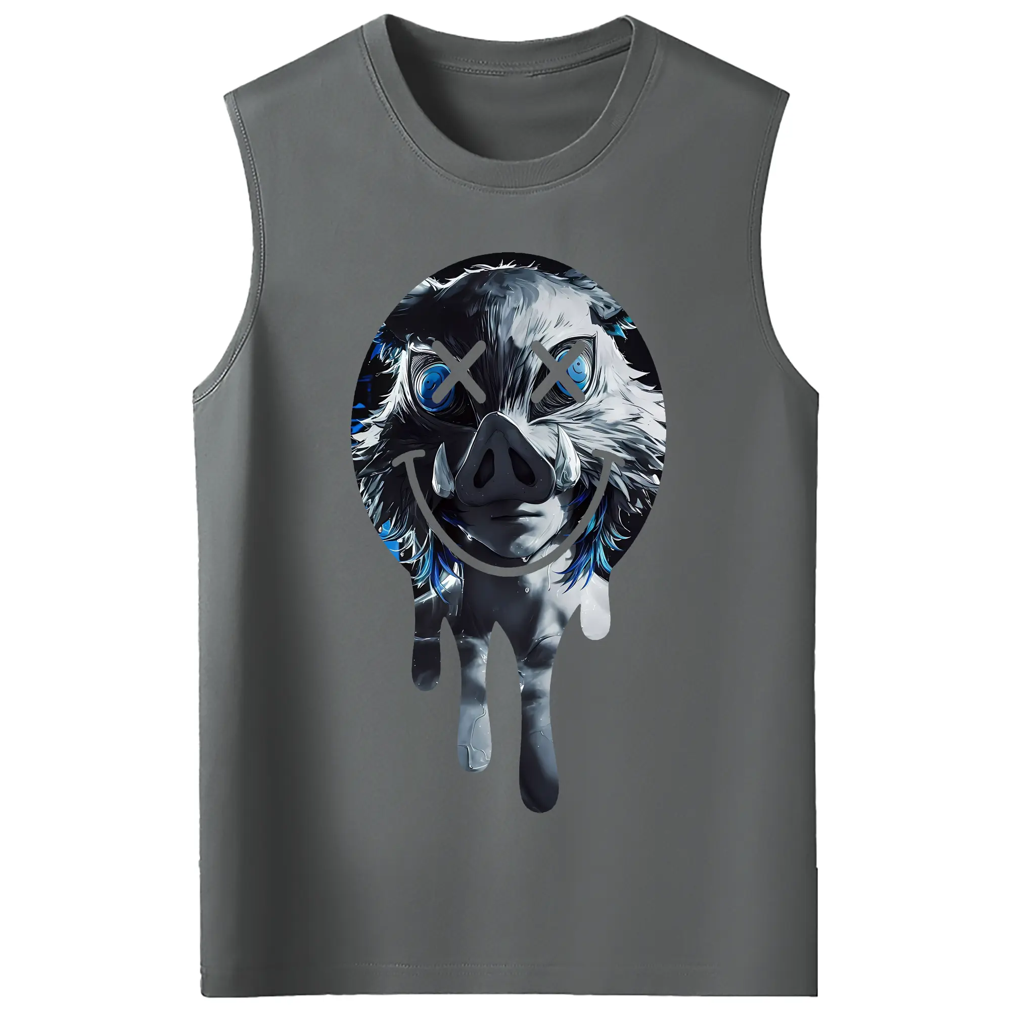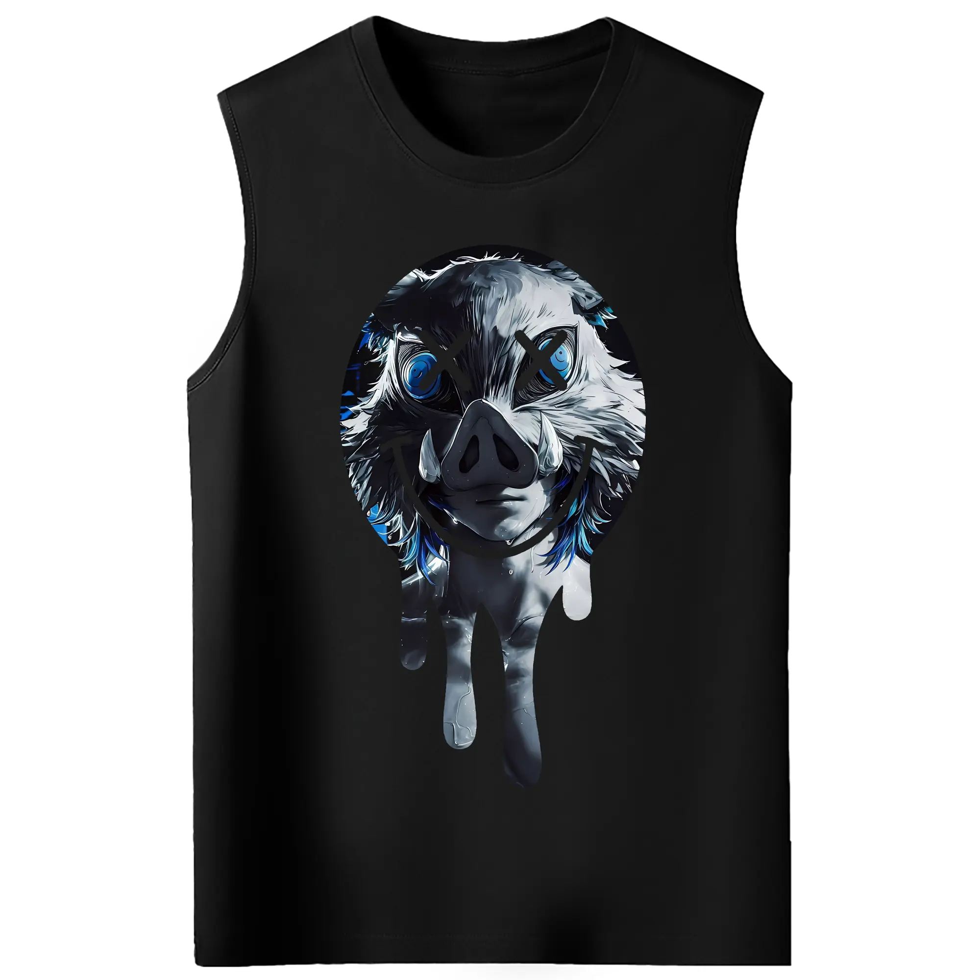 鬼滅の刃 グッズ,嘴平 伊之助 - コットン100% タンクトップ ・ フロントプリント ・ タイトフィット ・ 快適 通気性 ・ スポーツ カジュアル 散歩用
