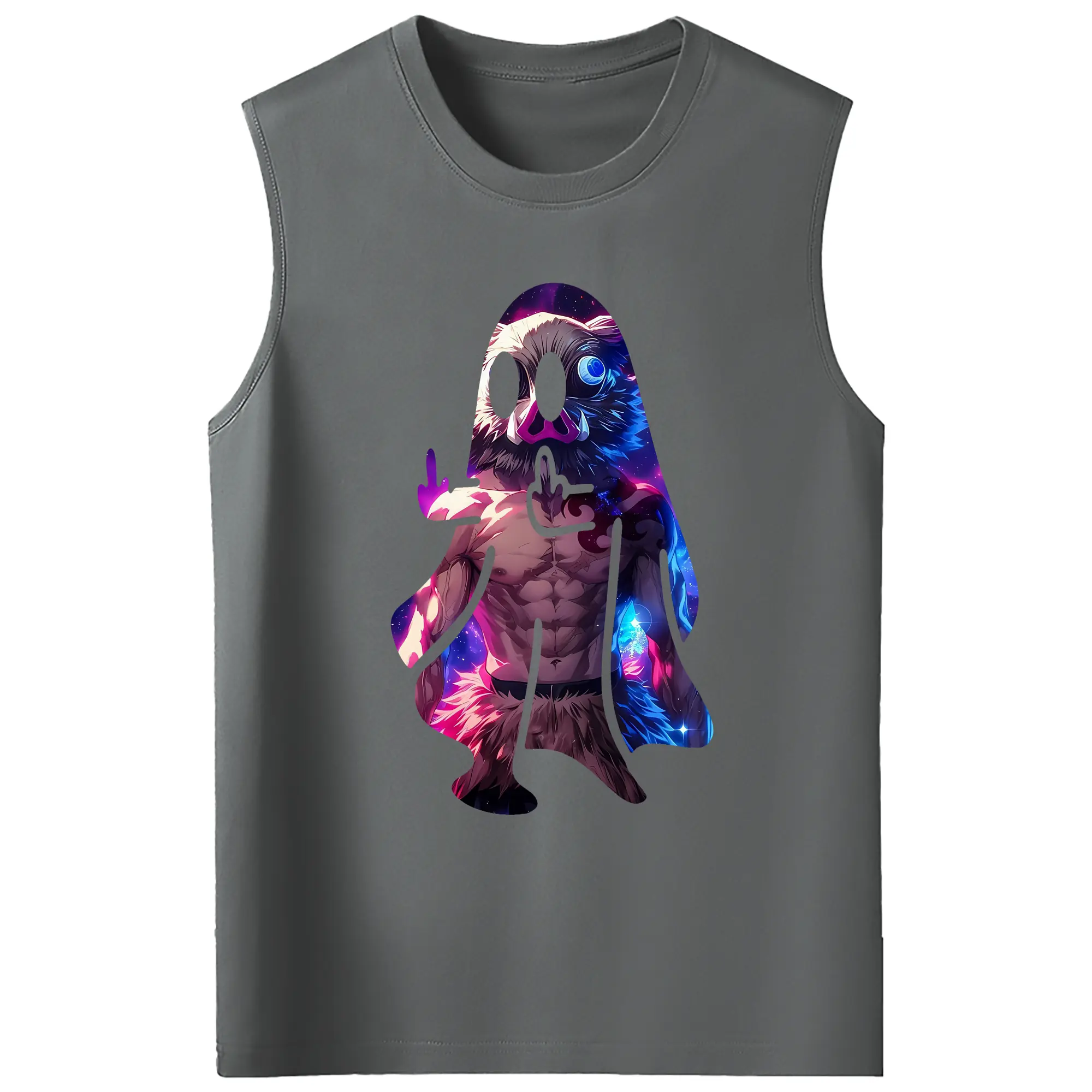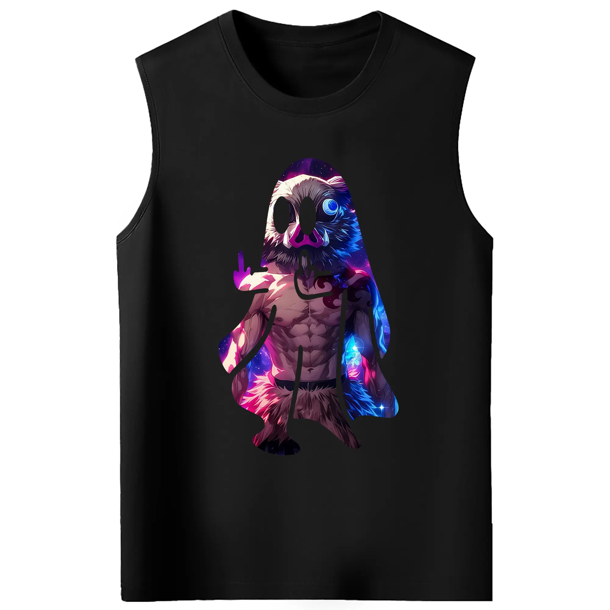 鬼滅の刃 グッズ,嘴平 伊之助 - コットン100% タンクトップ ・ フロントプリント ・ タイトフィット ・ 快適 通気性 ・ スポーツ カジュアル 散歩用