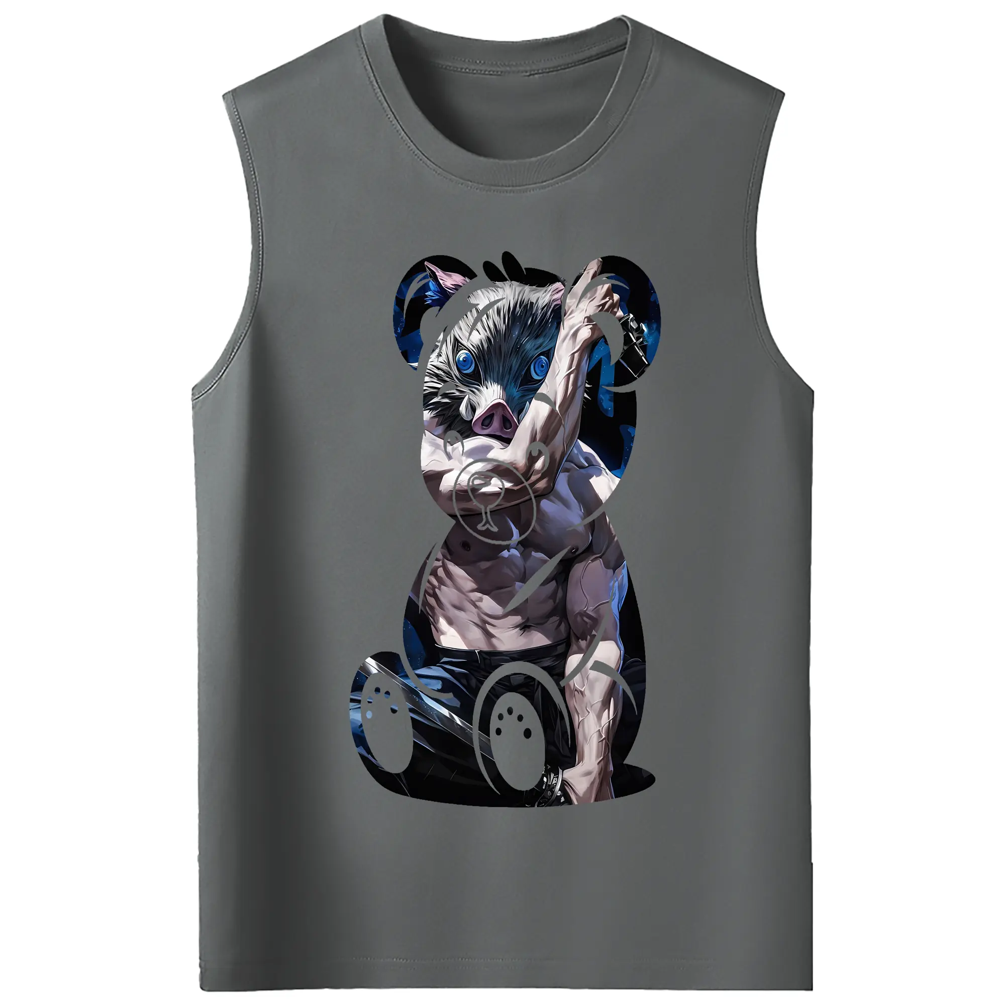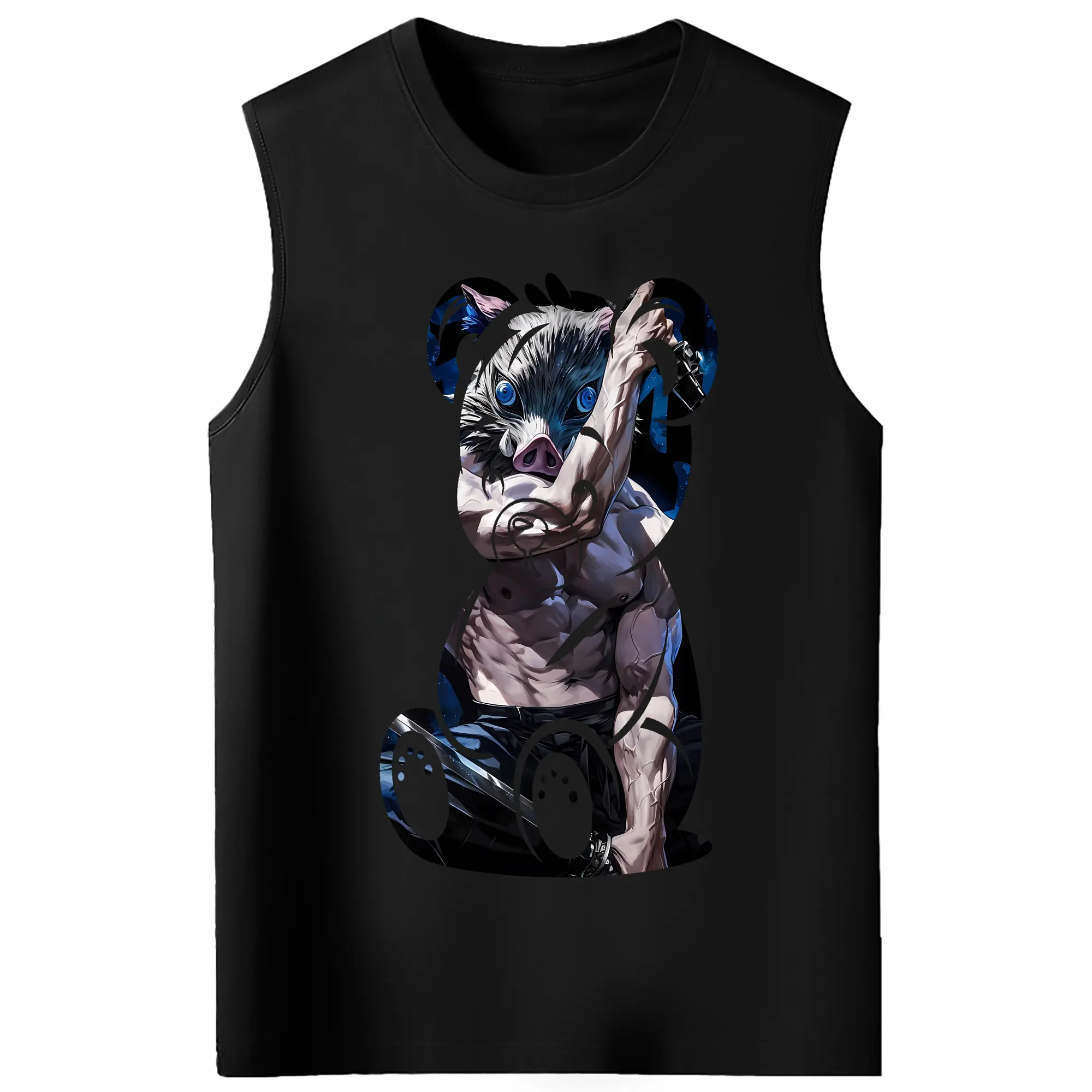 鬼滅の刃 グッズ,嘴平 伊之助 - コットン100% タンクトップ ・ フロントプリント ・ タイトフィット ・ 快適 通気性 ・ スポーツ カジュアル 散歩用