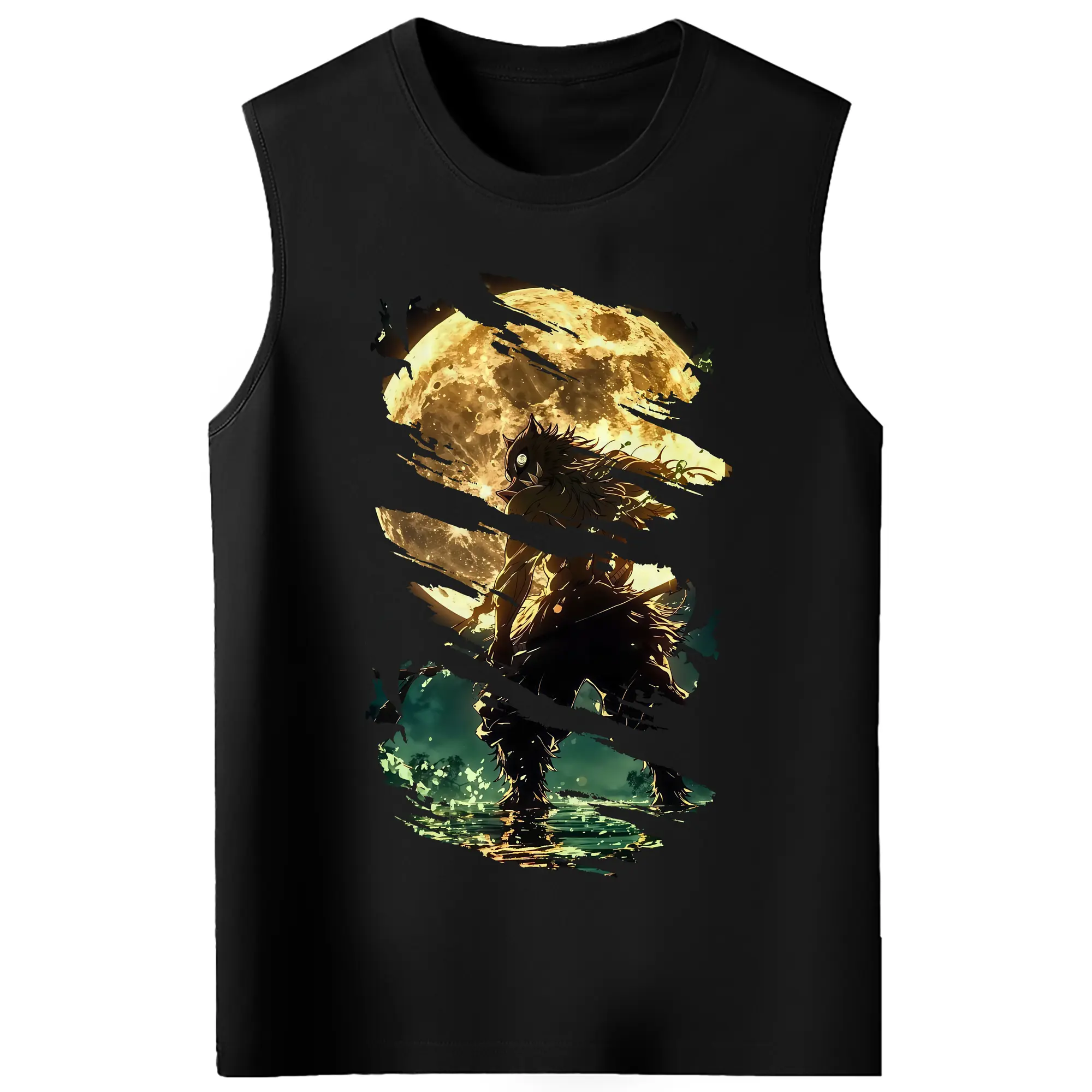 鬼滅の刃 グッズ,嘴平 伊之助 - コットン100% タンクトップ ・ フロントプリント ・ タイトフィット ・ 快適 通気性 ・ スポーツ カジュアル 散歩用