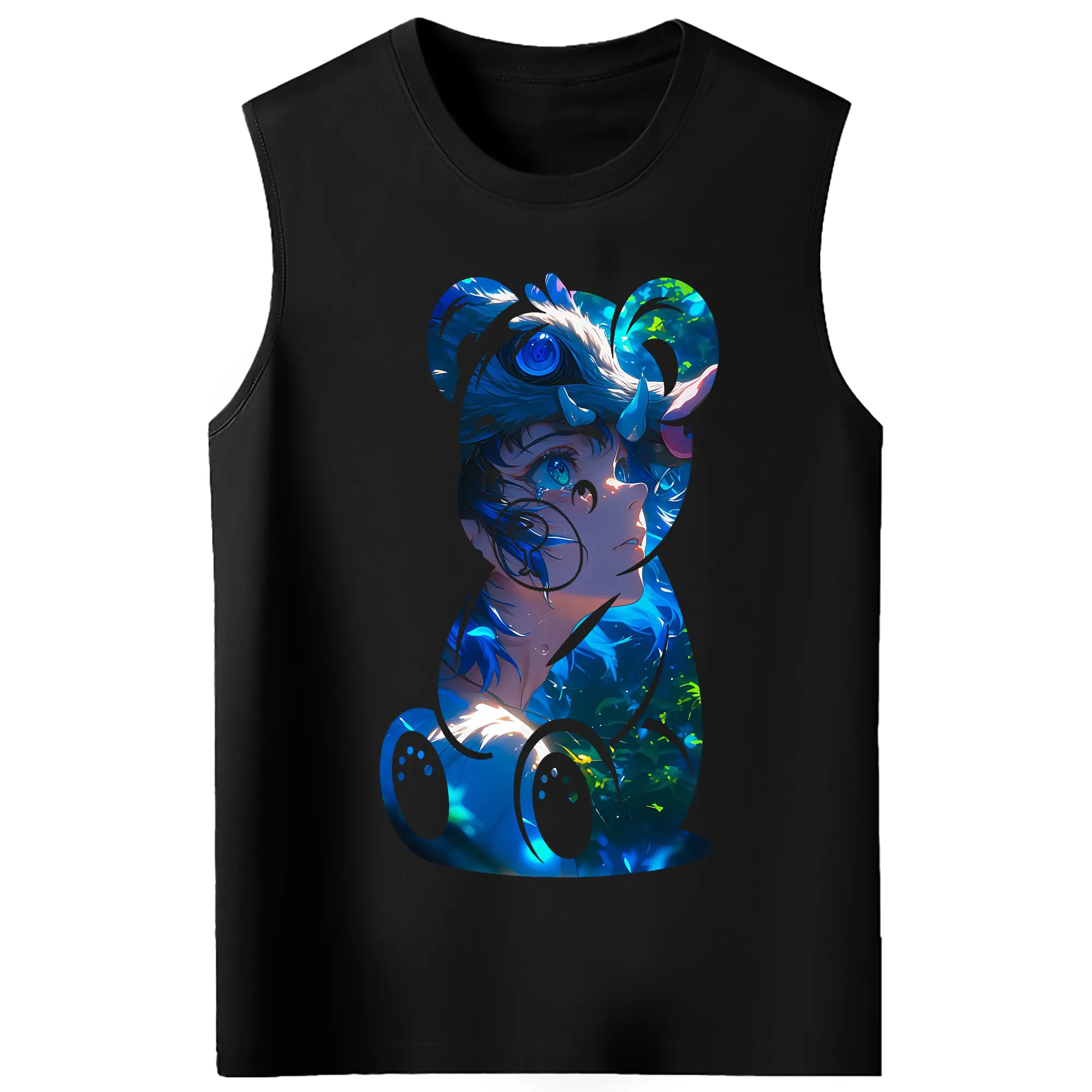 鬼滅の刃 グッズ,嘴平 伊之助 - コットン100% タンクトップ ・ フロントプリント ・ タイトフィット ・ 快適 通気性 ・ スポーツ カジュアル 散歩用