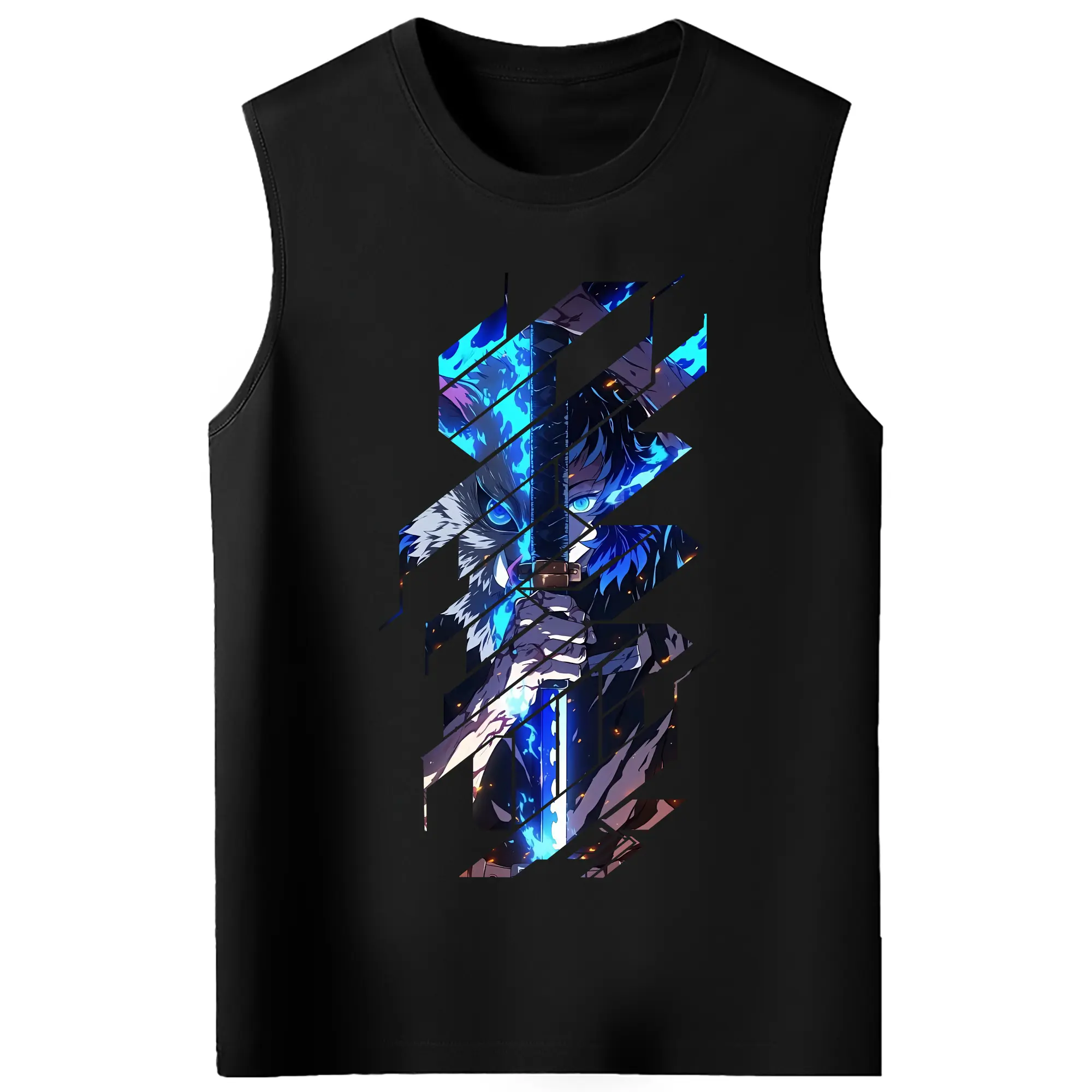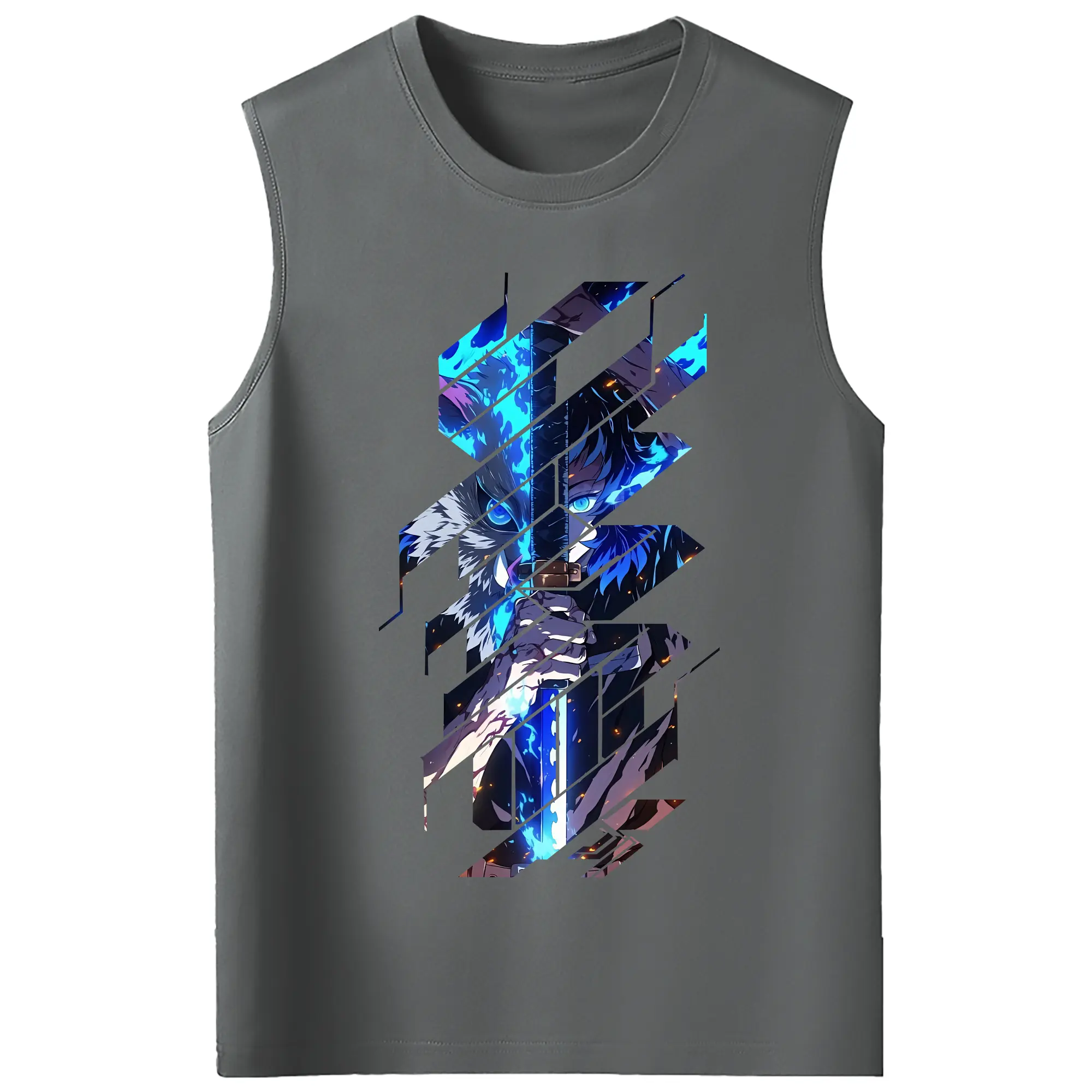 鬼滅の刃 グッズ,嘴平 伊之助 - コットン100% タンクトップ ・ フロントプリント ・ タイトフィット ・ 快適 通気性 ・ スポーツ カジュアル 散歩用