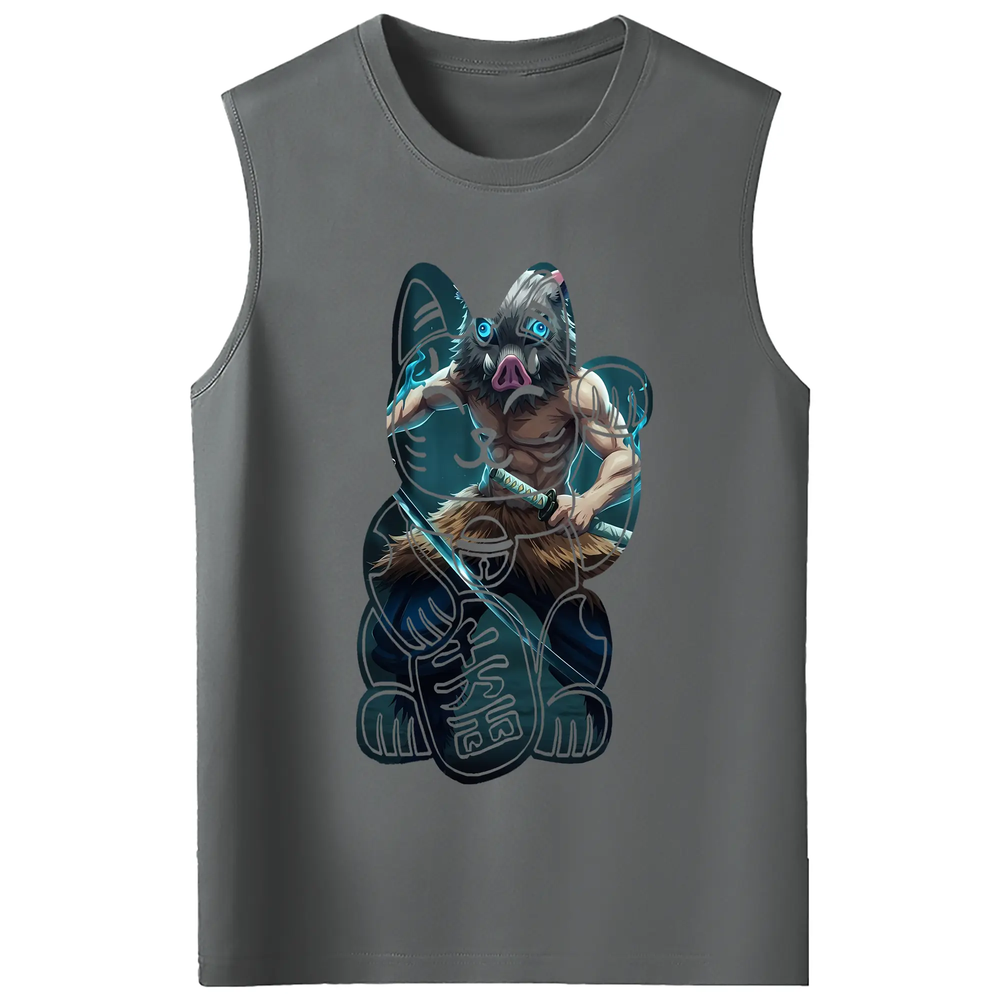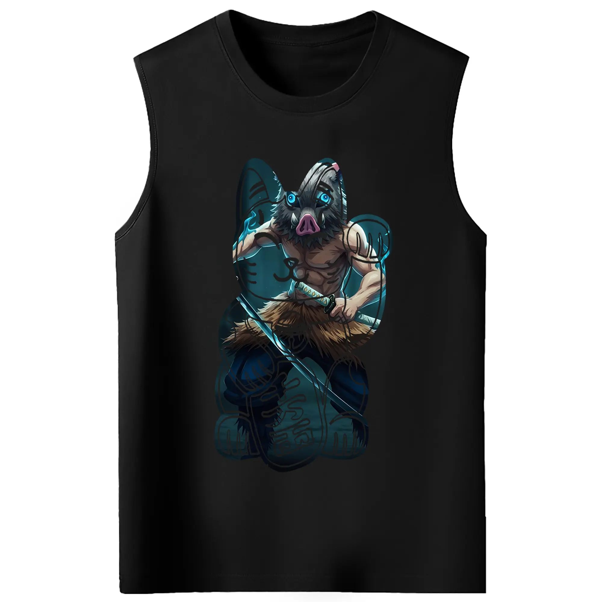 鬼滅の刃 グッズ,嘴平 伊之助 - コットン100% タンクトップ ・ フロントプリント ・ タイトフィット ・ 快適 通気性 ・ スポーツ カジュアル 散歩用