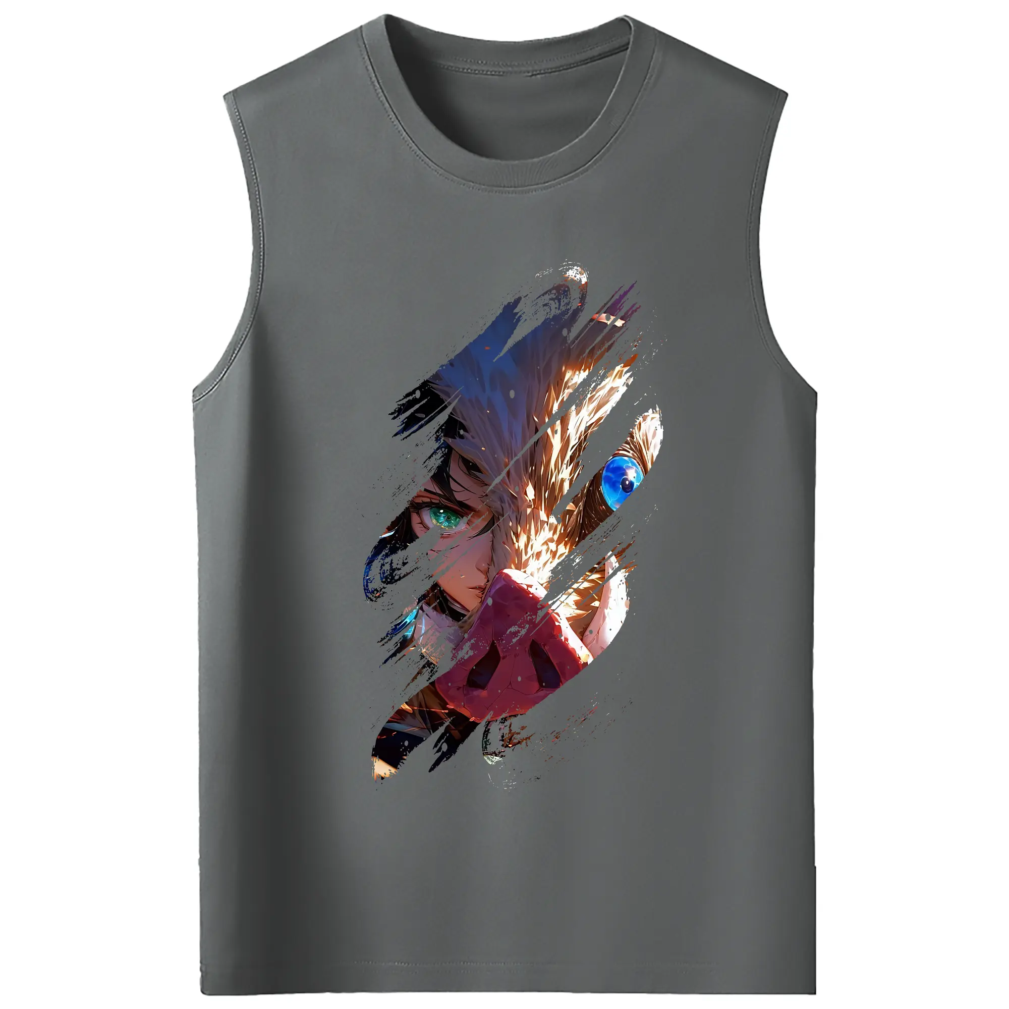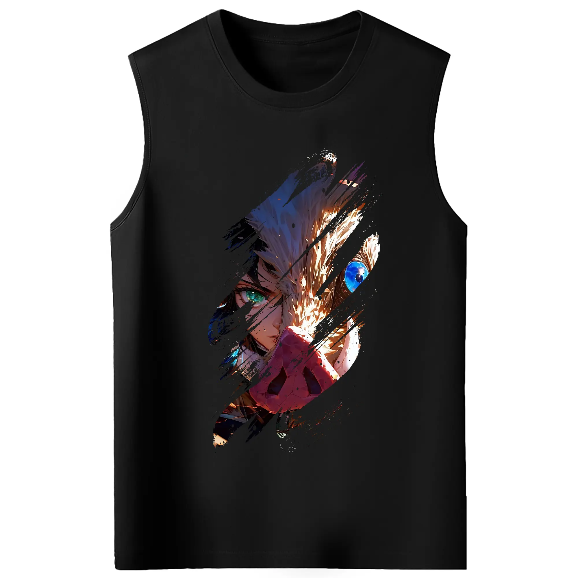 鬼滅の刃 グッズ,嘴平 伊之助 - コットン100% タンクトップ ・ フロントプリント ・ タイトフィット ・ 快適 通気性 ・ スポーツ カジュアル 散歩用