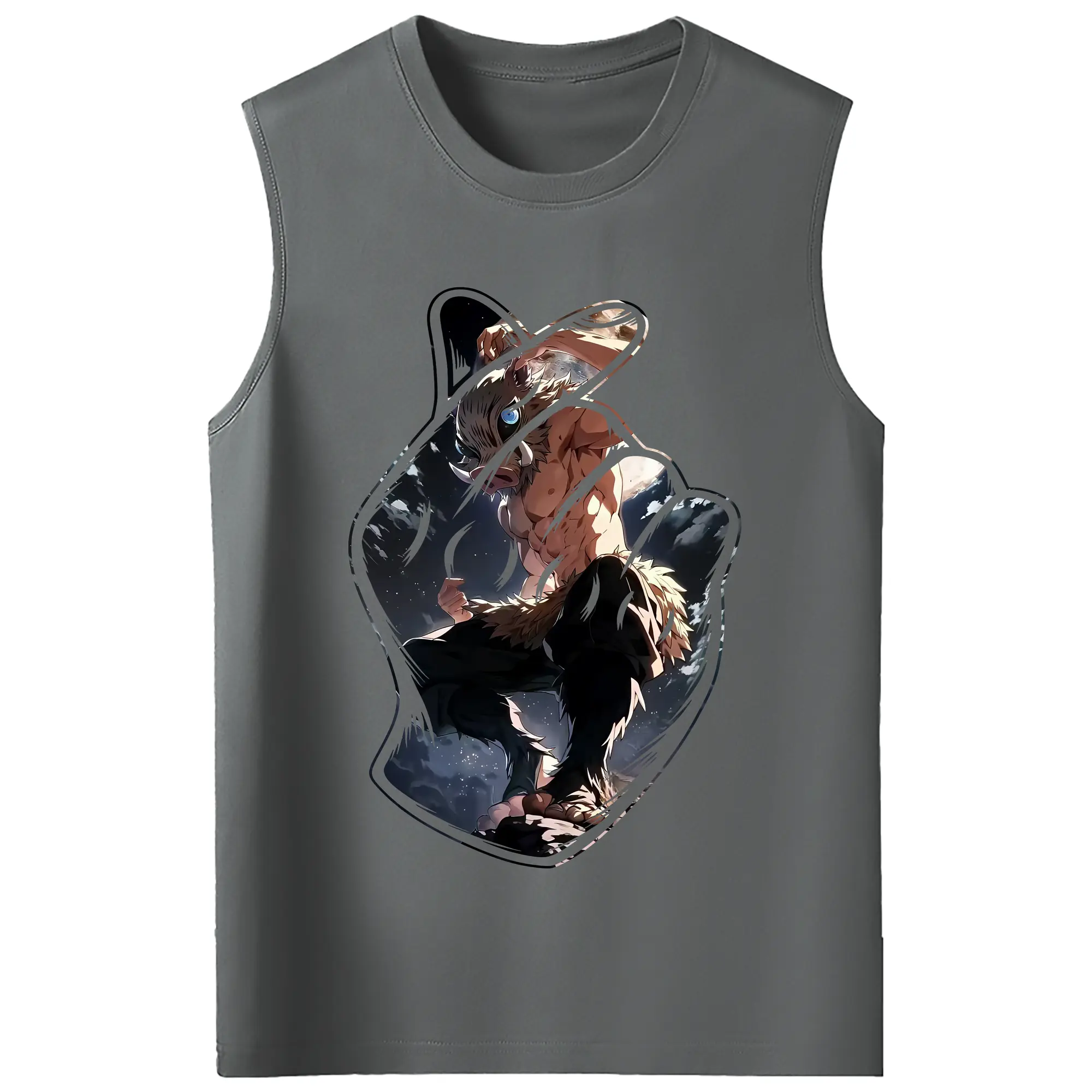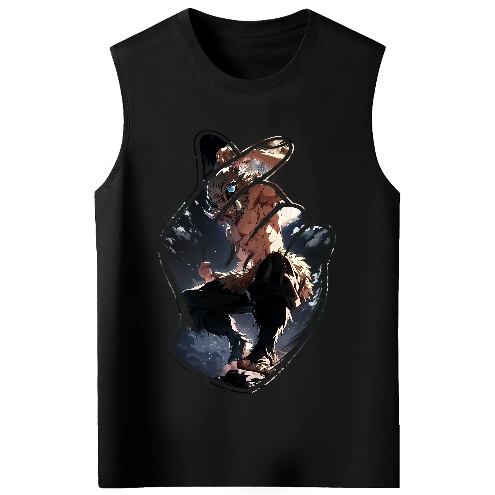 鬼滅の刃 グッズ,嘴平 伊之助 - コットン100% タンクトップ ・ フロントプリント ・ タイトフィット ・ 快適 通気性 ・ スポーツ カジュアル 散歩用