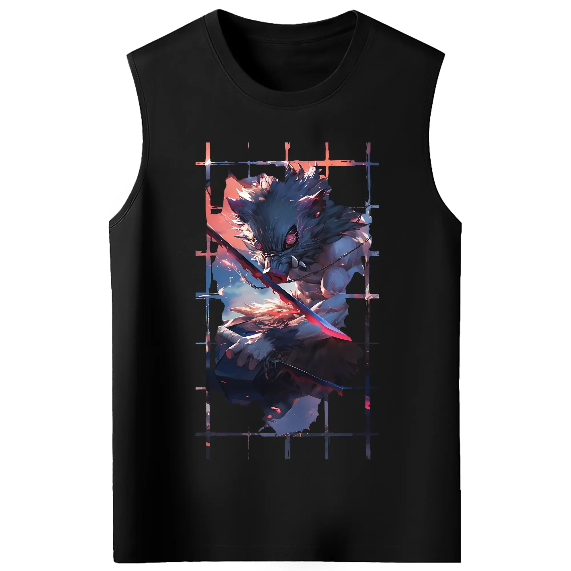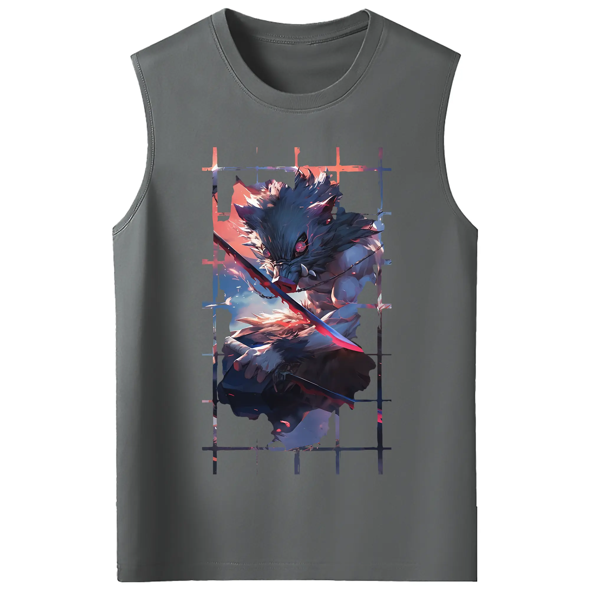 鬼滅の刃 グッズ,嘴平 伊之助 - コットン100% タンクトップ ・ フロントプリント ・ タイトフィット ・ 快適 通気性 ・ スポーツ カジュアル 散歩用