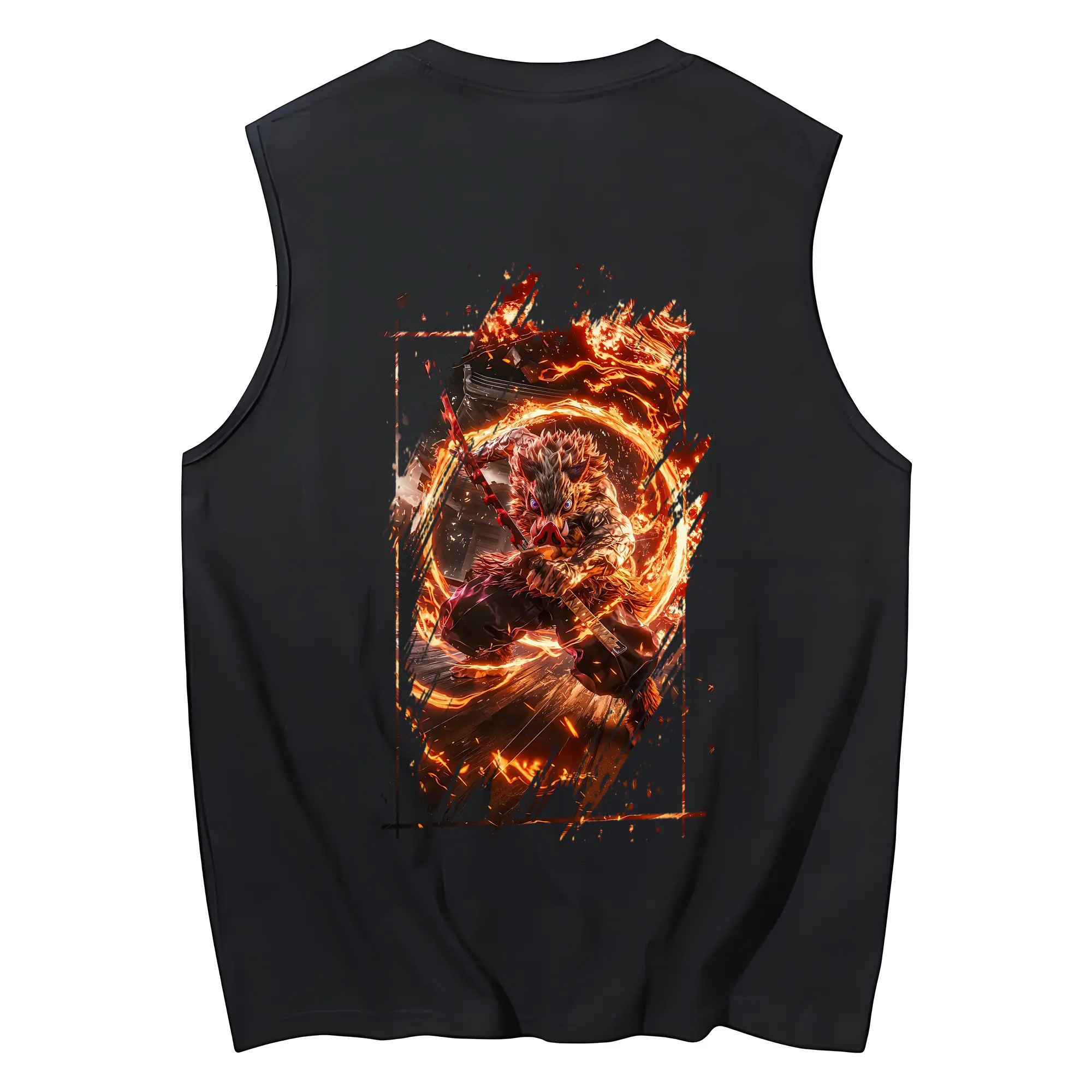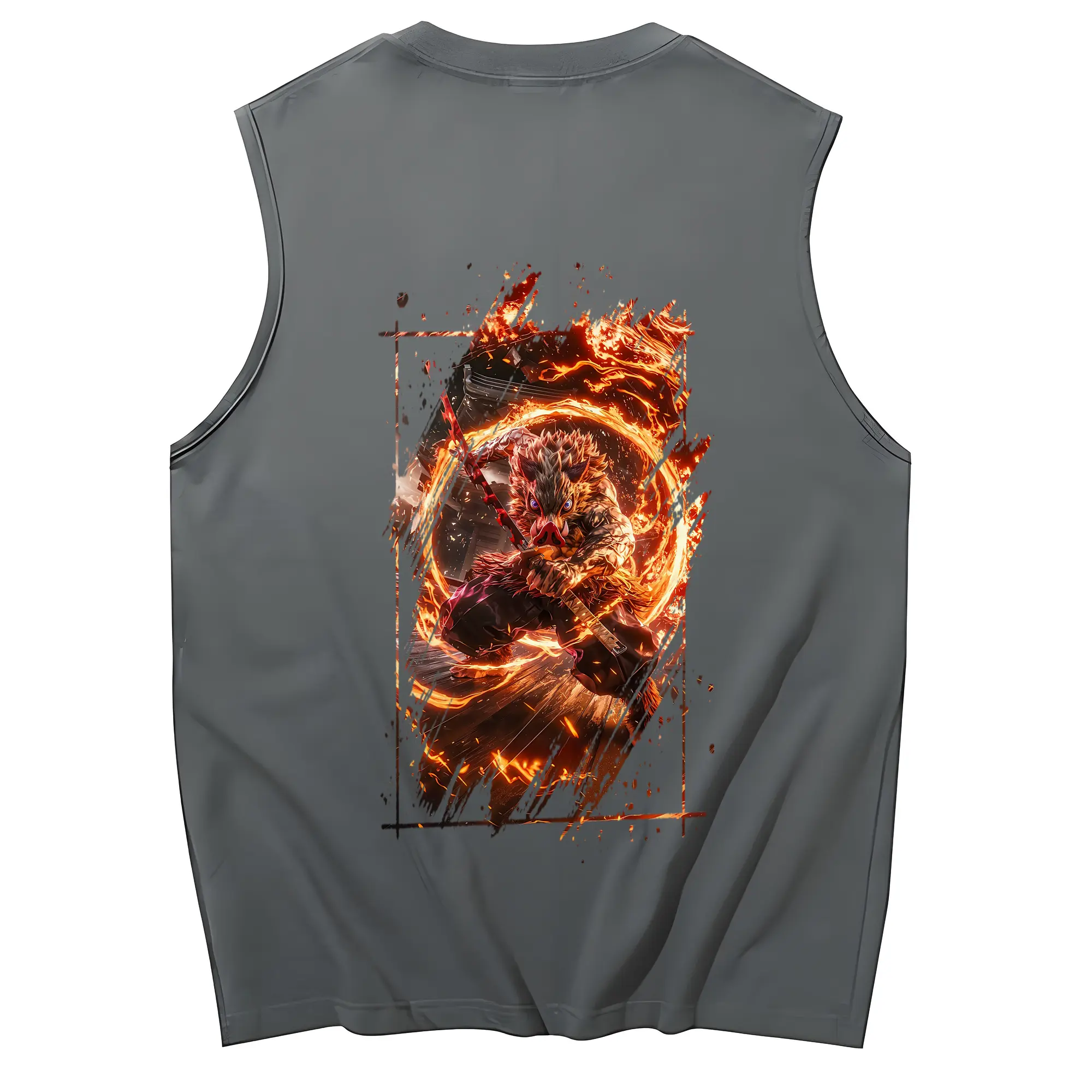 鬼滅の刃 グッズ,嘴平 伊之助 - コットン100% タンクトップ ・ 背面プリント ・ タイトシルエット ・ 快適 通気性 ・ スポーツ カジュアル 散歩用
