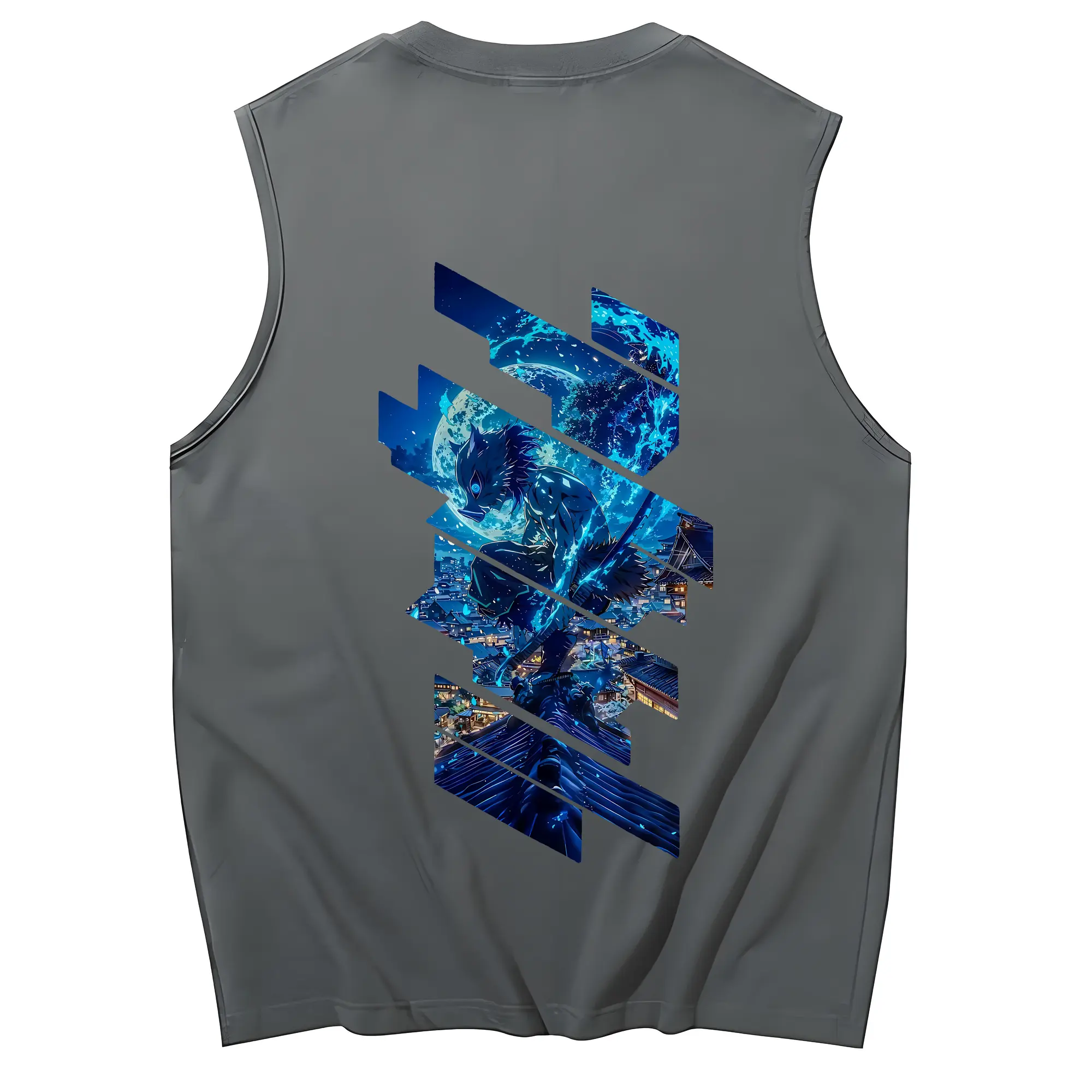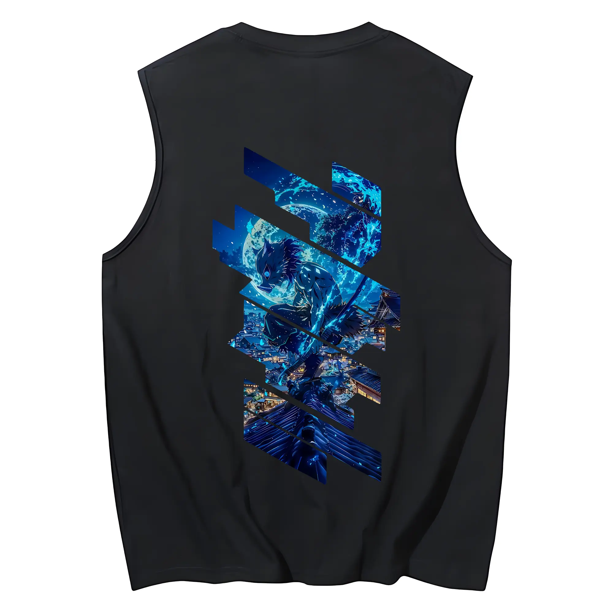 鬼滅の刃 グッズ,嘴平 伊之助 - コットン100% タンクトップ ・ 背面プリント ・ タイトシルエット ・ 快適 通気性 ・ スポーツ カジュアル 散歩用