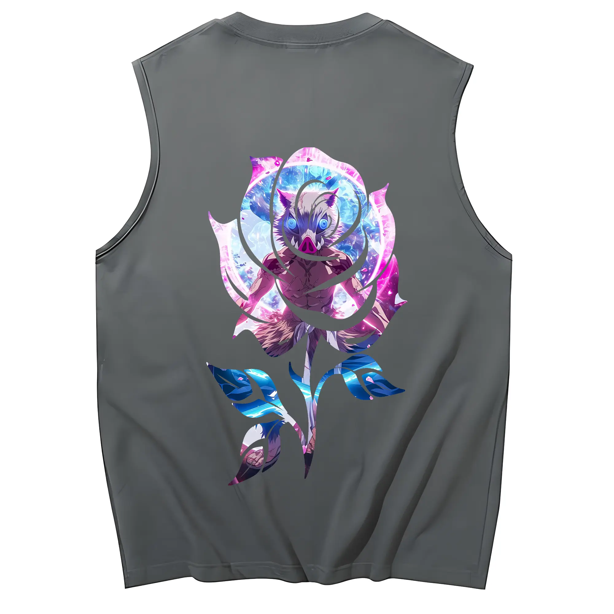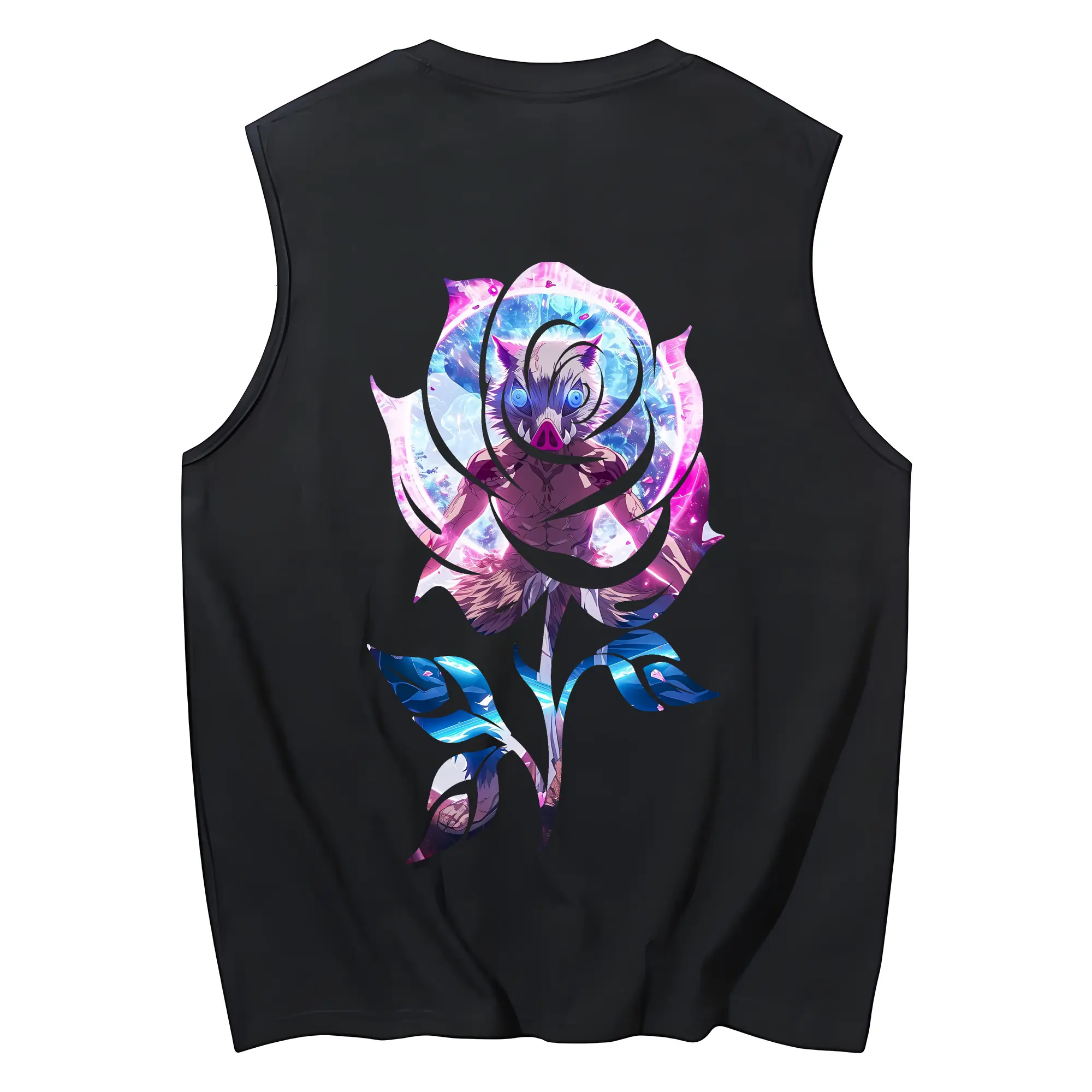 鬼滅の刃 グッズ,嘴平 伊之助 - コットン100% タンクトップ ・ 背面プリント ・ タイトシルエット ・ 快適 通気性 ・ スポーツ カジュアル 散歩用