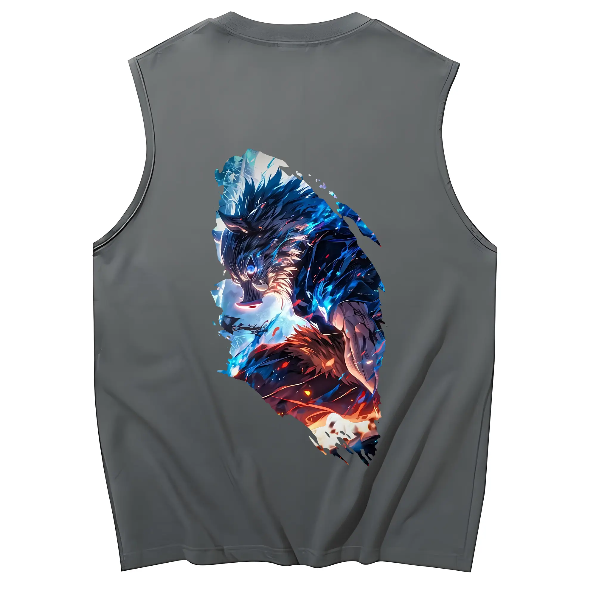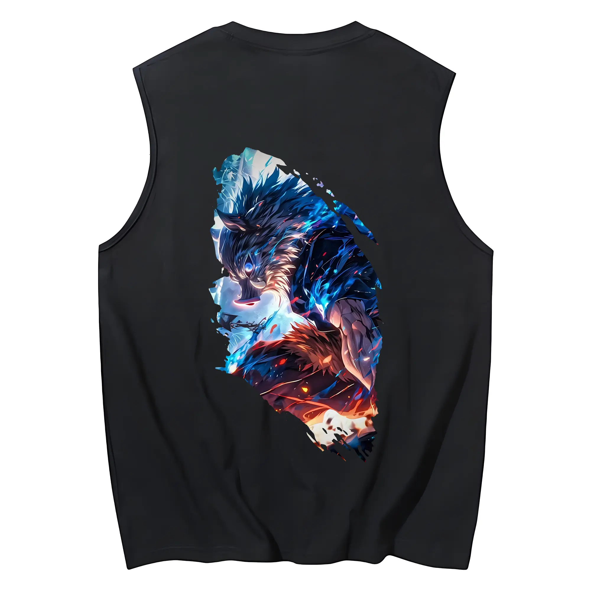 鬼滅の刃 グッズ,嘴平 伊之助 - コットン100% タンクトップ ・ 背面プリント ・ タイトシルエット ・ 快適 通気性 ・ スポーツ カジュアル 散歩用