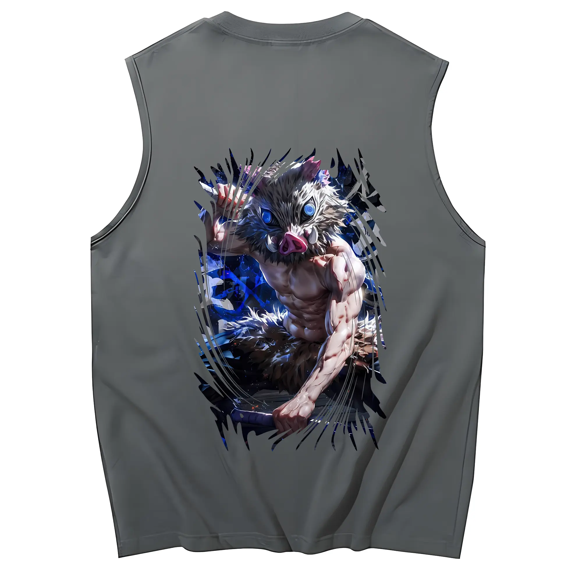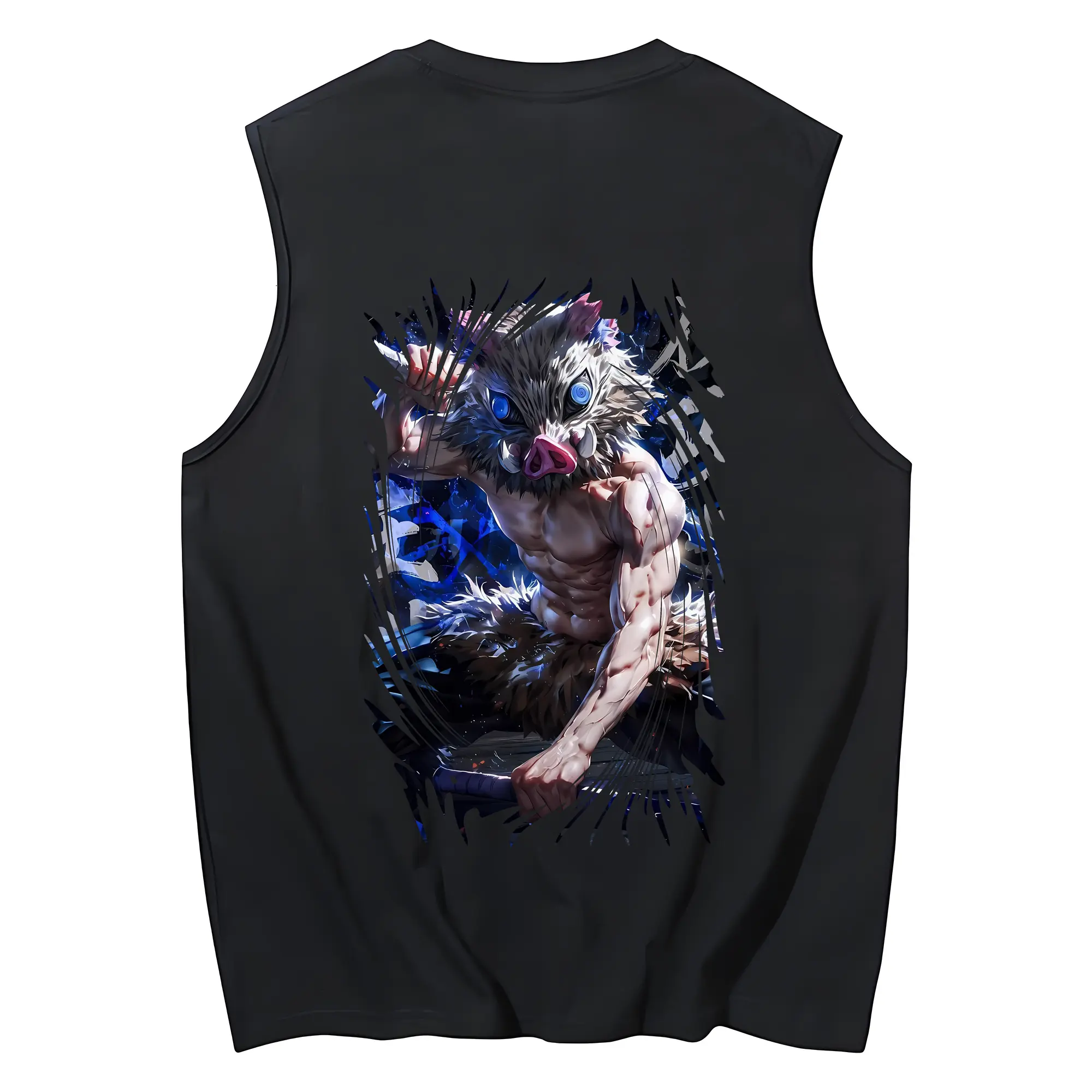 鬼滅の刃 グッズ,嘴平 伊之助 - コットン100% タンクトップ ・ 背面プリント ・ タイトシルエット ・ 快適 通気性 ・ スポーツ カジュアル 散歩用
