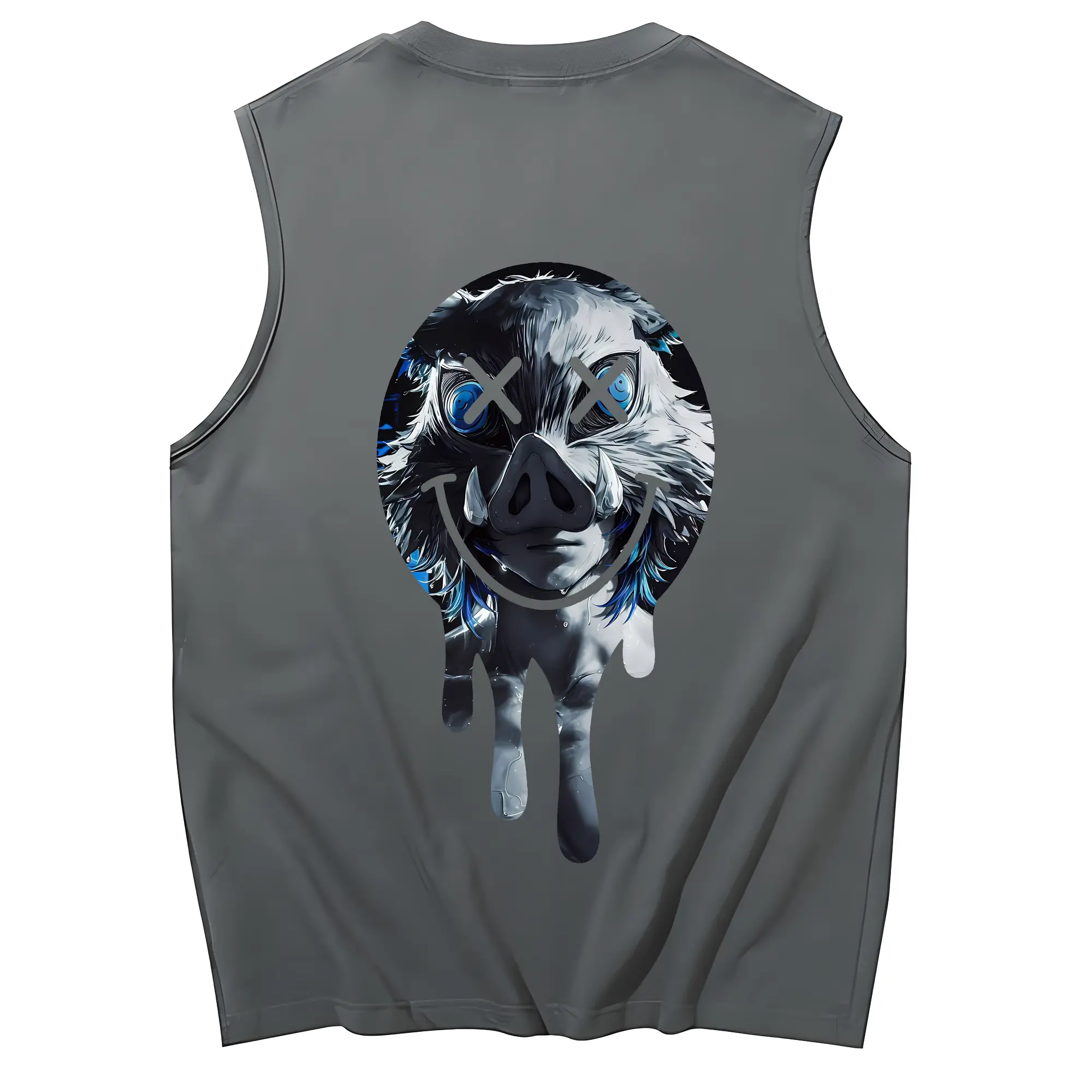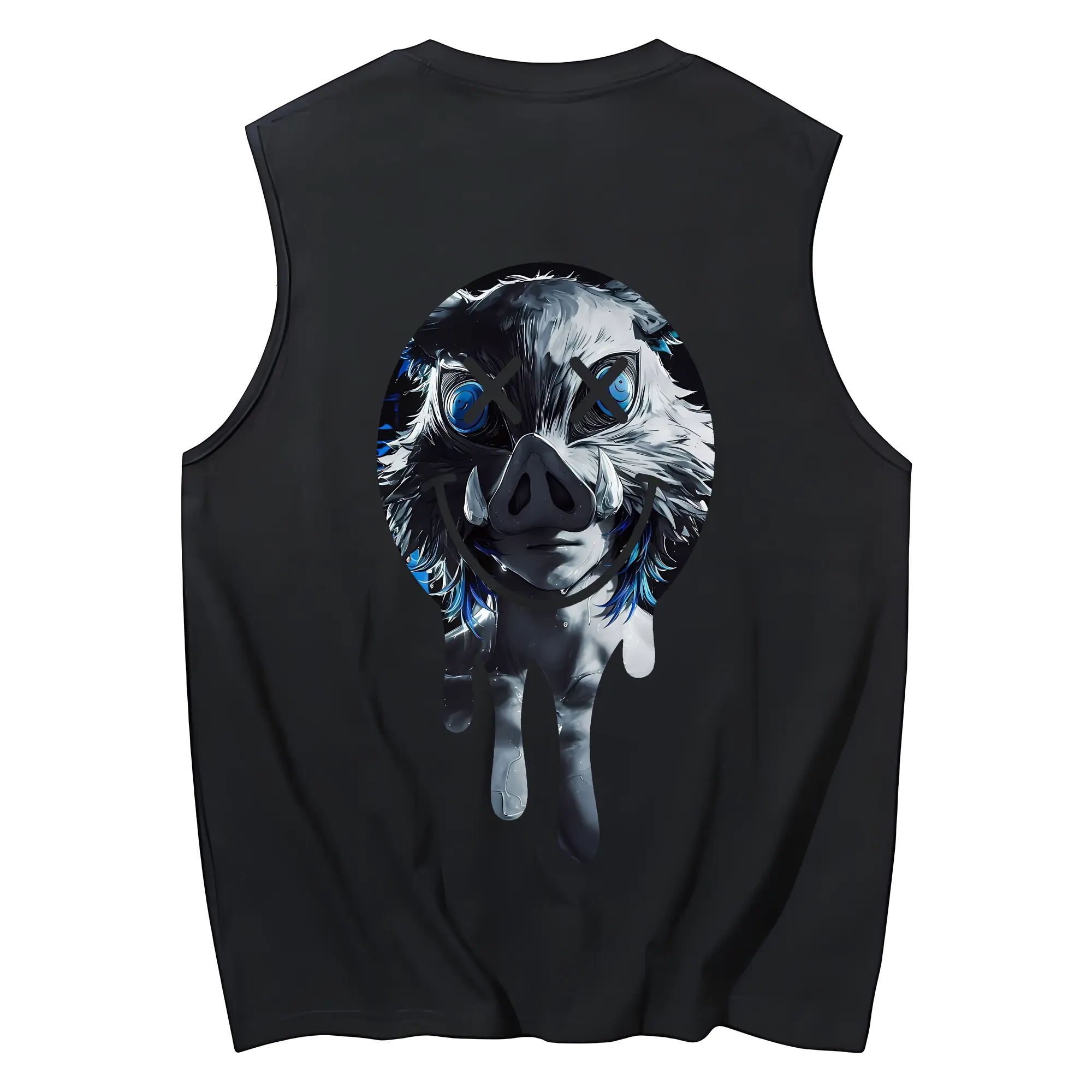 鬼滅の刃 グッズ,嘴平 伊之助 - コットン100% タンクトップ ・ 背面プリント ・ タイトシルエット ・ 快適 通気性 ・ スポーツ カジュアル 散歩用