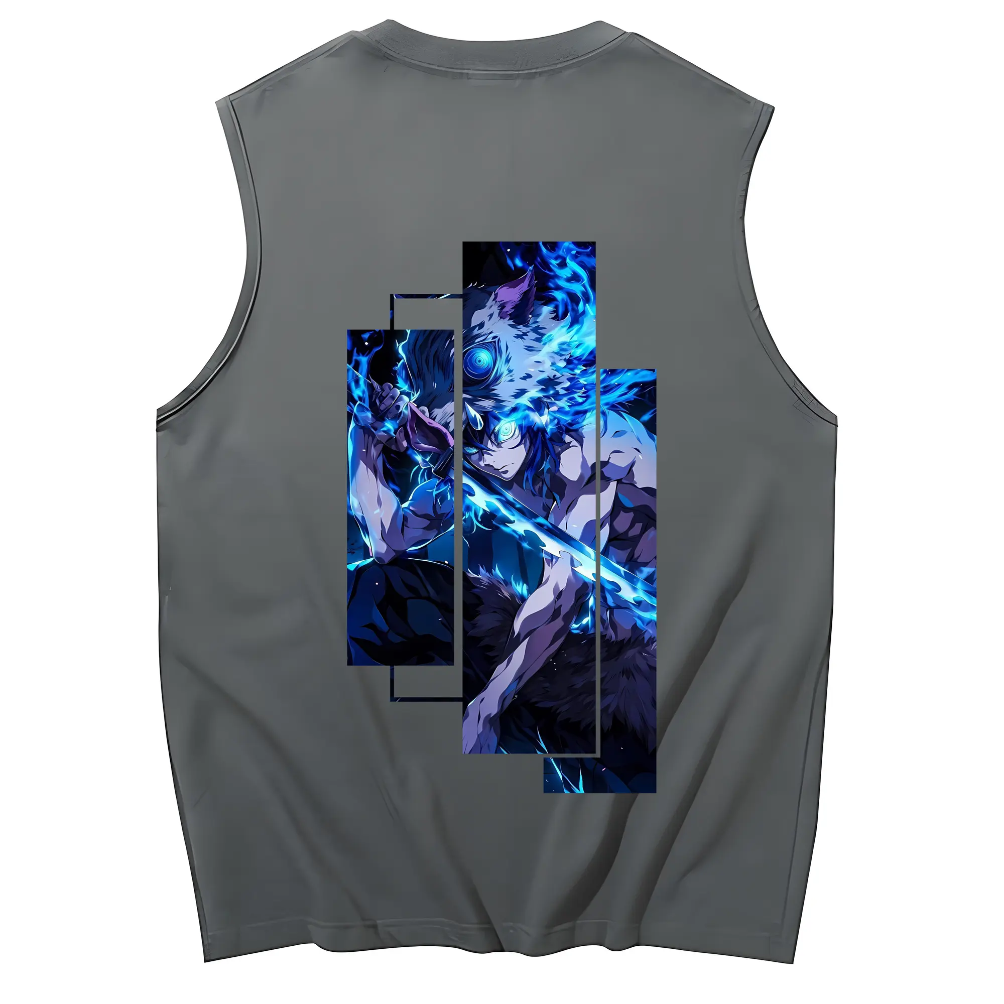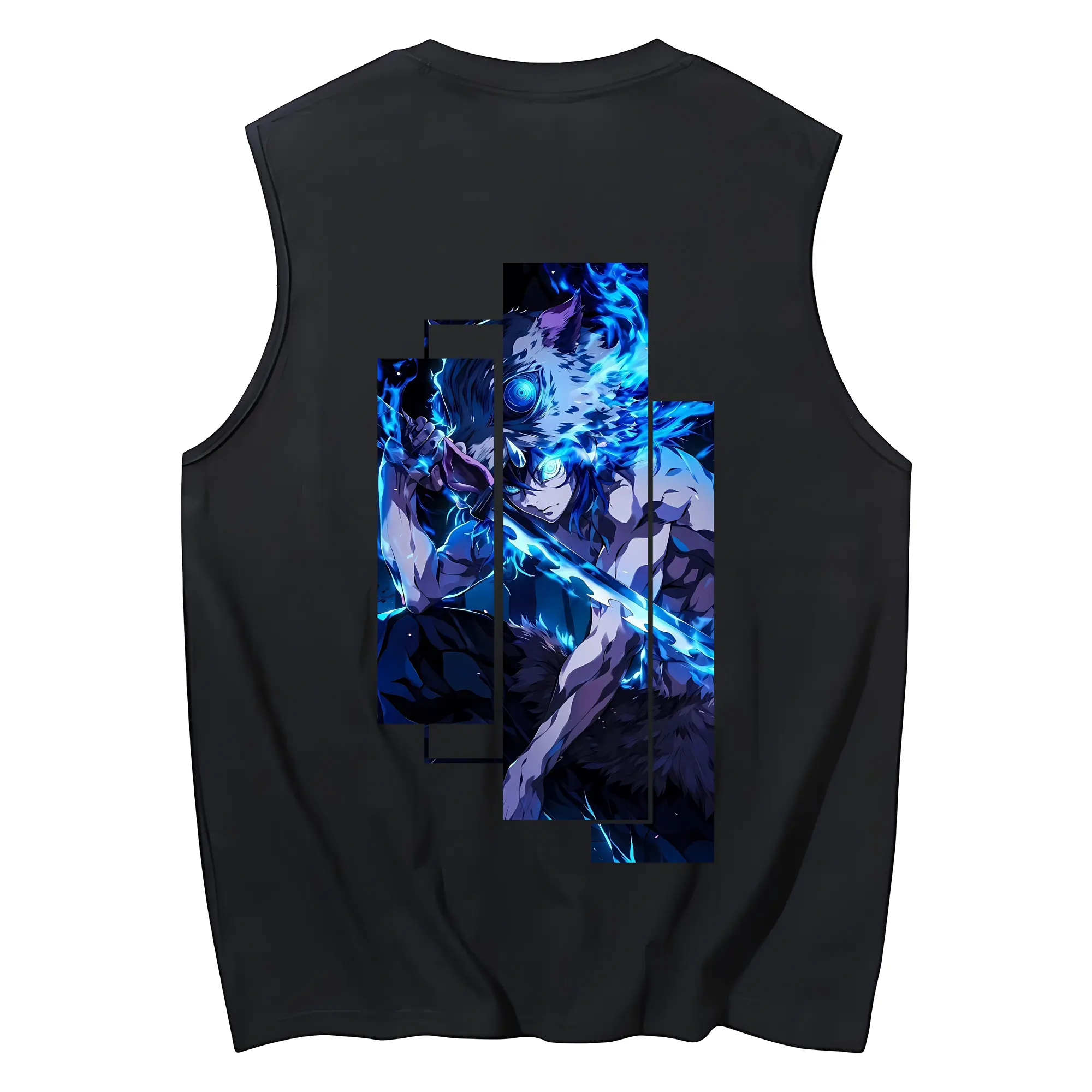 鬼滅の刃 グッズ,嘴平 伊之助 - コットン100% タンクトップ ・ 背面プリント ・ タイトシルエット ・ 快適 通気性 ・ スポーツ カジュアル 散歩用