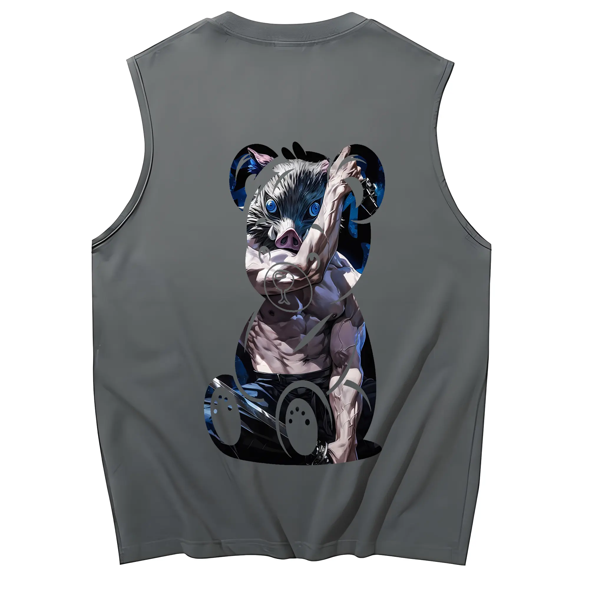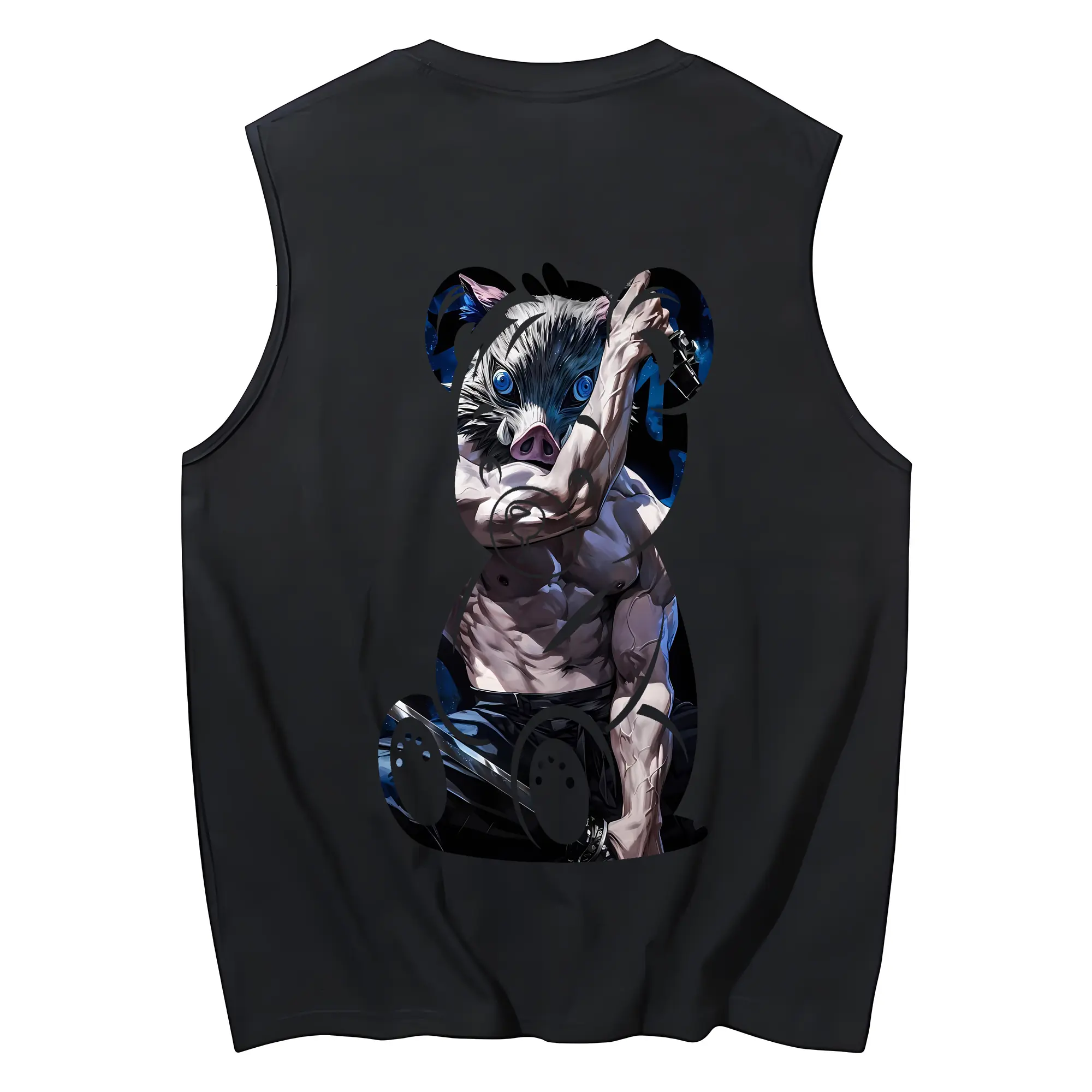 鬼滅の刃 グッズ,嘴平 伊之助 - コットン100% タンクトップ ・ 背面プリント ・ タイトシルエット ・ 快適 通気性 ・ スポーツ カジュアル 散歩用