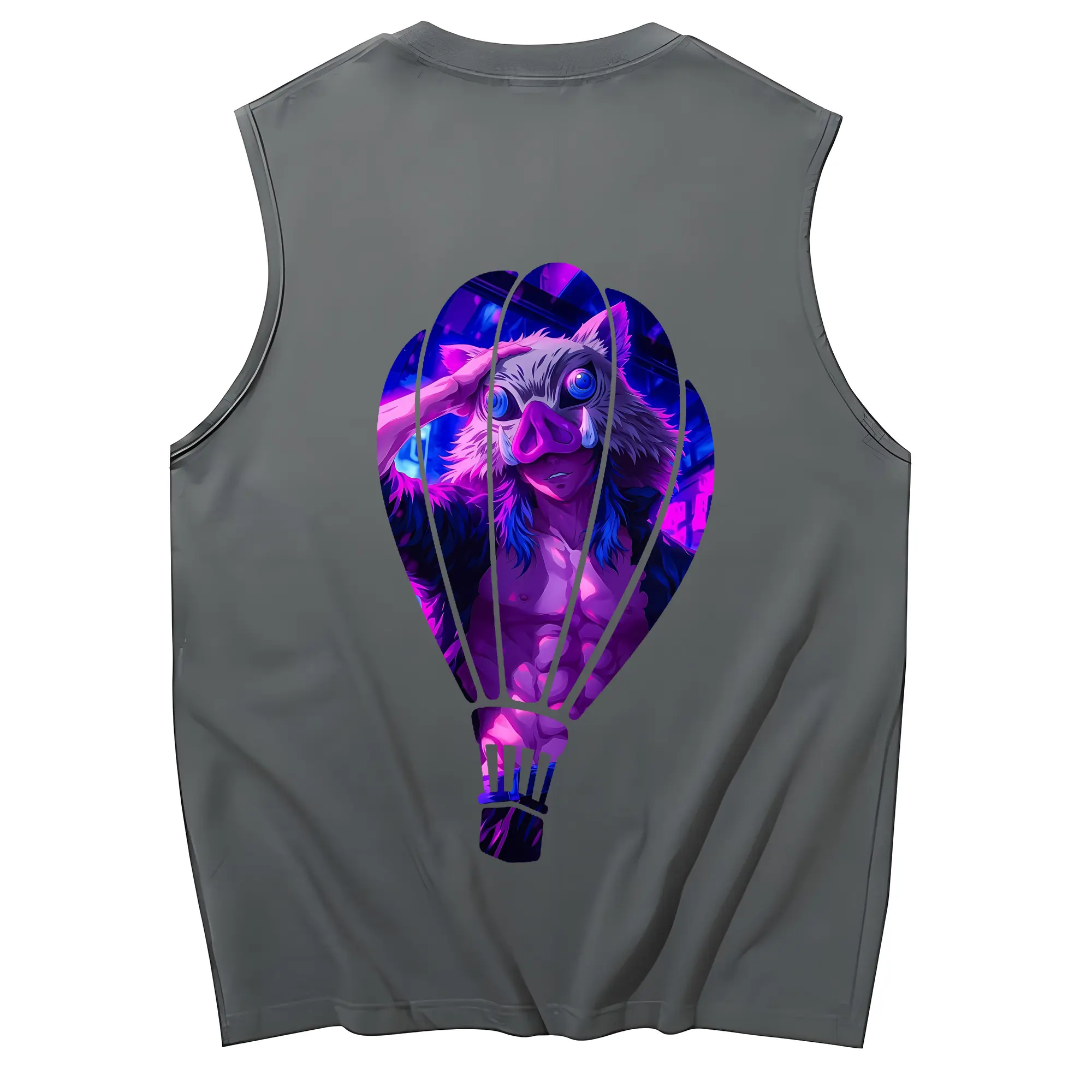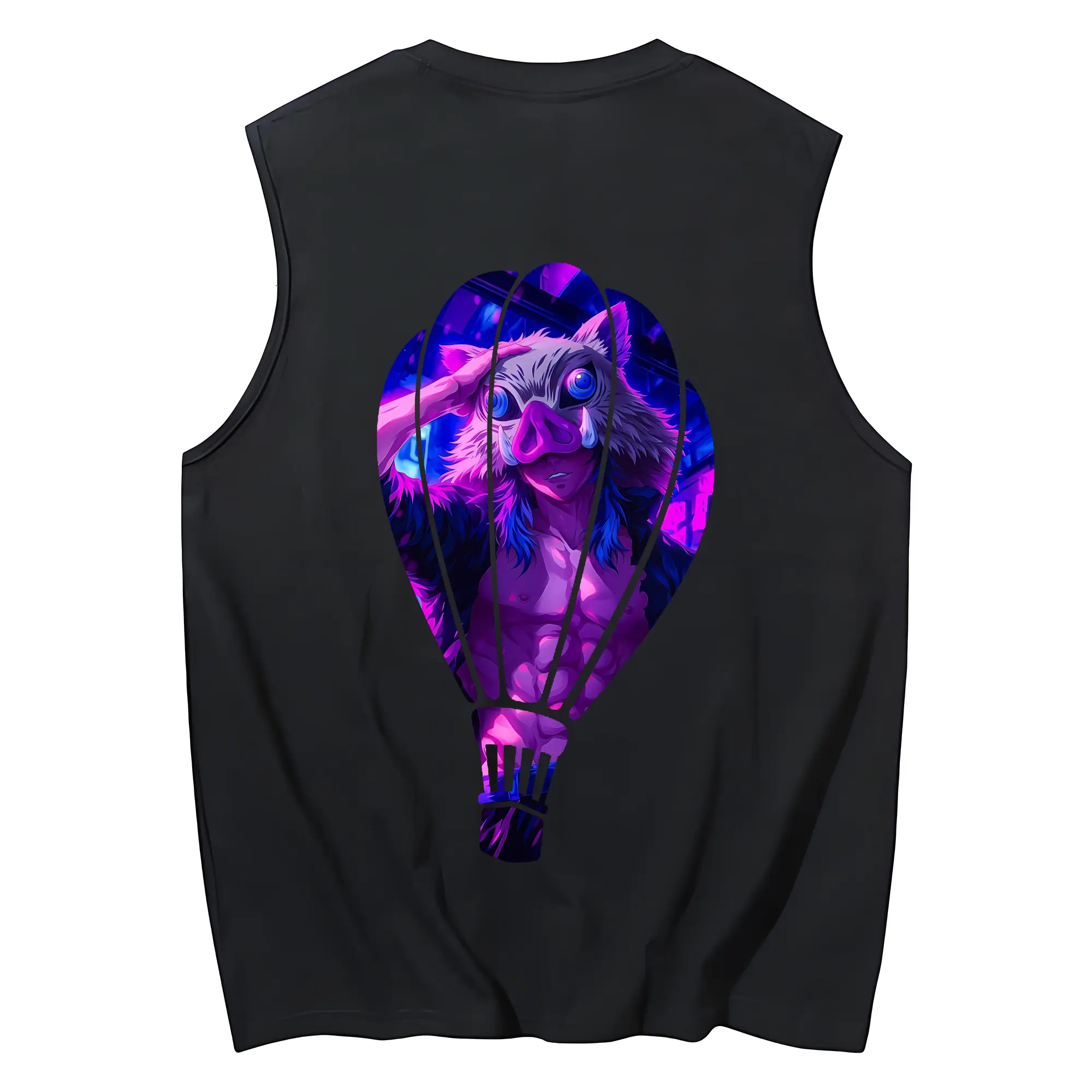 鬼滅の刃 グッズ,嘴平 伊之助 - コットン100% タンクトップ ・ 背面プリント ・ タイトシルエット ・ 快適 通気性 ・ スポーツ カジュアル 散歩用