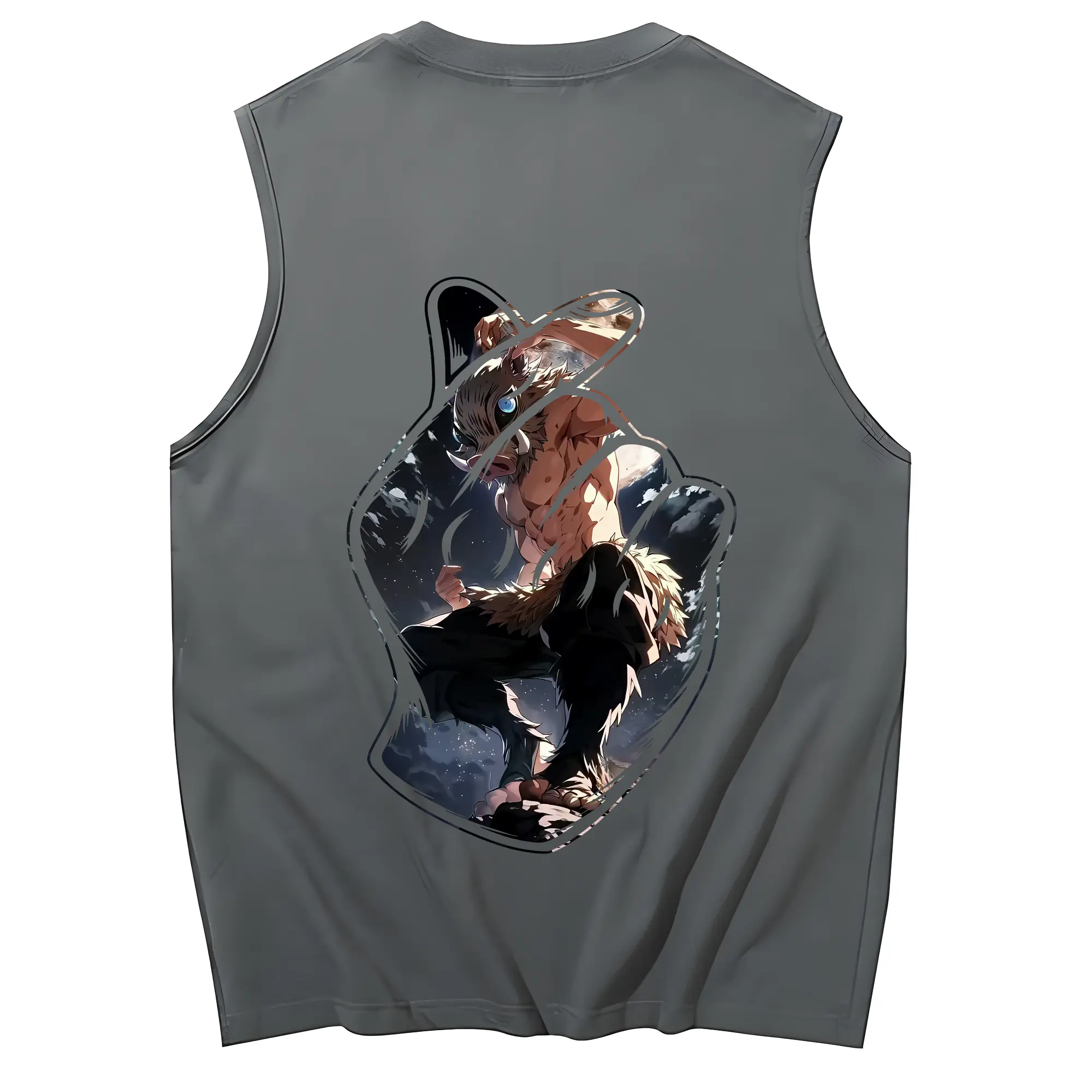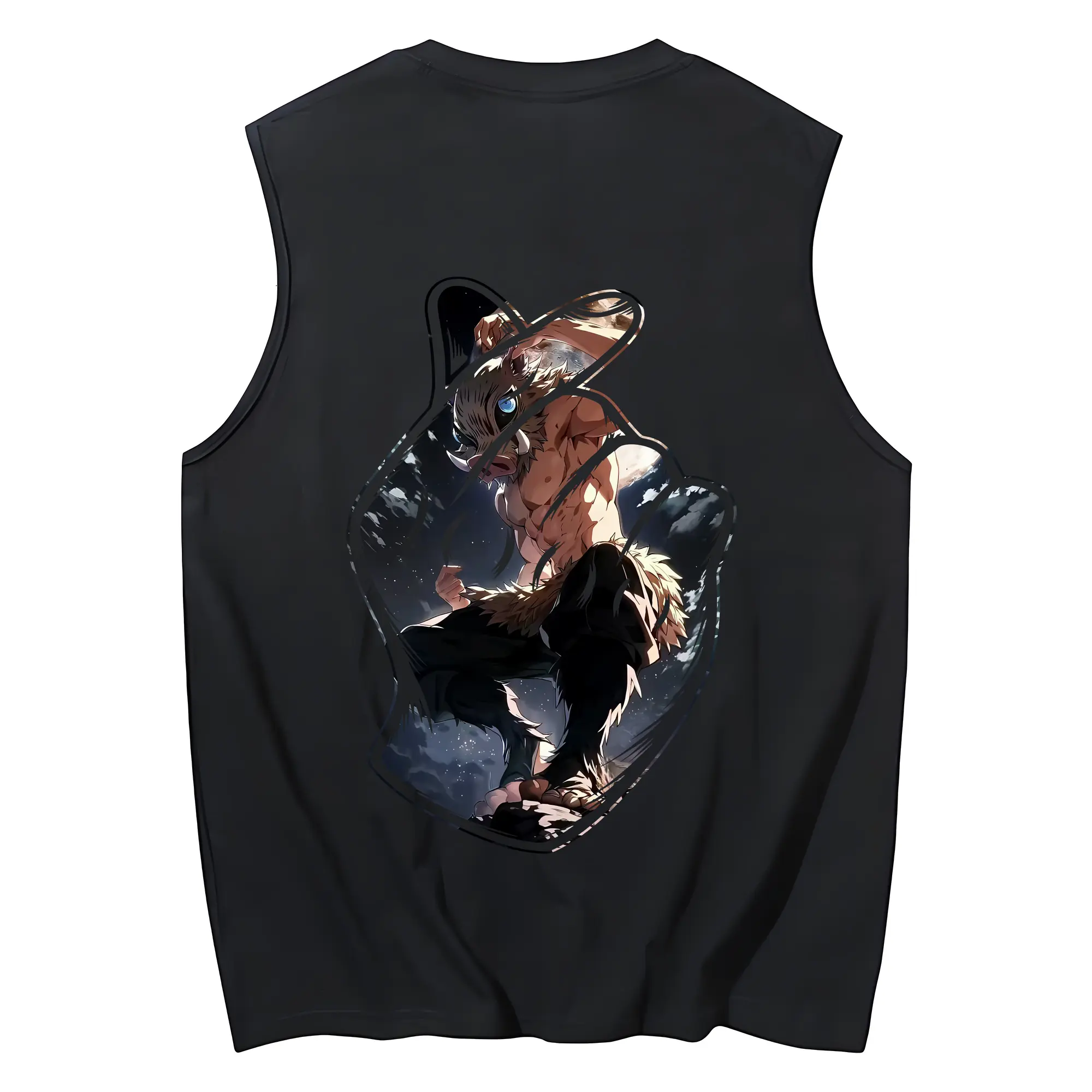 鬼滅の刃 グッズ,嘴平 伊之助 - コットン100% タンクトップ ・ 背面プリント ・ タイトシルエット ・ 快適 通気性 ・ スポーツ カジュアル 散歩用