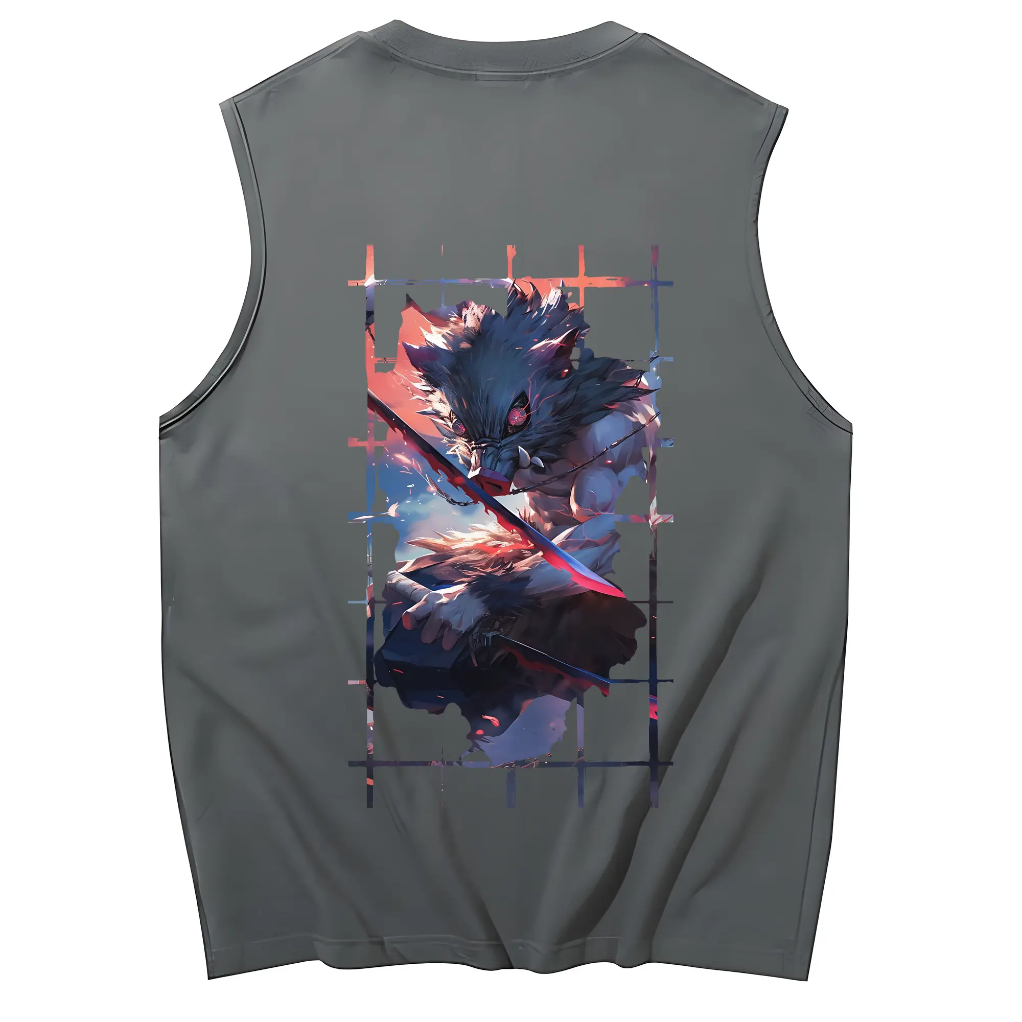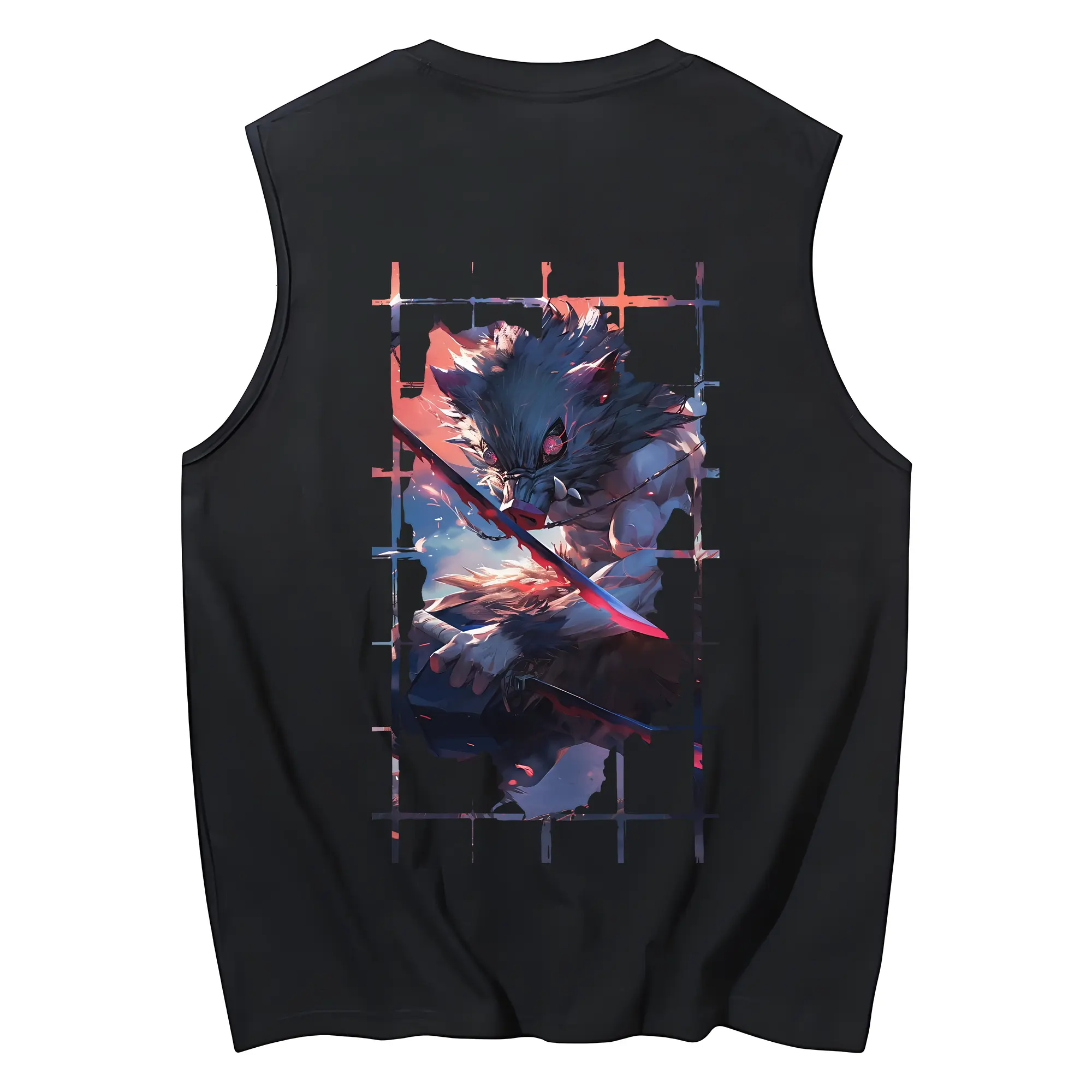 鬼滅の刃 グッズ,嘴平 伊之助 - コットン100% タンクトップ ・ 背面プリント ・ タイトシルエット ・ 快適 通気性 ・ スポーツ カジュアル 散歩用