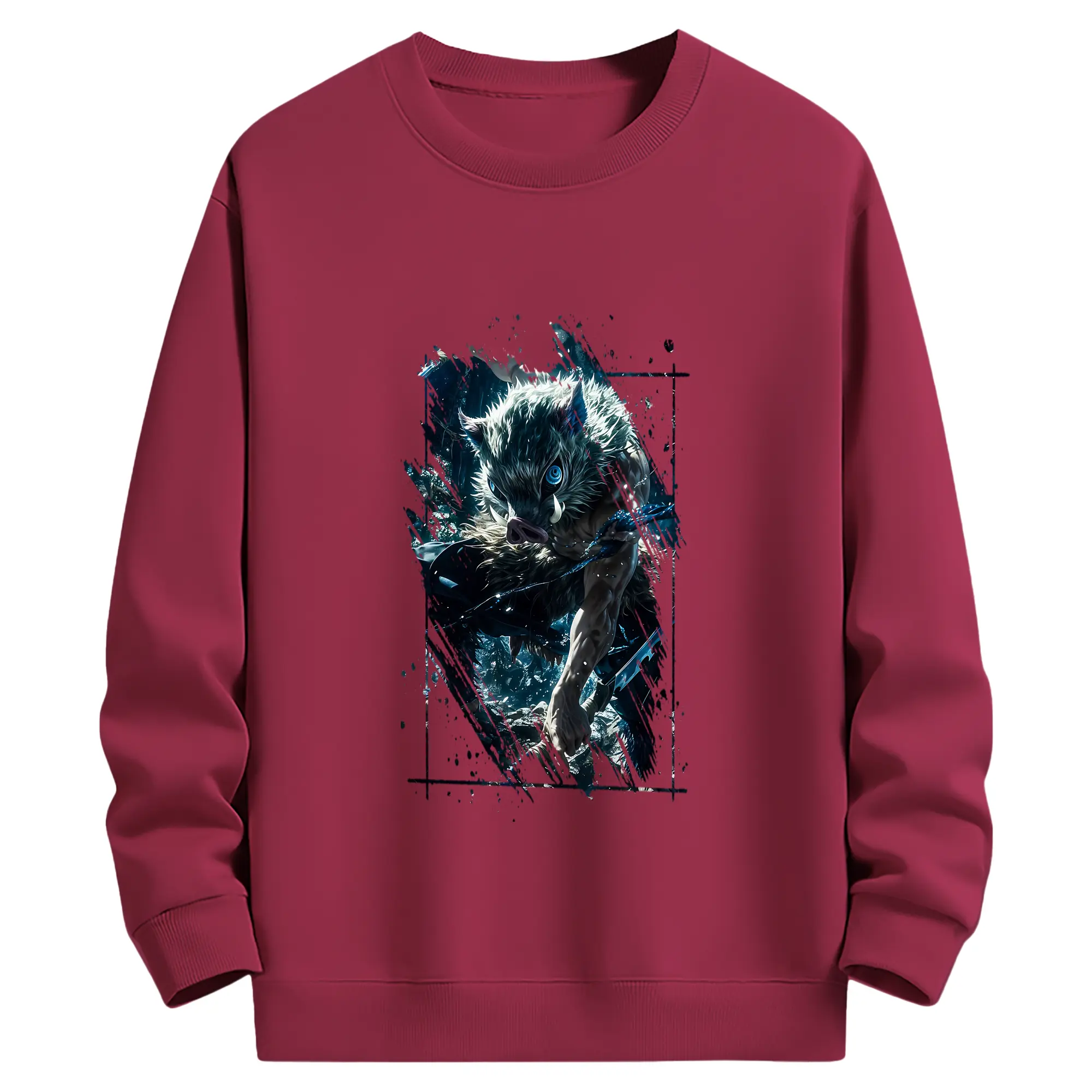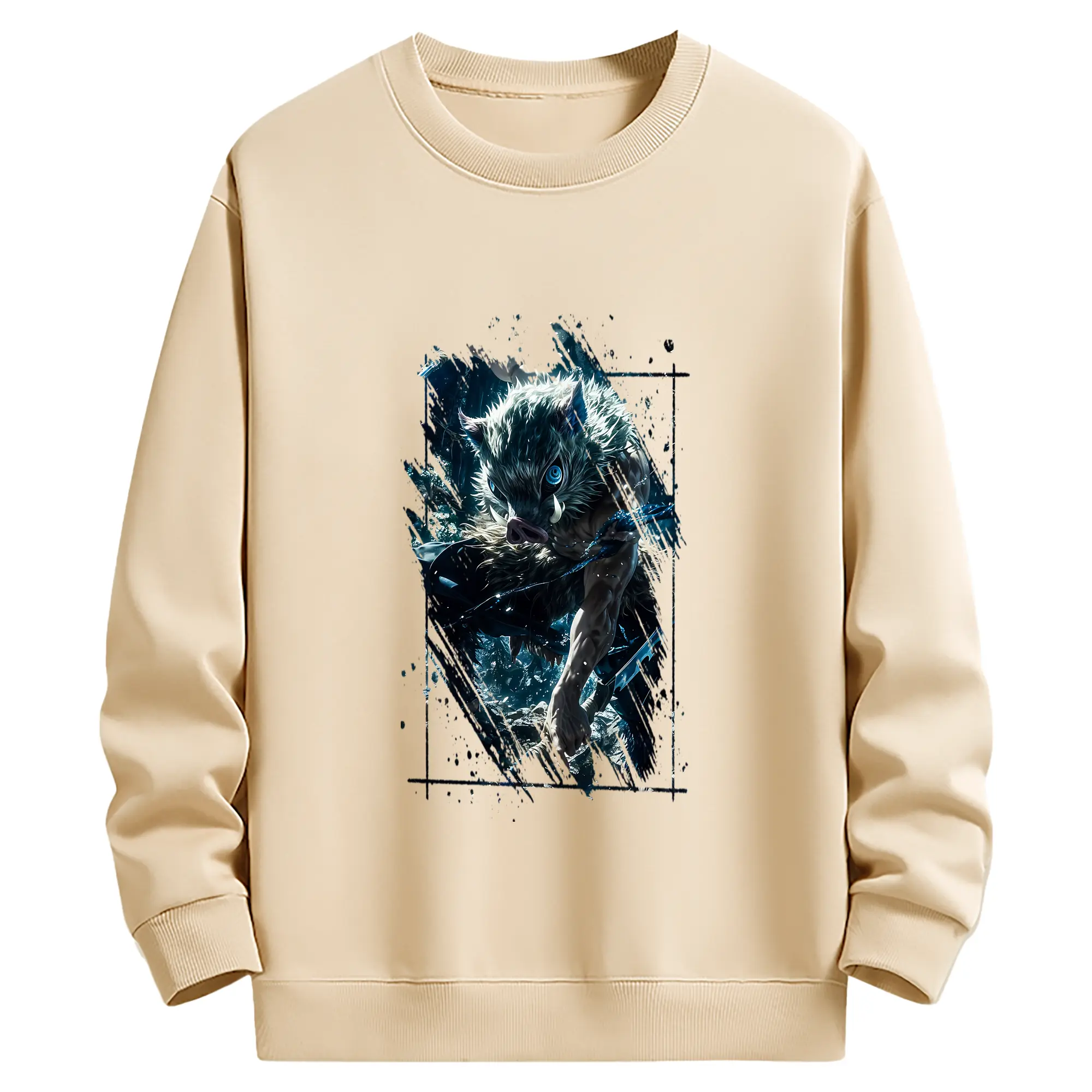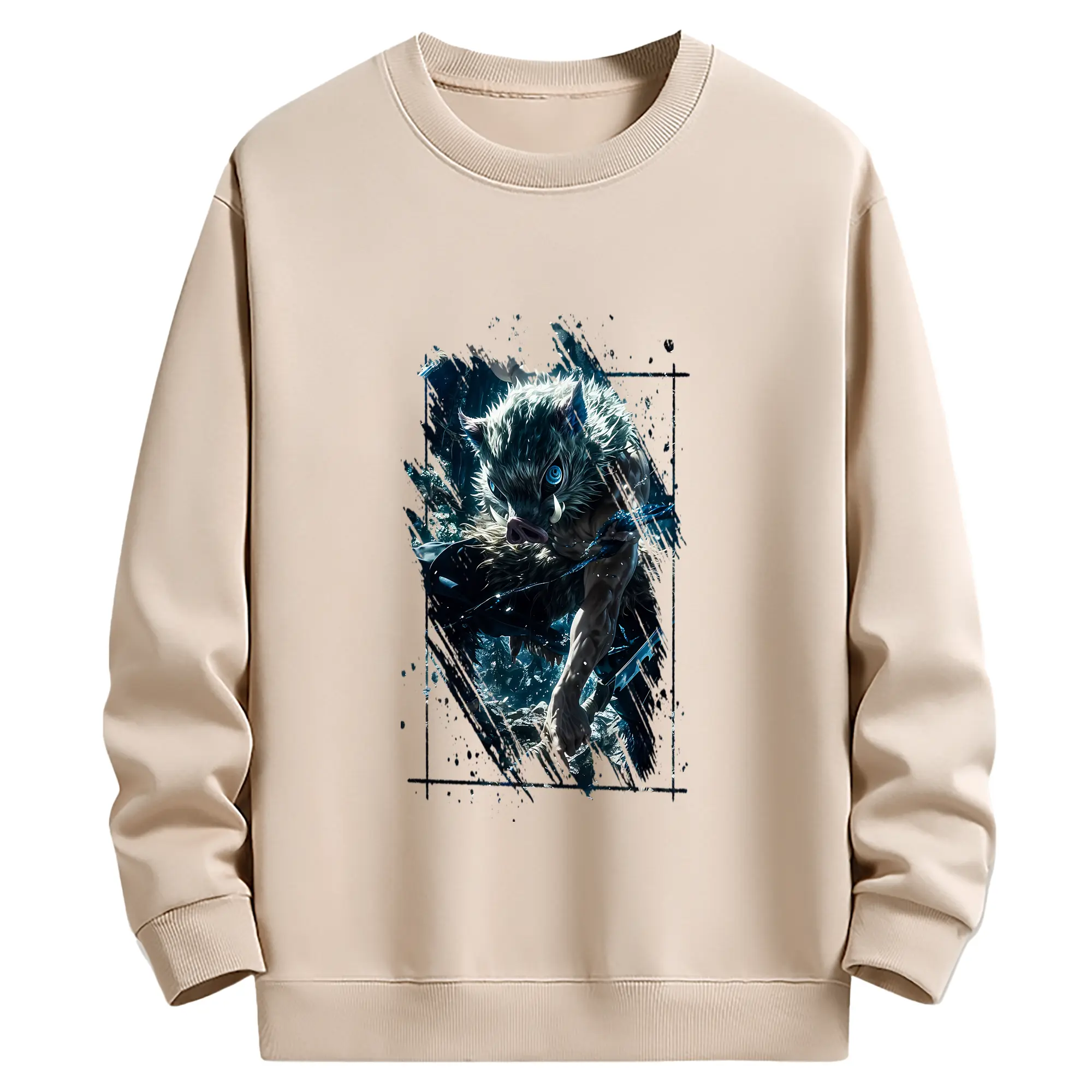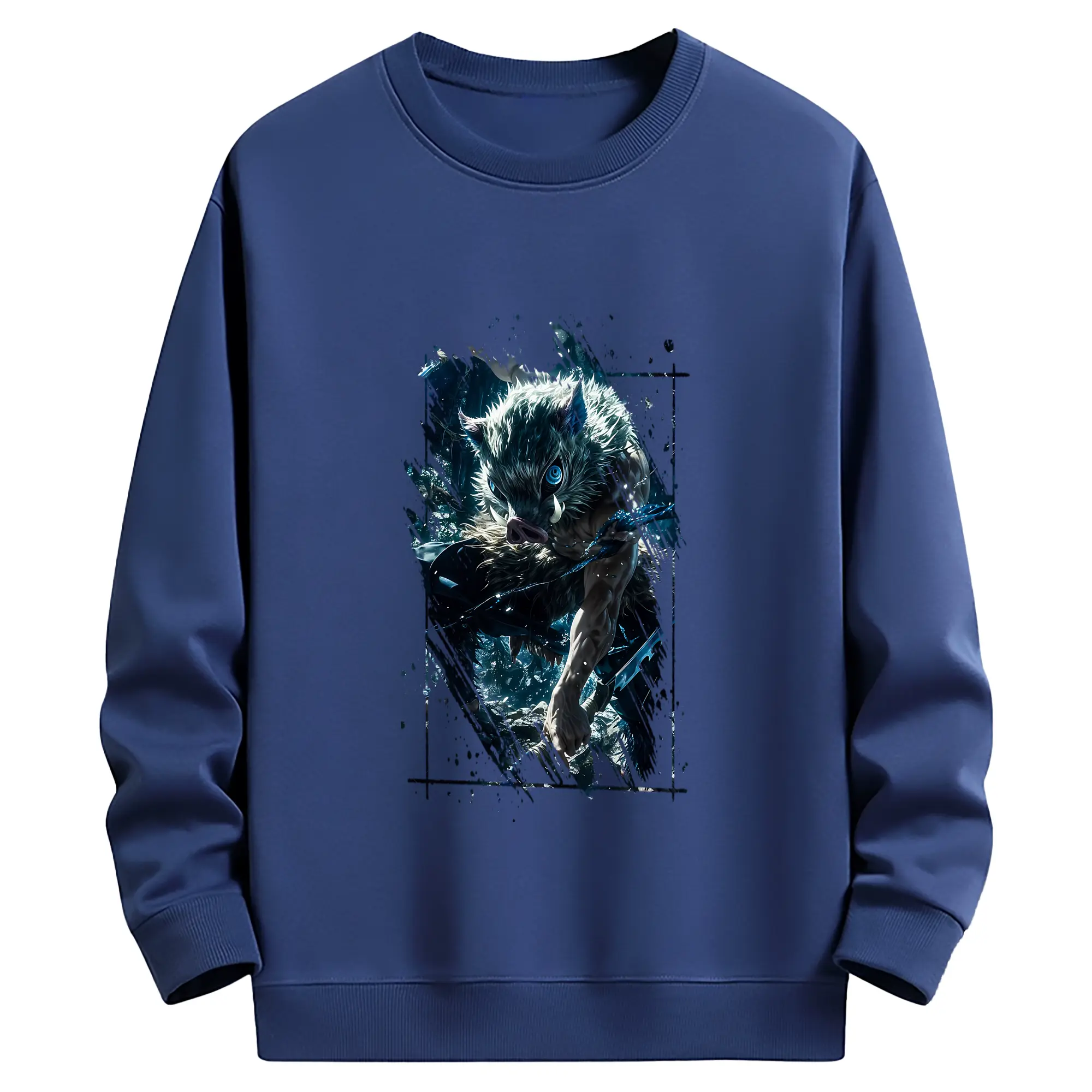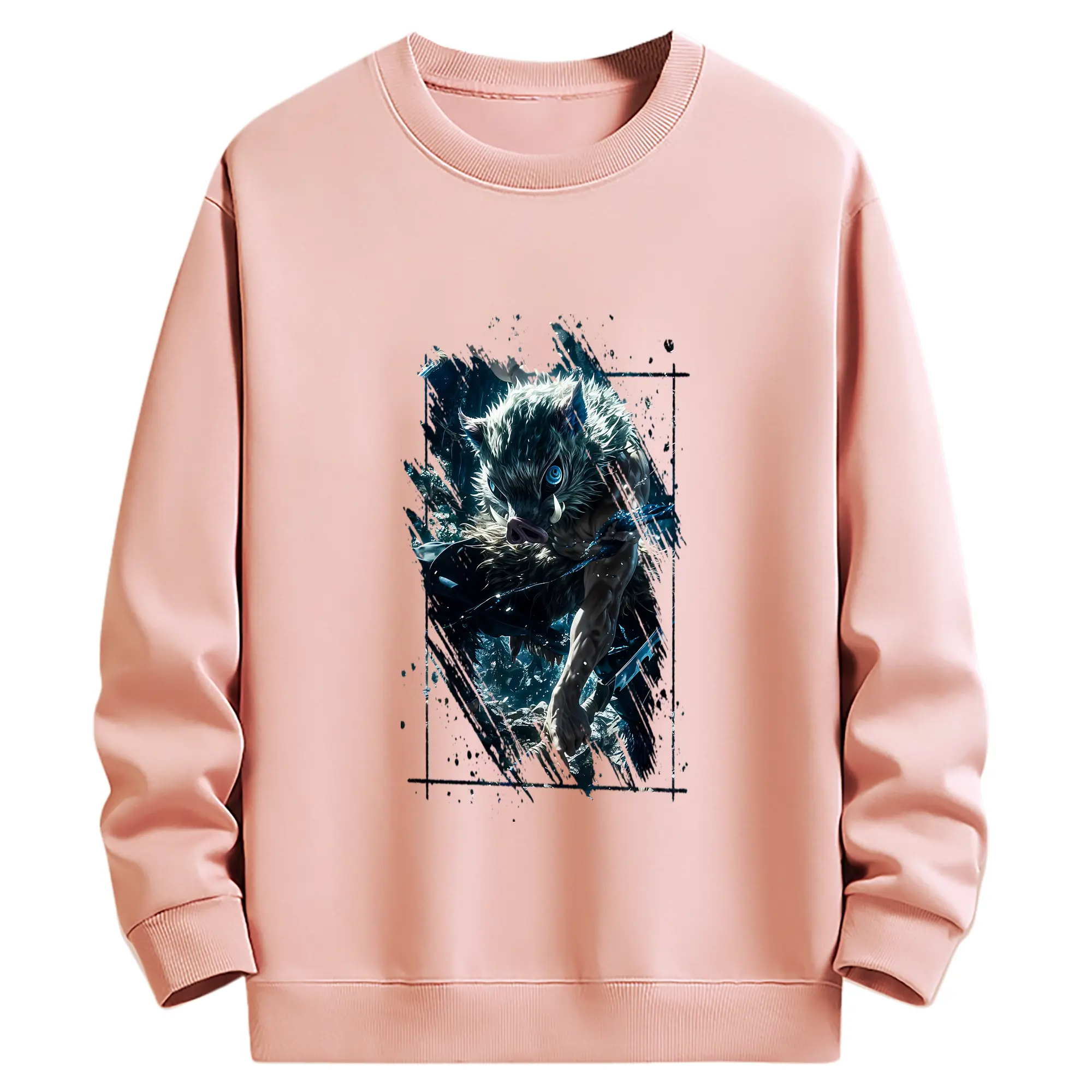 鬼滅の刃 グッズ,嘴平 伊之助 - 薄手 クルーネック スウェット 裏毛260g · ポリエステル 春秋向け カジュアル 男女兼用 · トレーナー デイリー スポーツ 散歩に最適