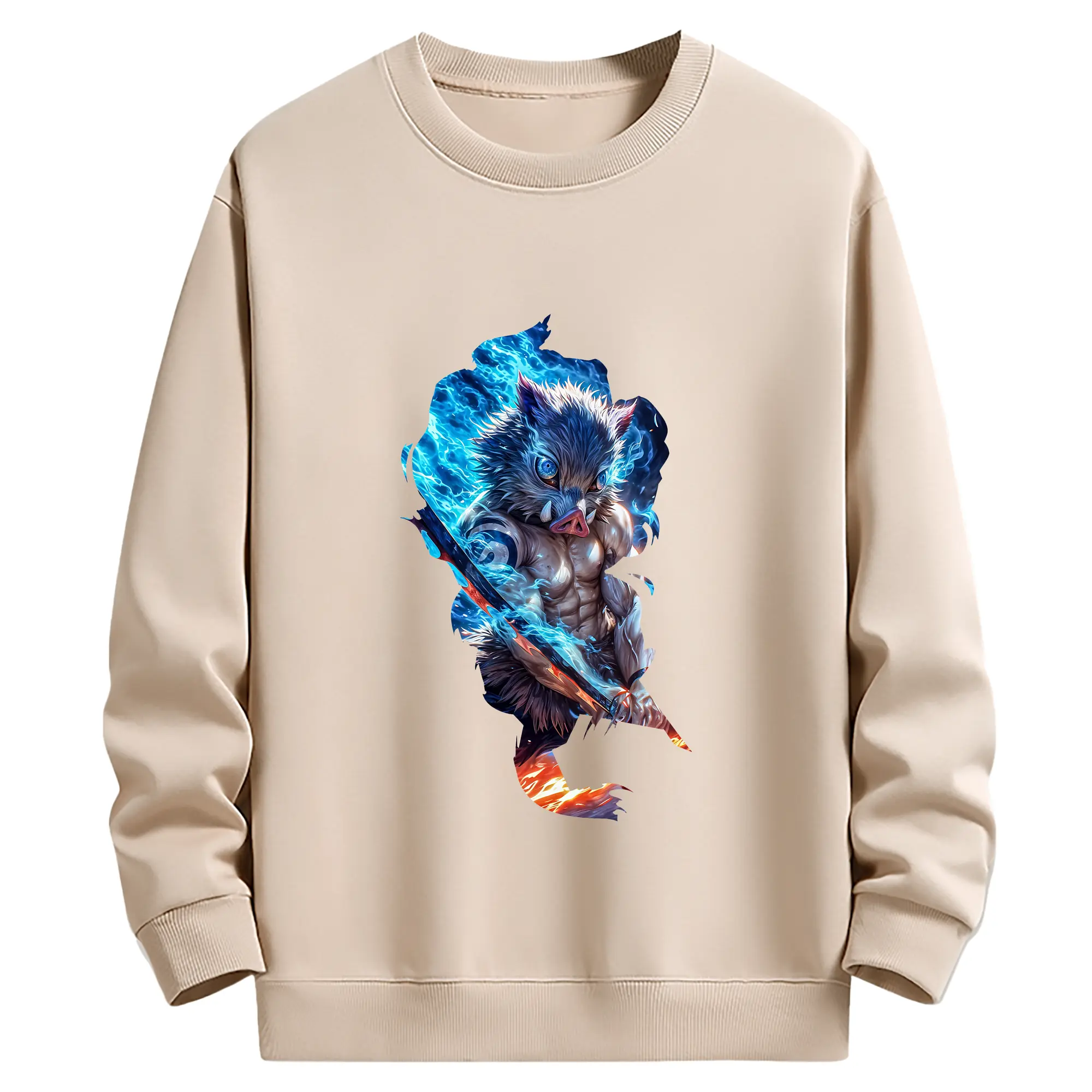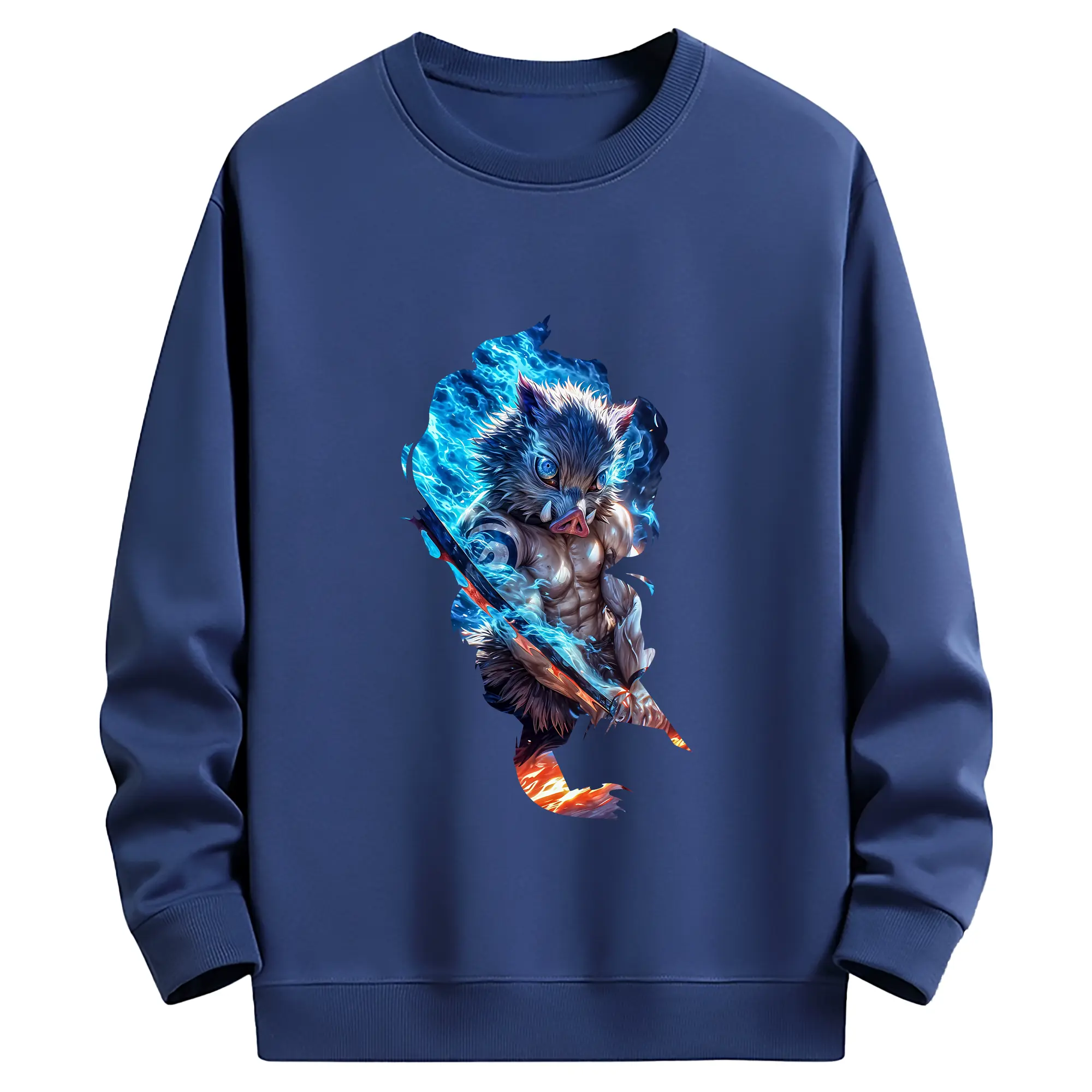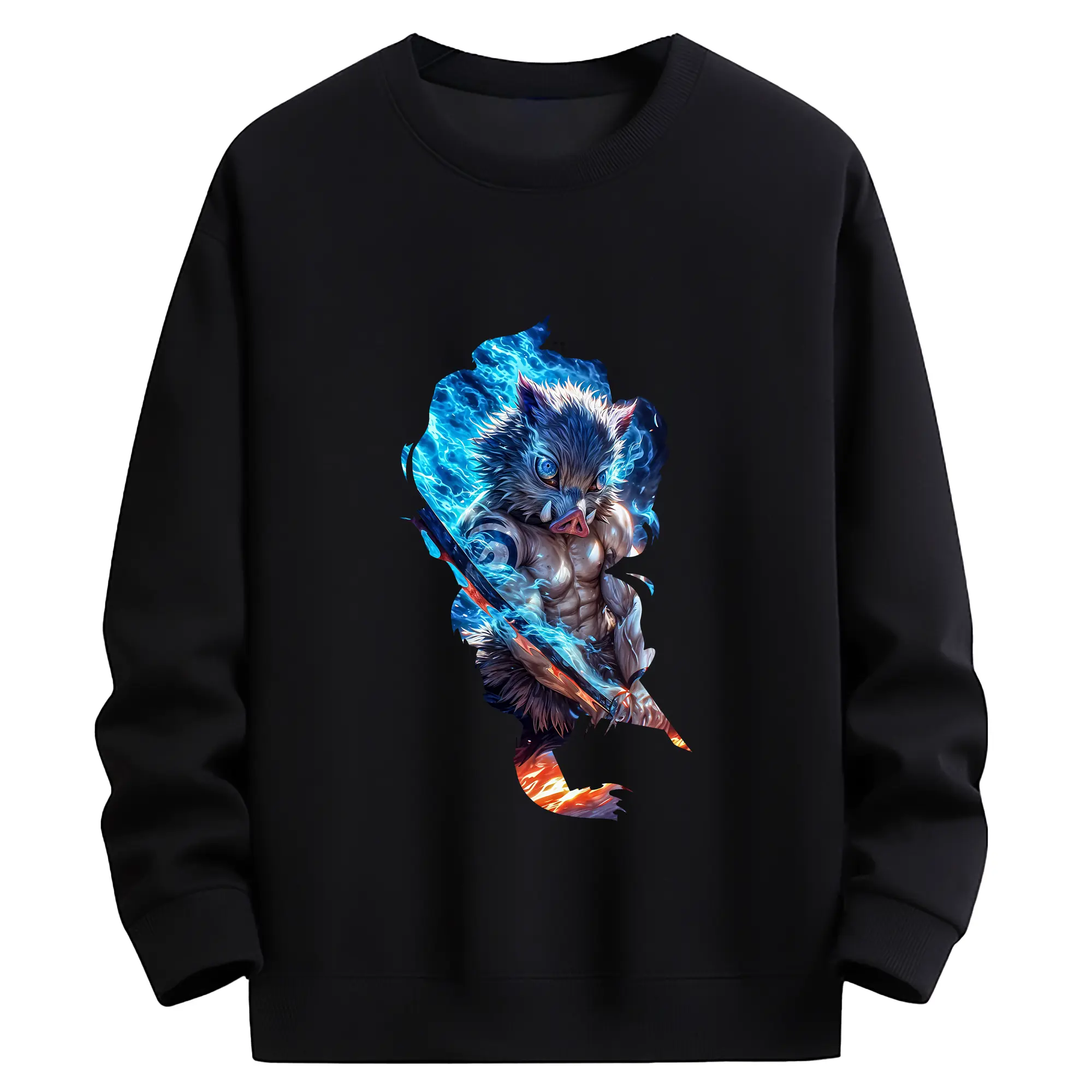 鬼滅の刃 グッズ,嘴平 伊之助 - 薄手 クルーネック スウェット 裏毛260g · ポリエステル 春秋向け カジュアル 男女兼用 · トレーナー デイリー スポーツ 散歩に最適
