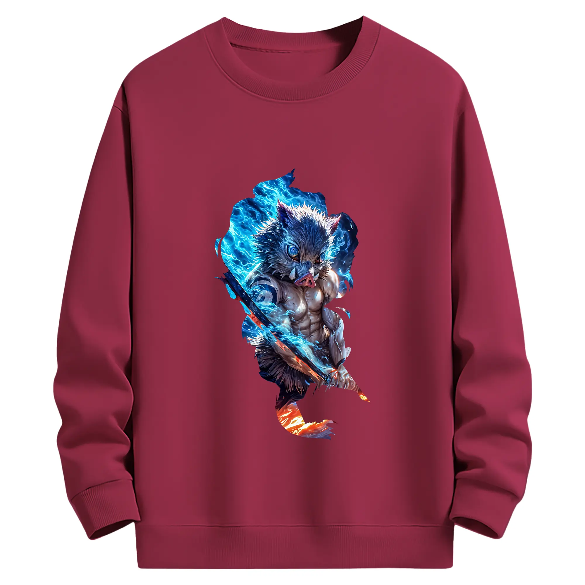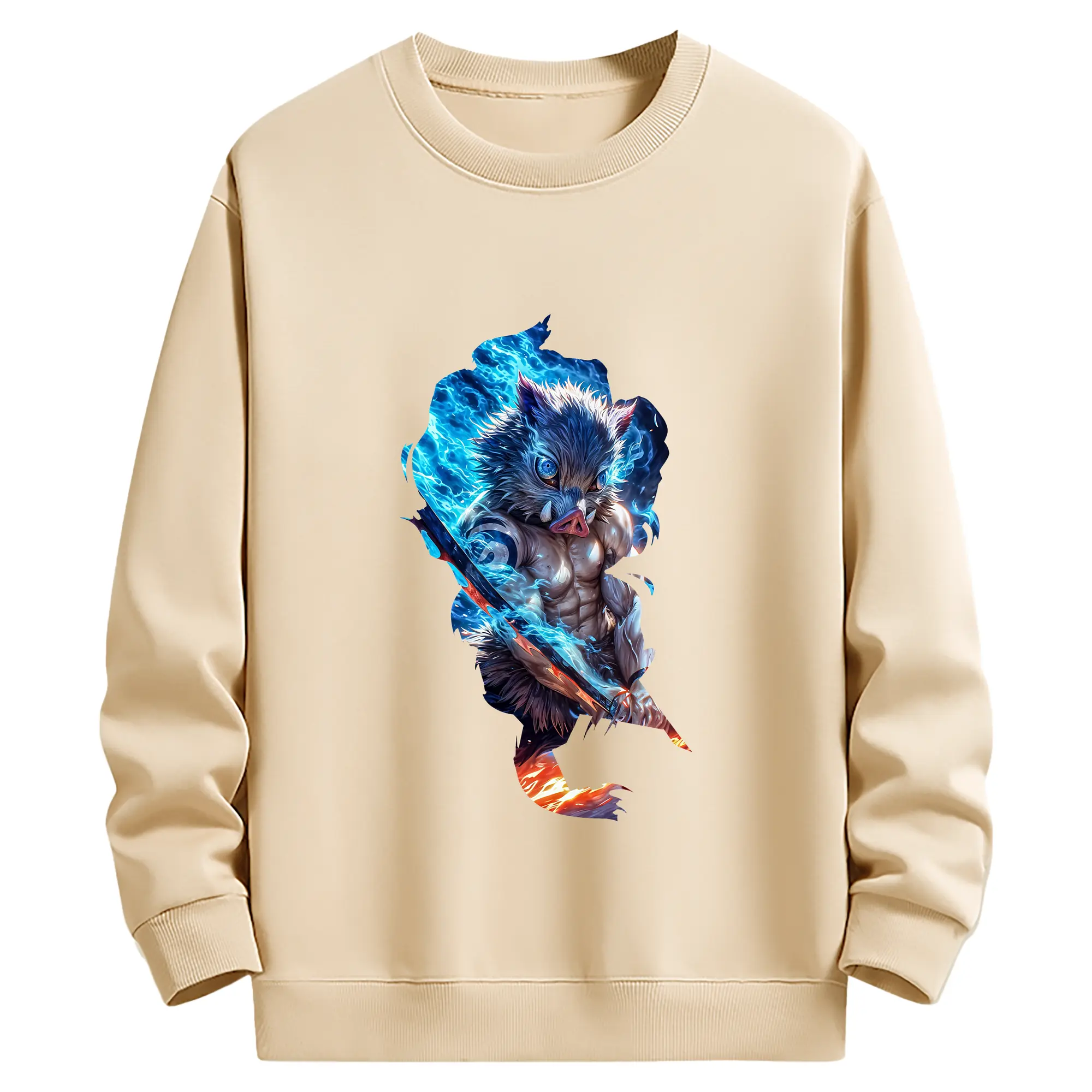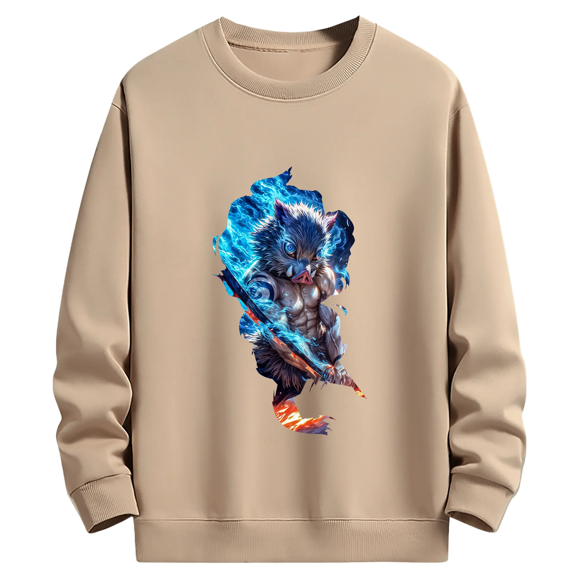 鬼滅の刃 グッズ,嘴平 伊之助 - 薄手 クルーネック スウェット 裏毛260g · ポリエステル 春秋向け カジュアル 男女兼用 · トレーナー デイリー スポーツ 散歩に最適