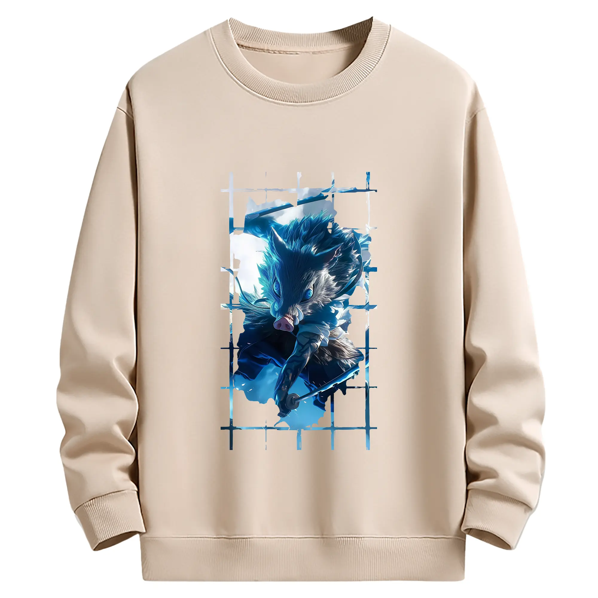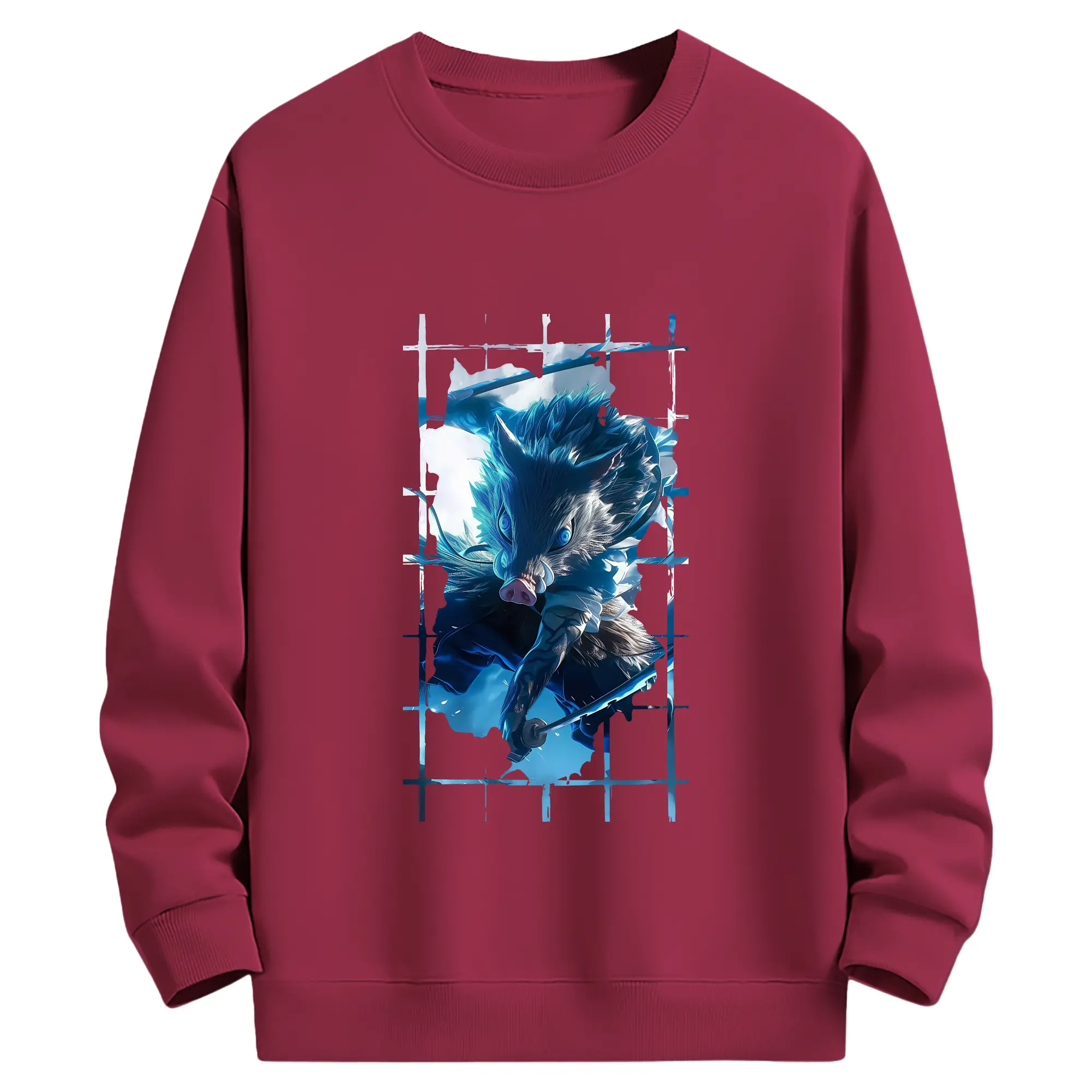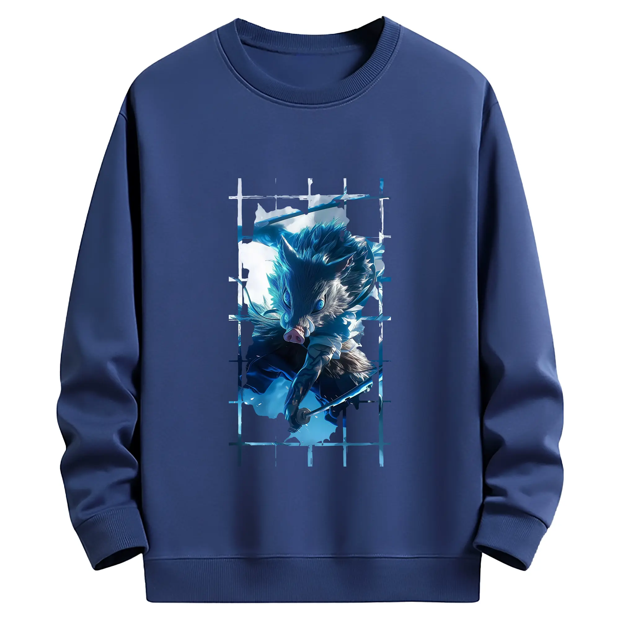鬼滅の刃 グッズ,嘴平 伊之助 - 薄手 クルーネック スウェット 裏毛260g · ポリエステル 春秋向け カジュアル 男女兼用 · トレーナー デイリー スポーツ 散歩に最適