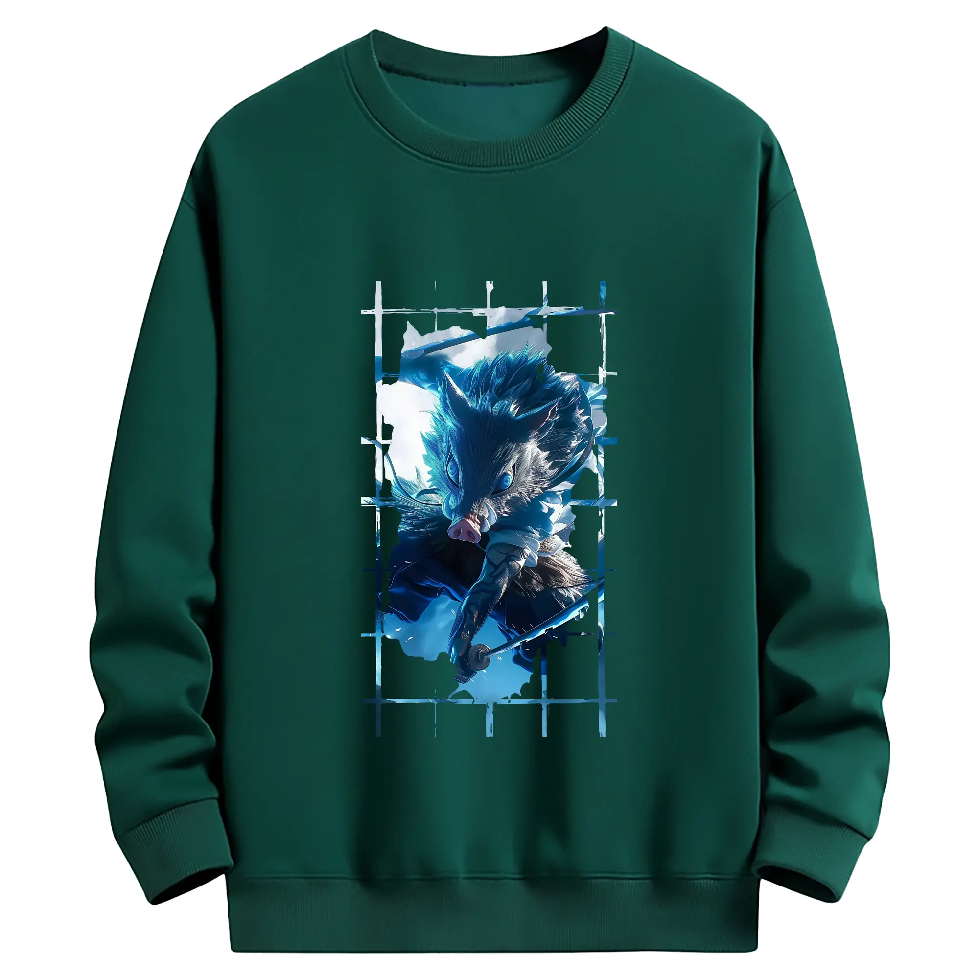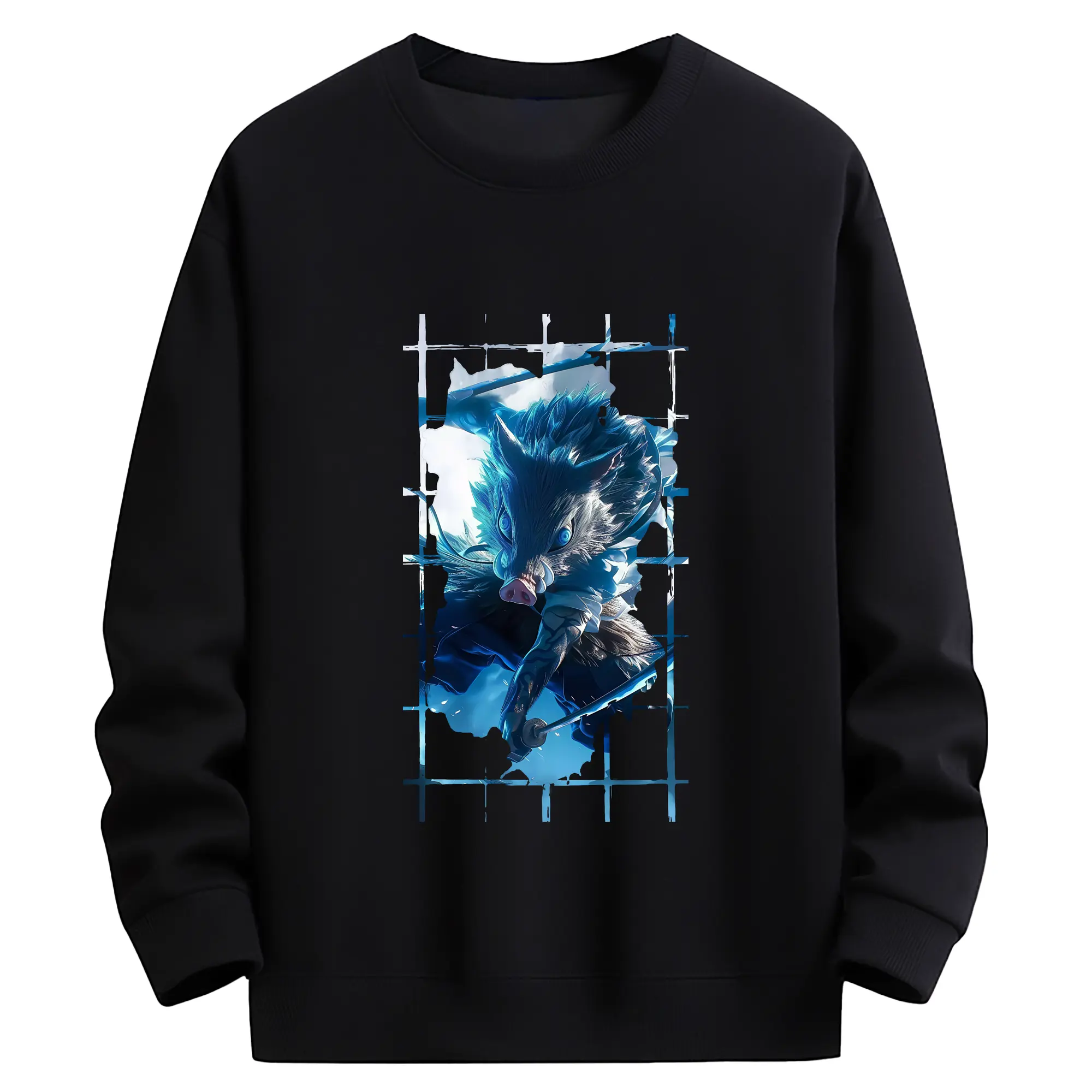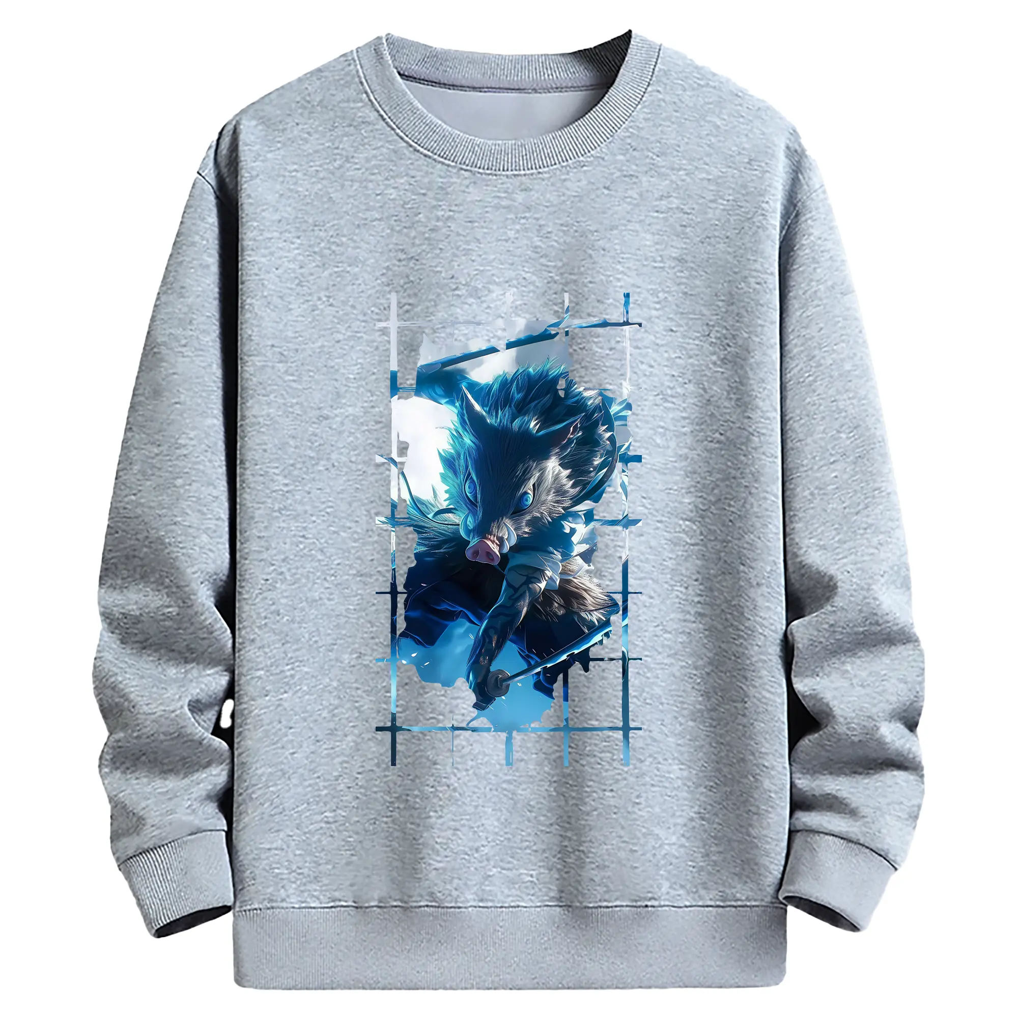 鬼滅の刃 グッズ,嘴平 伊之助 - 薄手 クルーネック スウェット 裏毛260g · ポリエステル 春秋向け カジュアル 男女兼用 · トレーナー デイリー スポーツ 散歩に最適