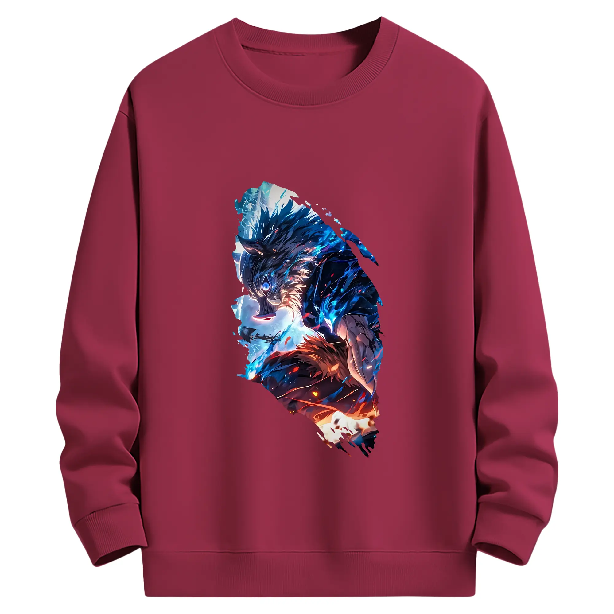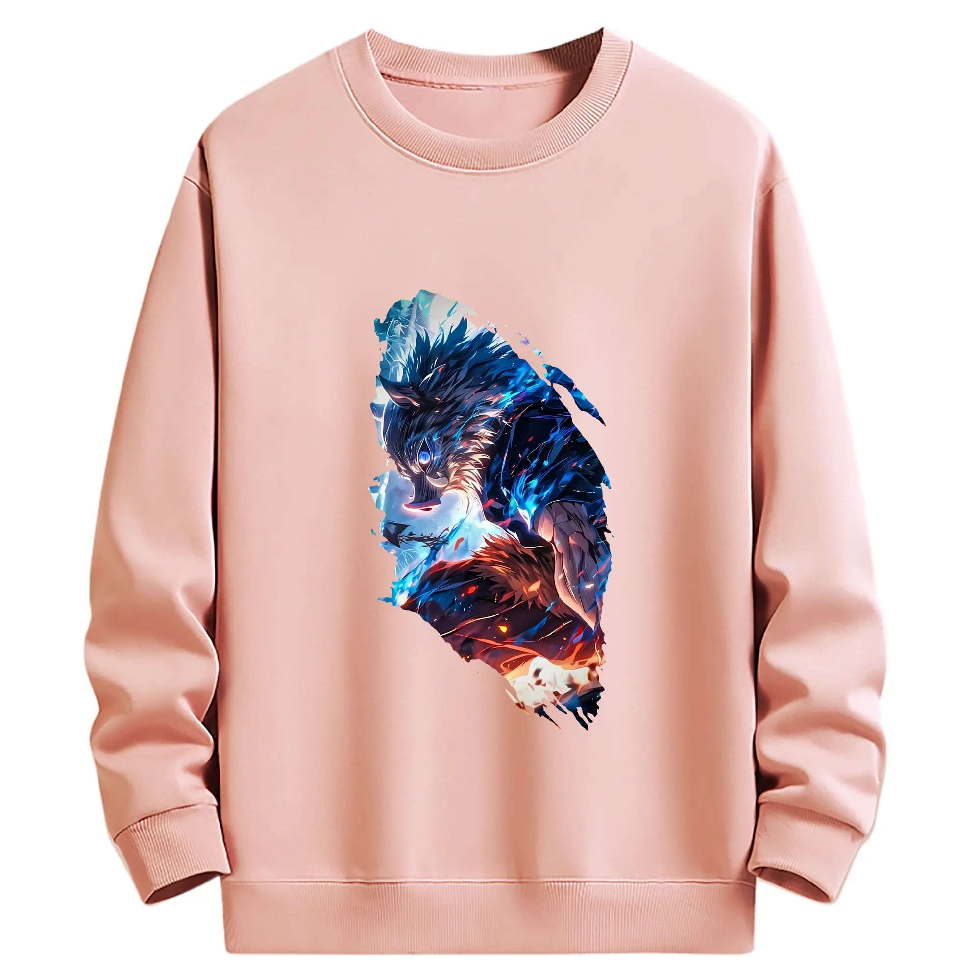 鬼滅の刃 グッズ,嘴平 伊之助 - 薄手 クルーネック スウェット 裏毛260g · ポリエステル 春秋向け カジュアル 男女兼用 · トレーナー デイリー スポーツ 散歩に最適