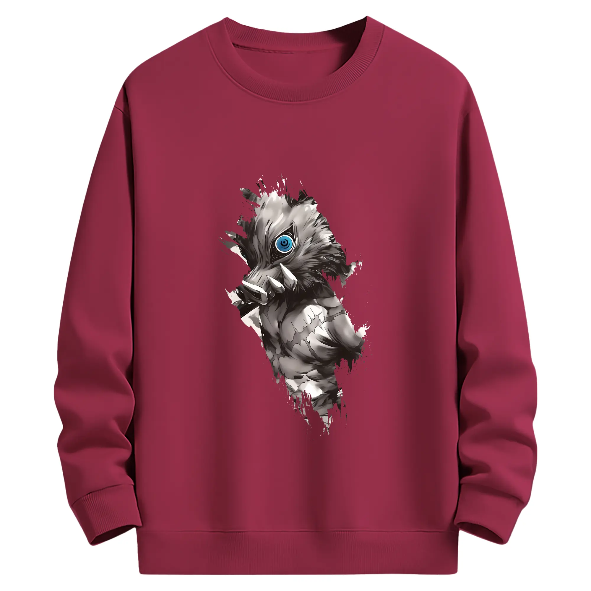 鬼滅の刃 グッズ,嘴平 伊之助 - 薄手 クルーネック スウェット 裏毛260g · ポリエステル 春秋向け カジュアル 男女兼用 · トレーナー デイリー スポーツ 散歩に最適