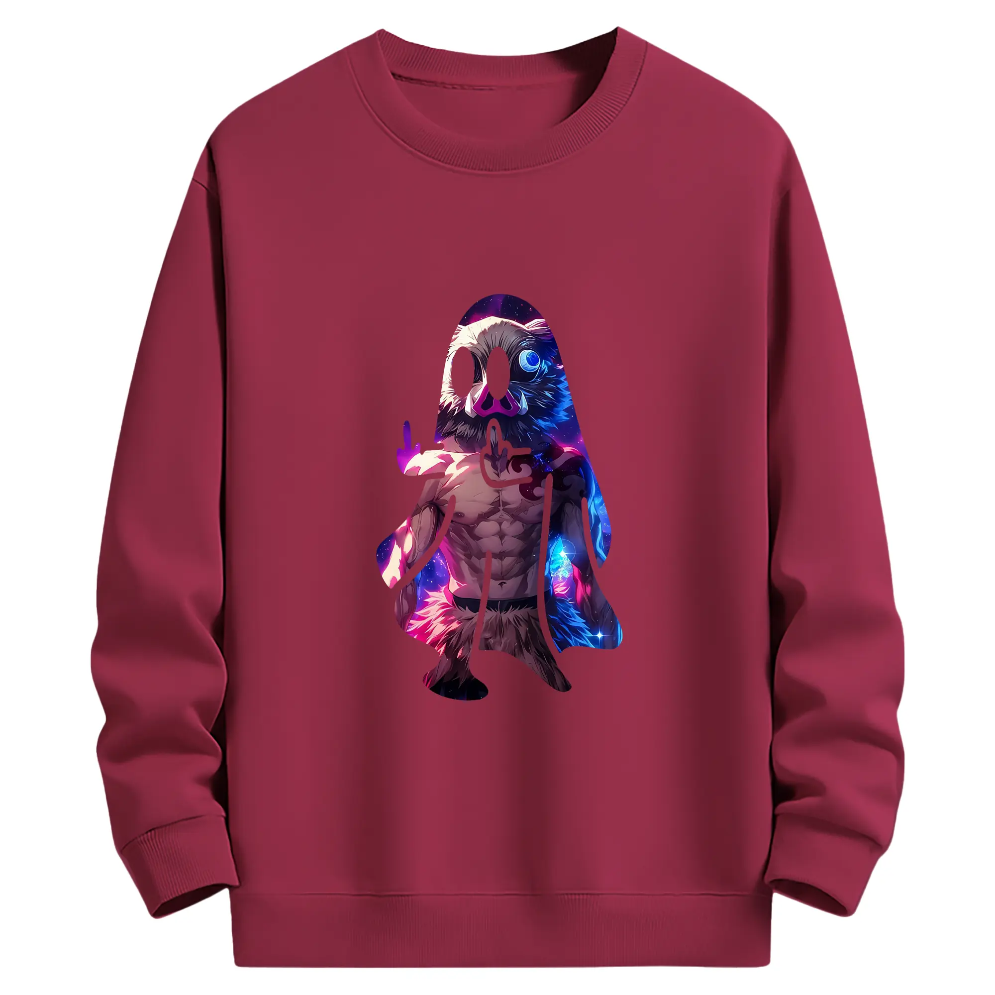 鬼滅の刃 グッズ,嘴平 伊之助 - 薄手 クルーネック スウェット 裏毛260g · ポリエステル 春秋向け カジュアル 男女兼用 · トレーナー デイリー スポーツ 散歩に最適