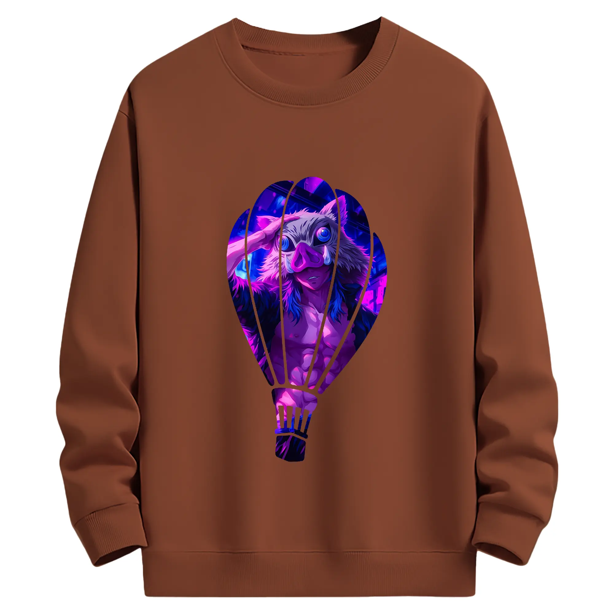 鬼滅の刃 グッズ,嘴平 伊之助 - 薄手 クルーネック スウェット 裏毛260g · ポリエステル 春秋向け カジュアル 男女兼用 · トレーナー デイリー スポーツ 散歩に最適