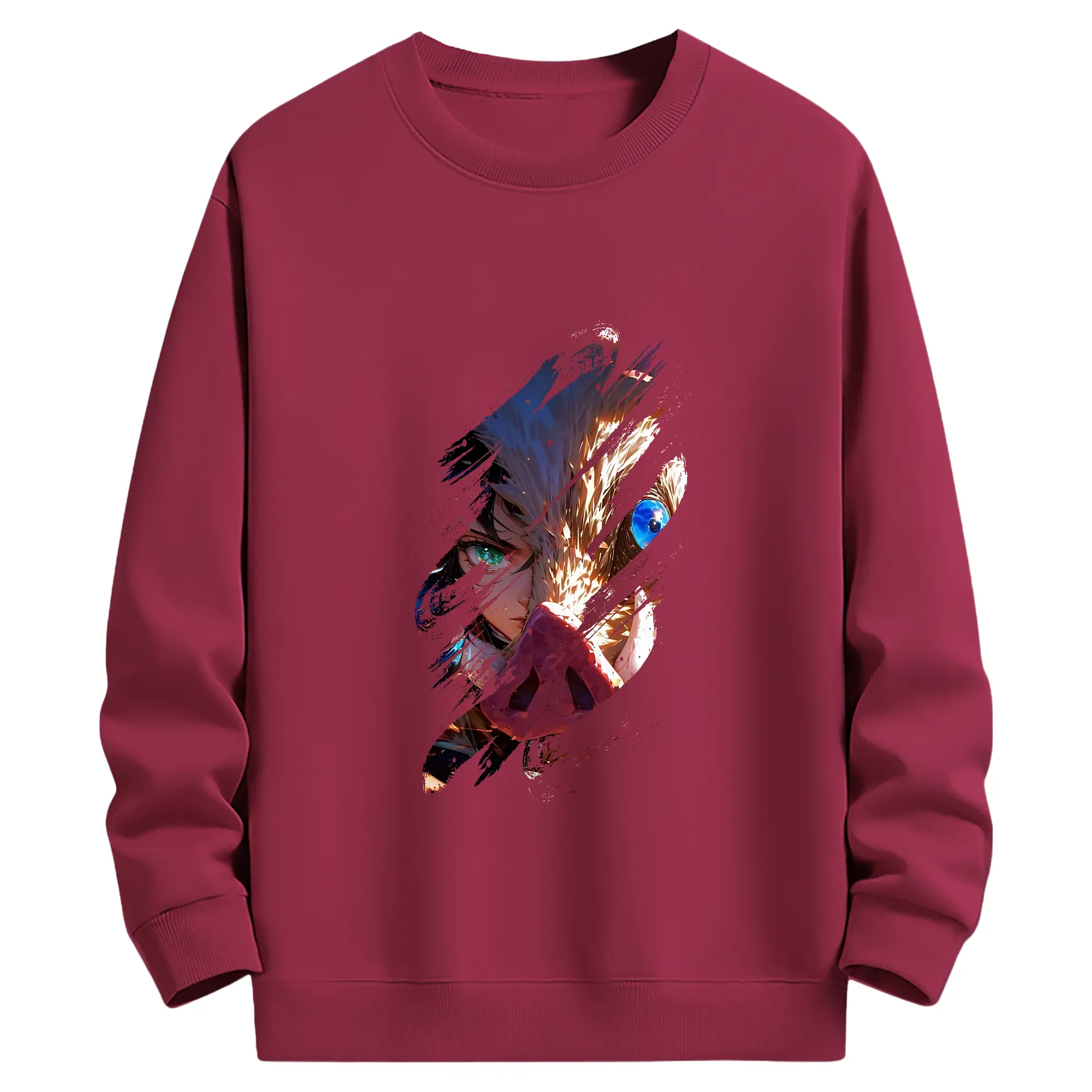 鬼滅の刃 グッズ,嘴平 伊之助 - 薄手 クルーネック スウェット 裏毛260g · ポリエステル 春秋向け カジュアル 男女兼用 · トレーナー デイリー スポーツ 散歩に最適