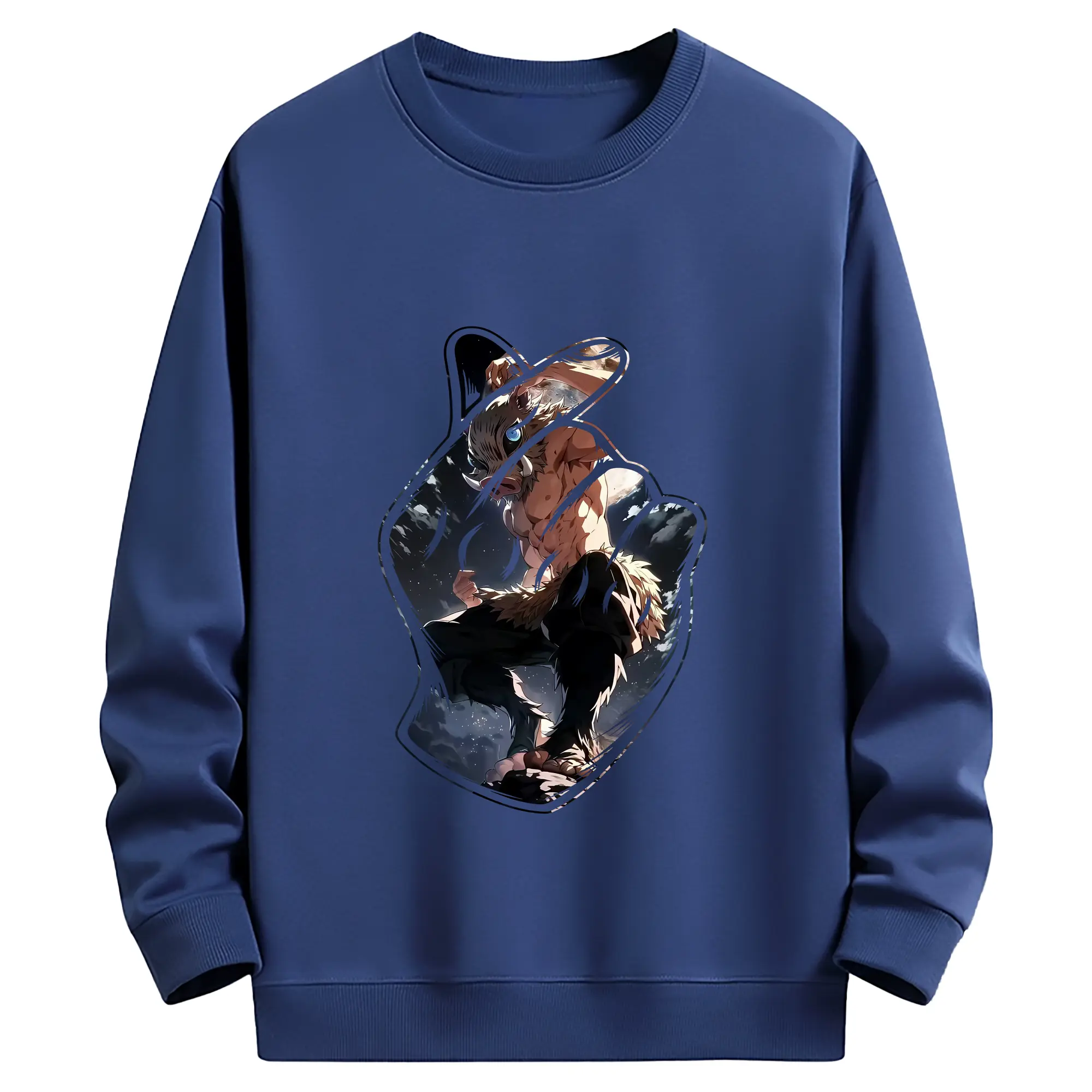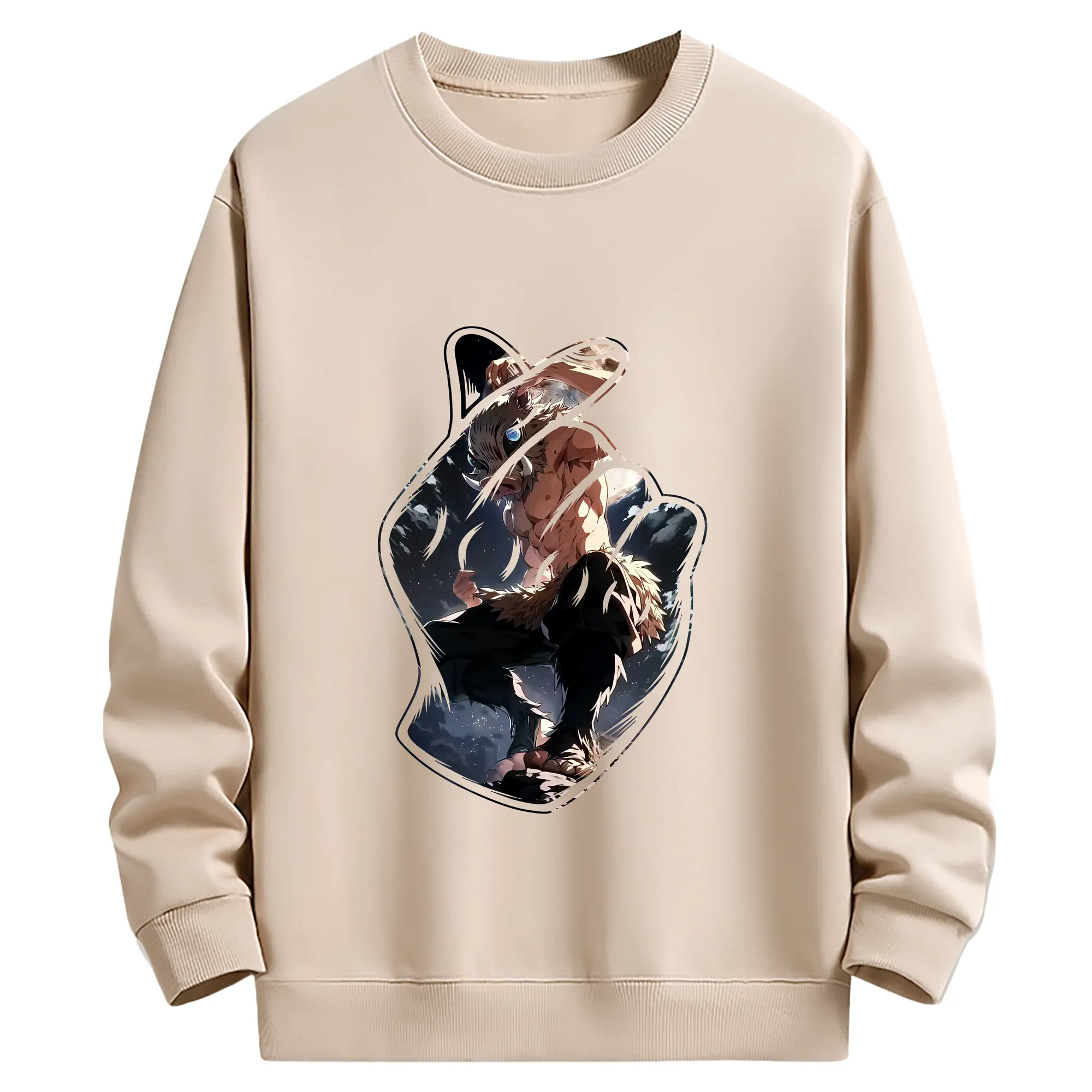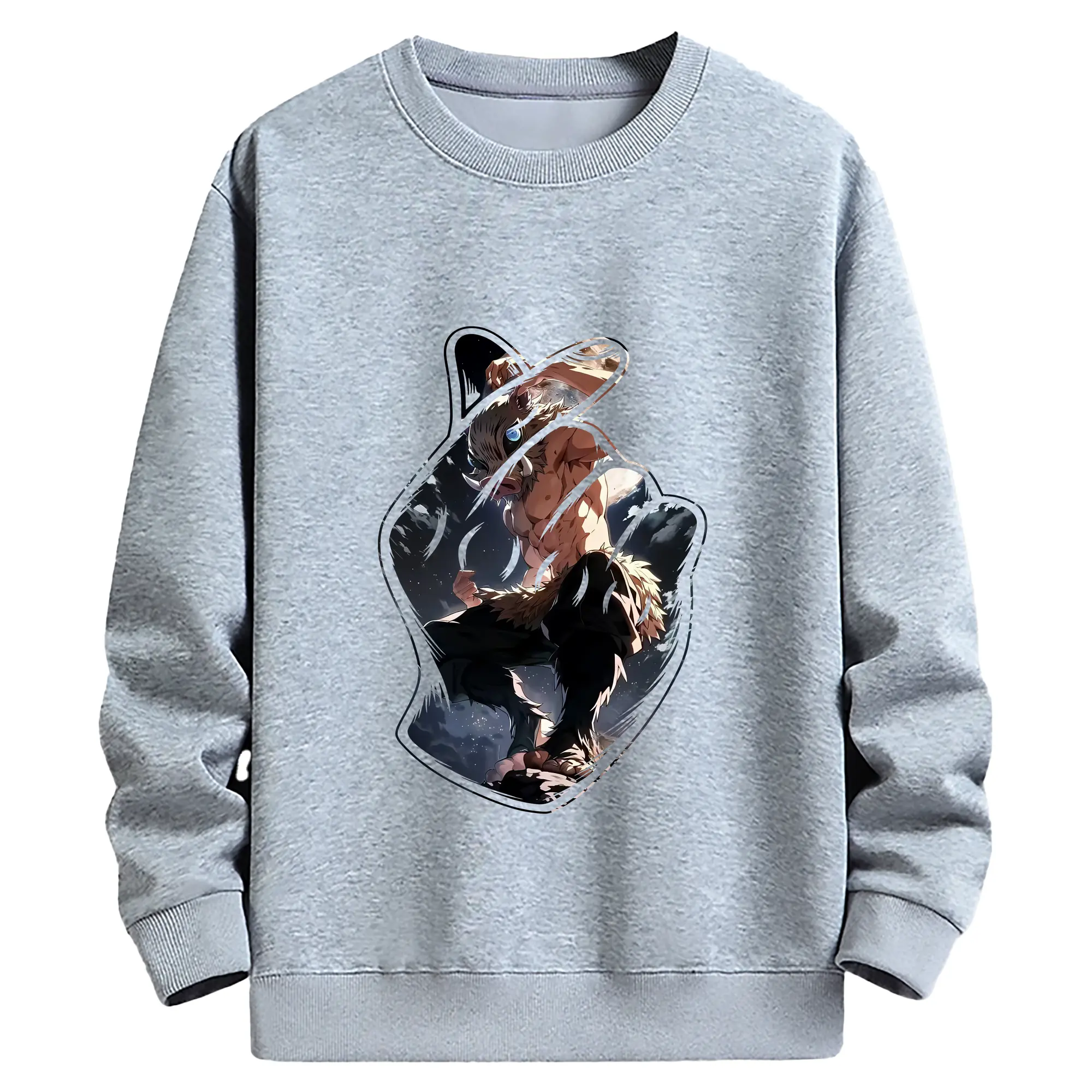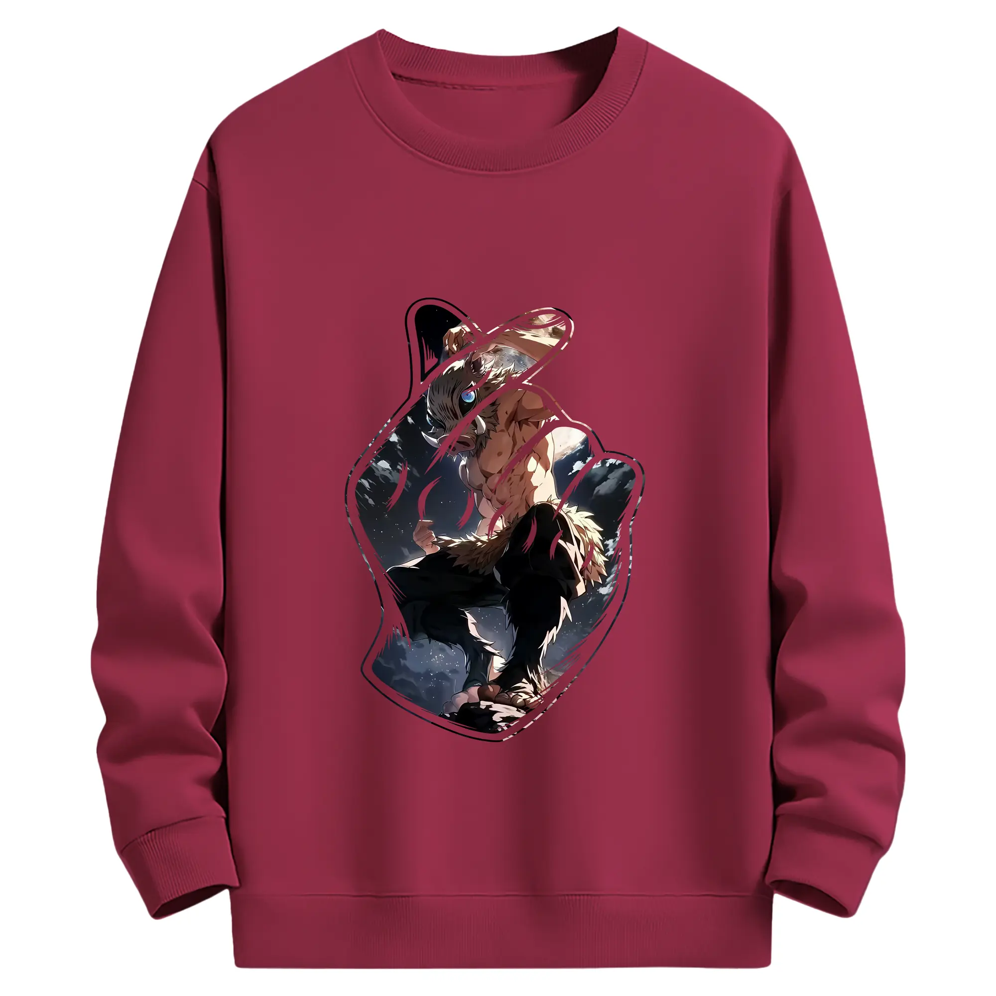 鬼滅の刃 グッズ,嘴平 伊之助 - 薄手 クルーネック スウェット 裏毛260g · ポリエステル 春秋向け カジュアル 男女兼用 · トレーナー デイリー スポーツ 散歩に最適