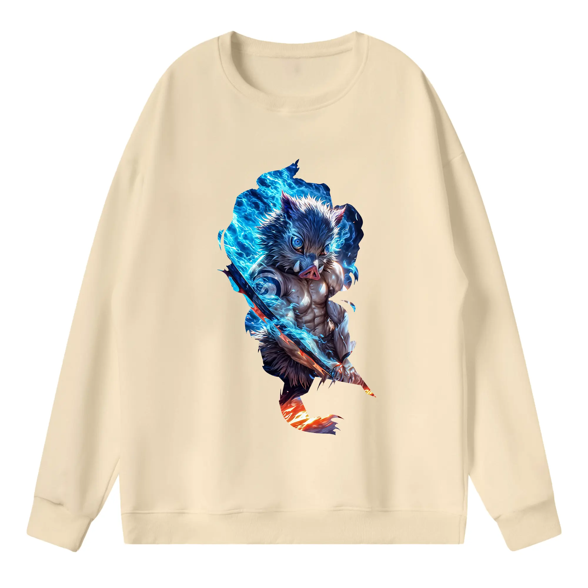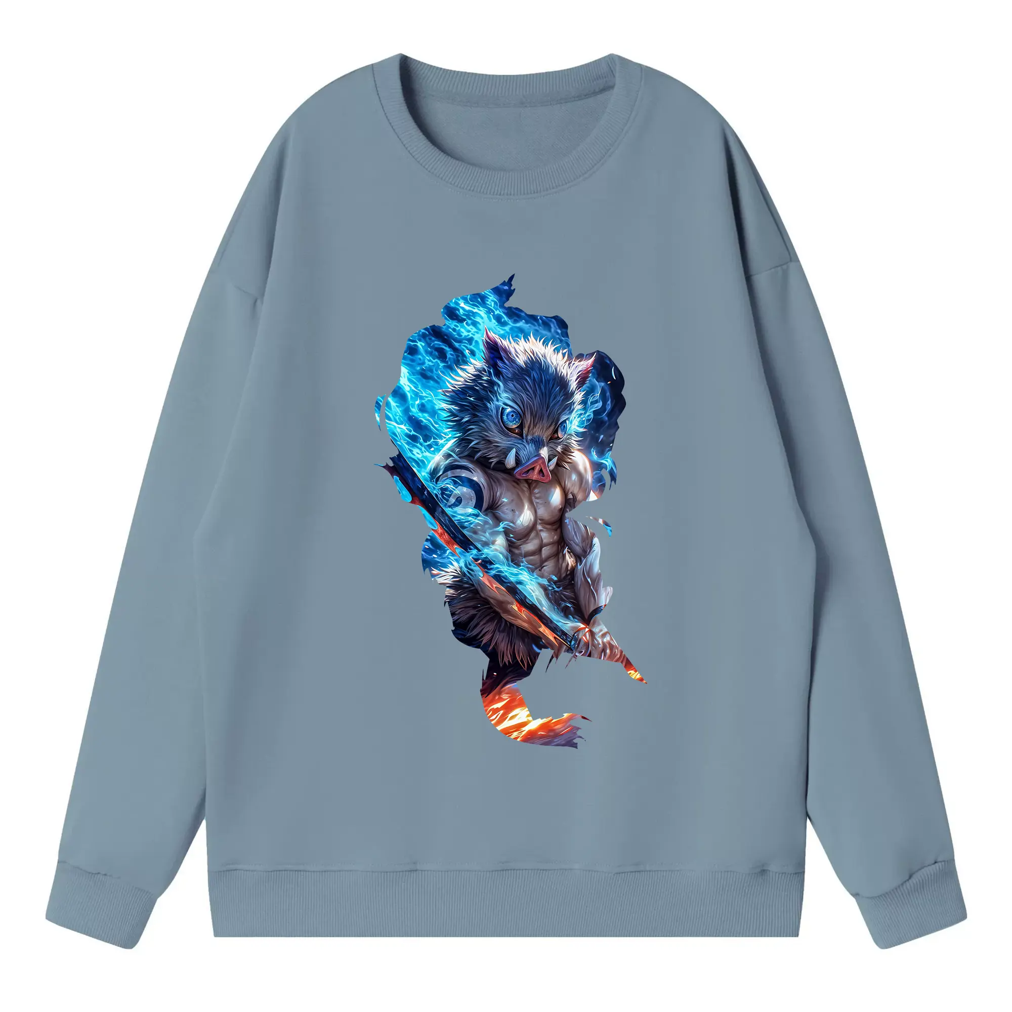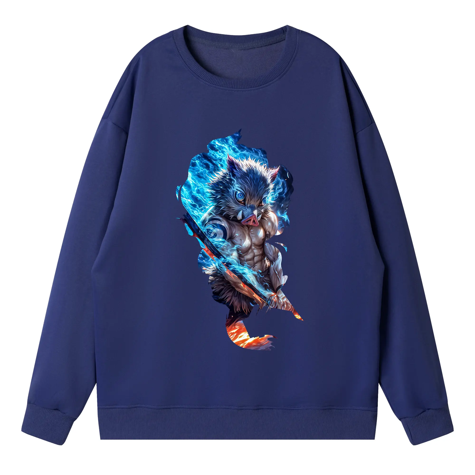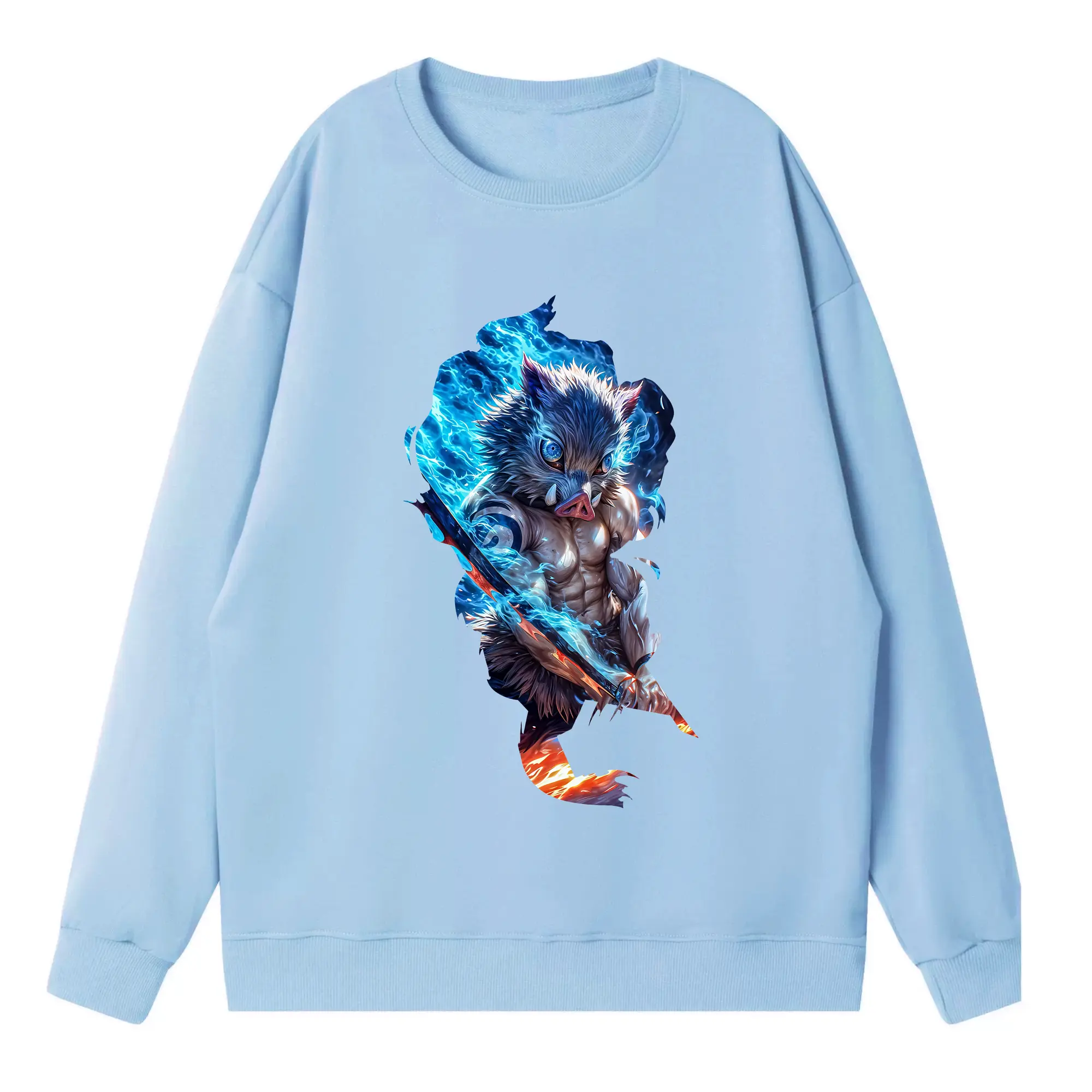 鬼滅の刃 グッズ,嘴平 伊之助 - 高品質 クルーネック スウェット ・ コットン59% ポリエステル41% ・ ユニセックス 長袖 トレーナー ・ カジュアル デイリー スポーツ 散歩用