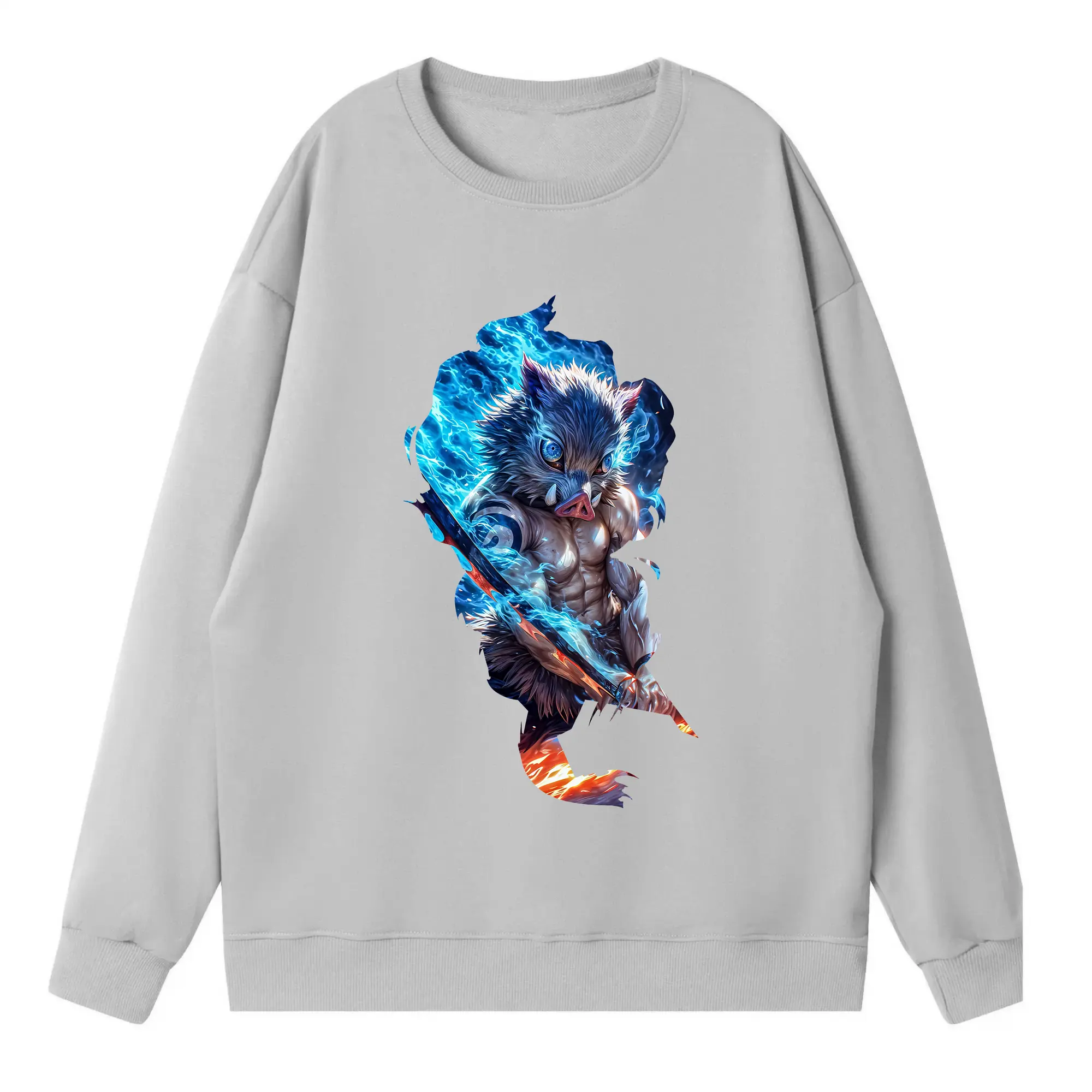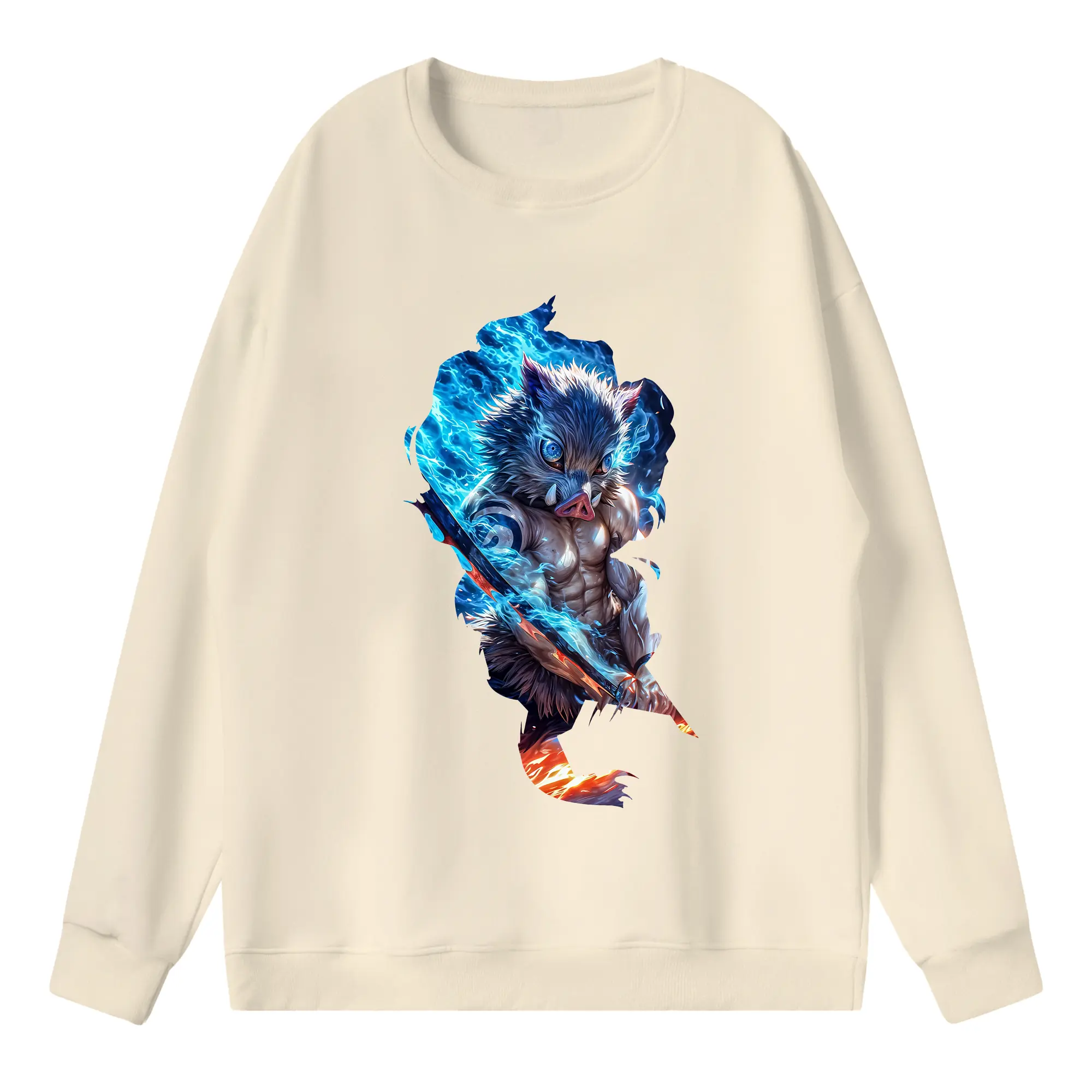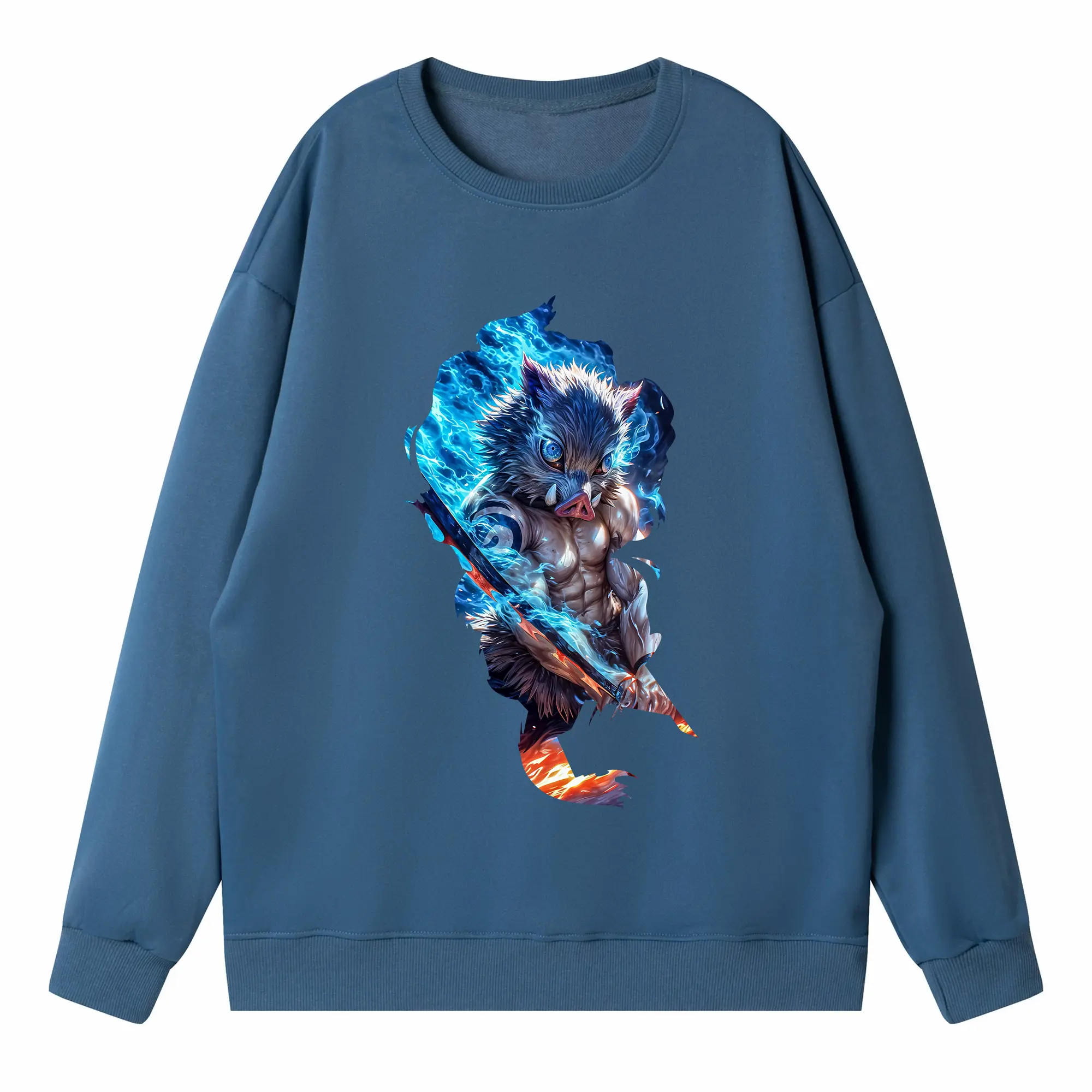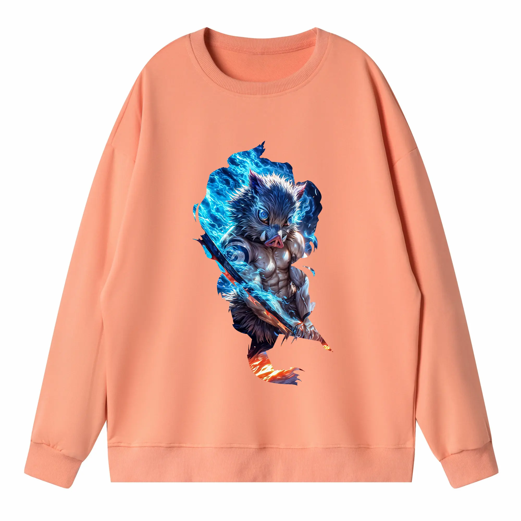 鬼滅の刃 グッズ,嘴平 伊之助 - 高品質 クルーネック スウェット ・ コットン59% ポリエステル41% ・ ユニセックス 長袖 トレーナー ・ カジュアル デイリー スポーツ 散歩用
