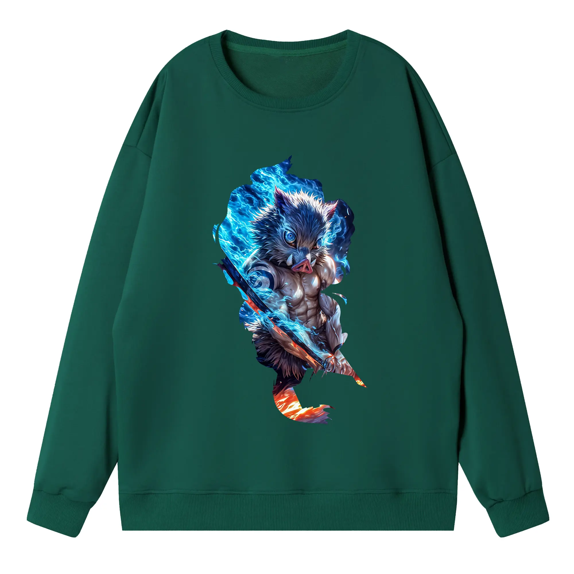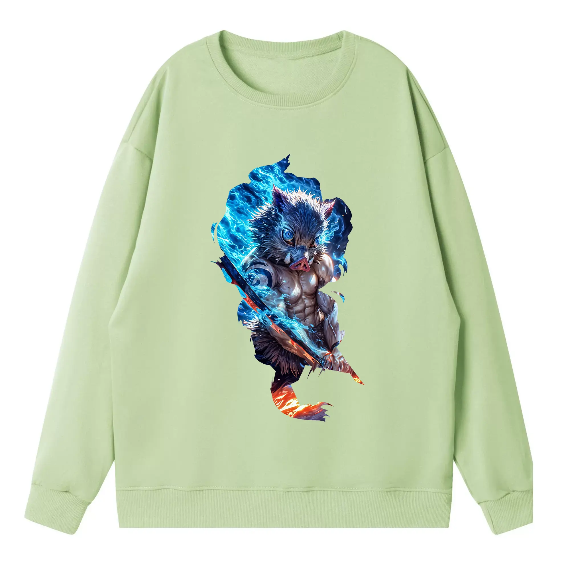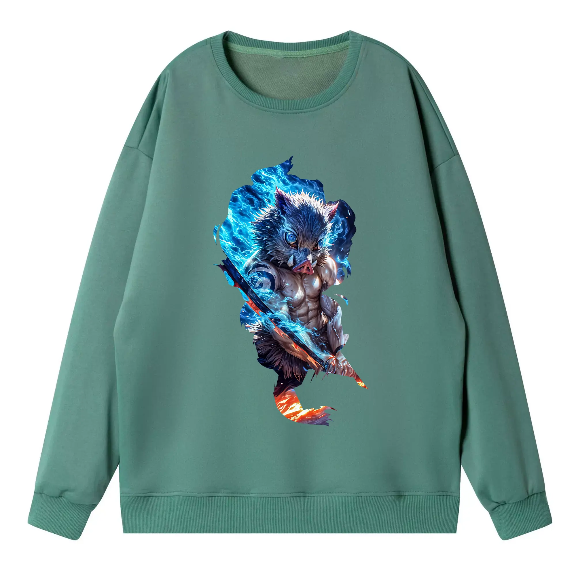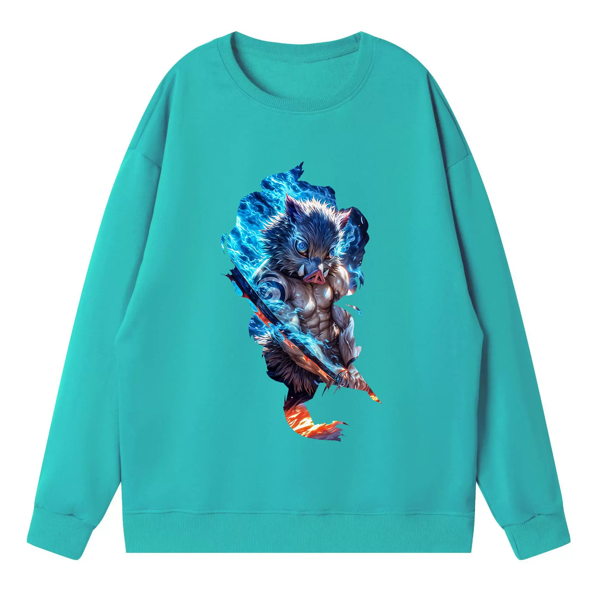 鬼滅の刃 グッズ,嘴平 伊之助 - 高品質 クルーネック スウェット ・ コットン59% ポリエステル41% ・ ユニセックス 長袖 トレーナー ・ カジュアル デイリー スポーツ 散歩用