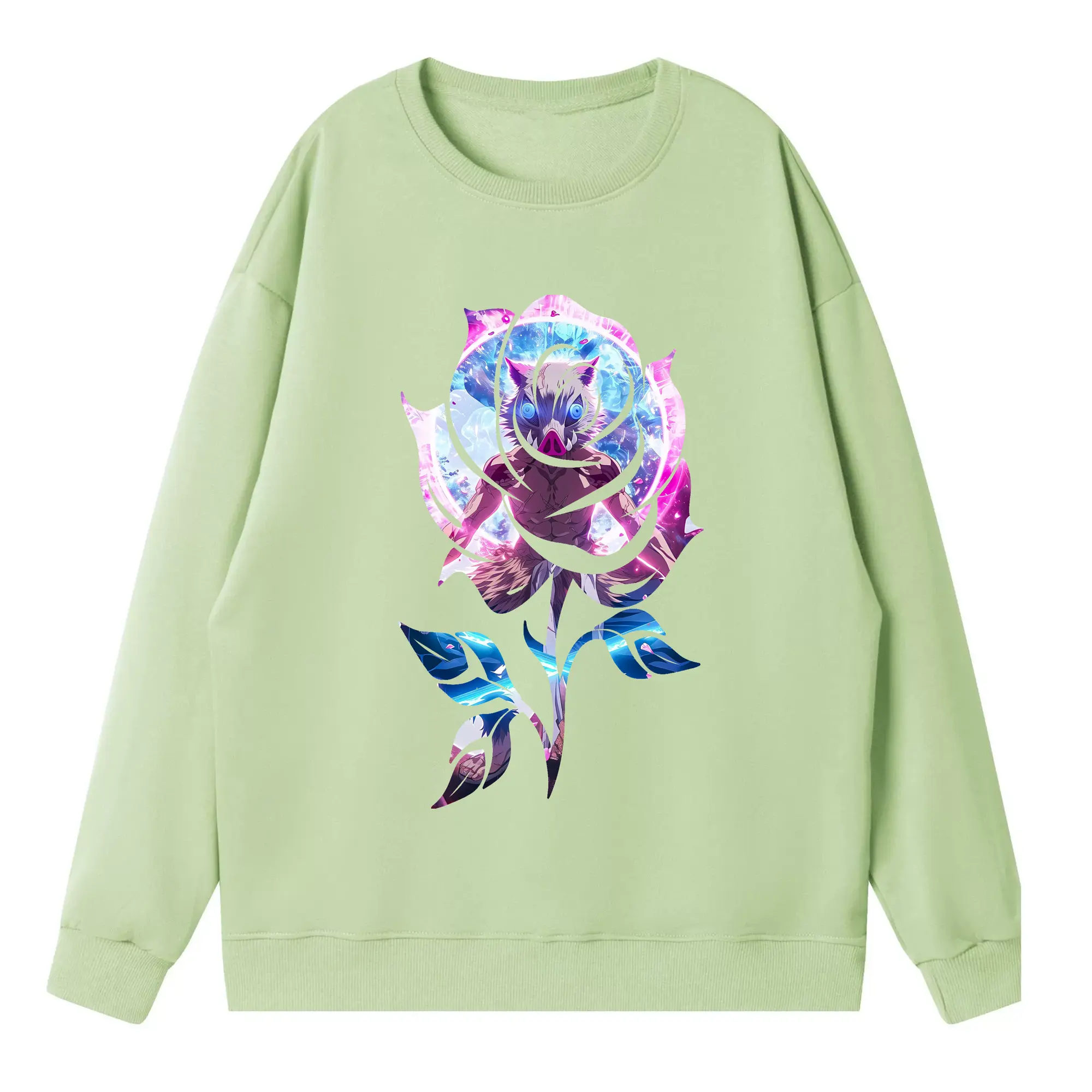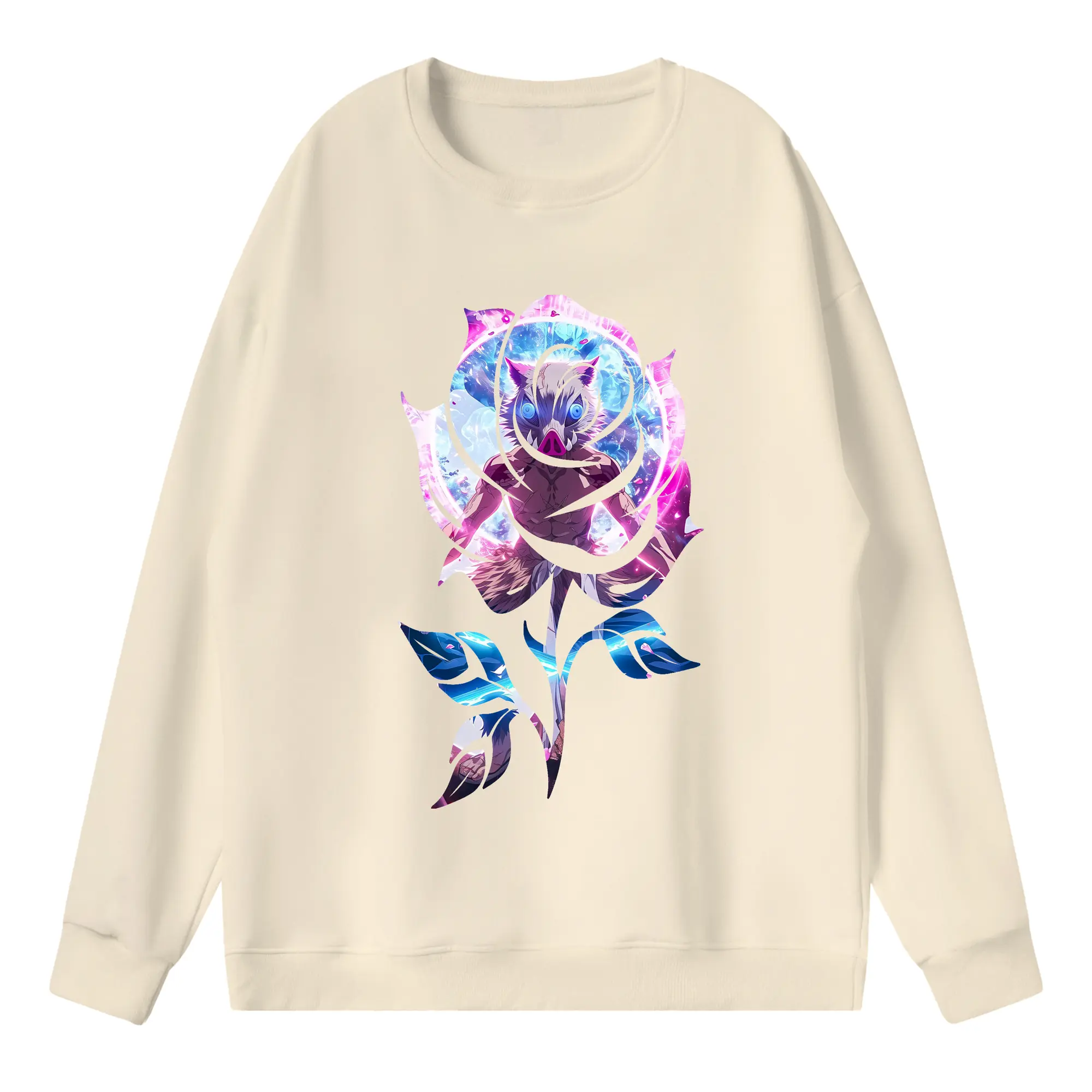 鬼滅の刃 グッズ,嘴平 伊之助 - 高品質 クルーネック スウェット ・ コットン59% ポリエステル41% ・ ユニセックス 長袖 トレーナー ・ カジュアル デイリー スポーツ 散歩用