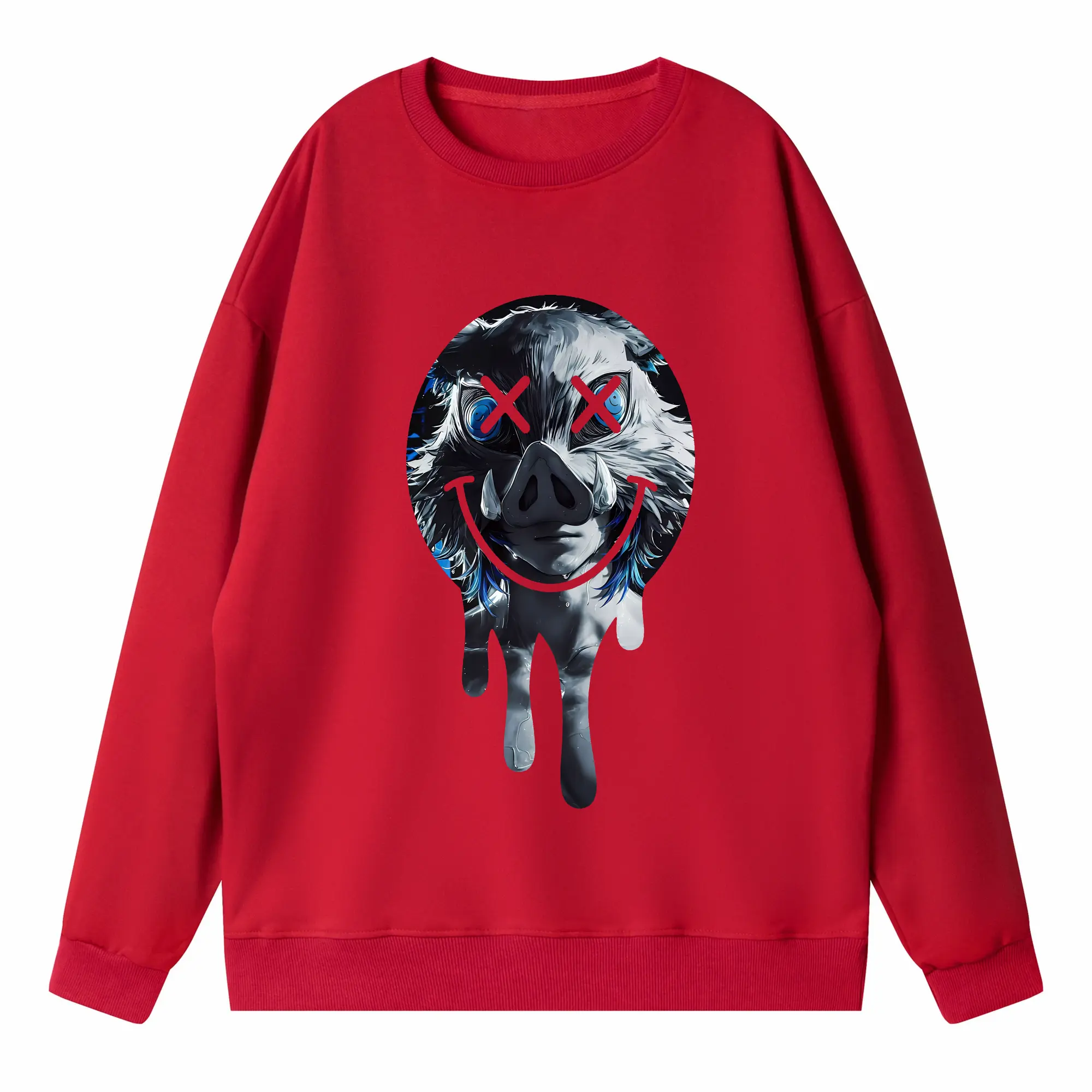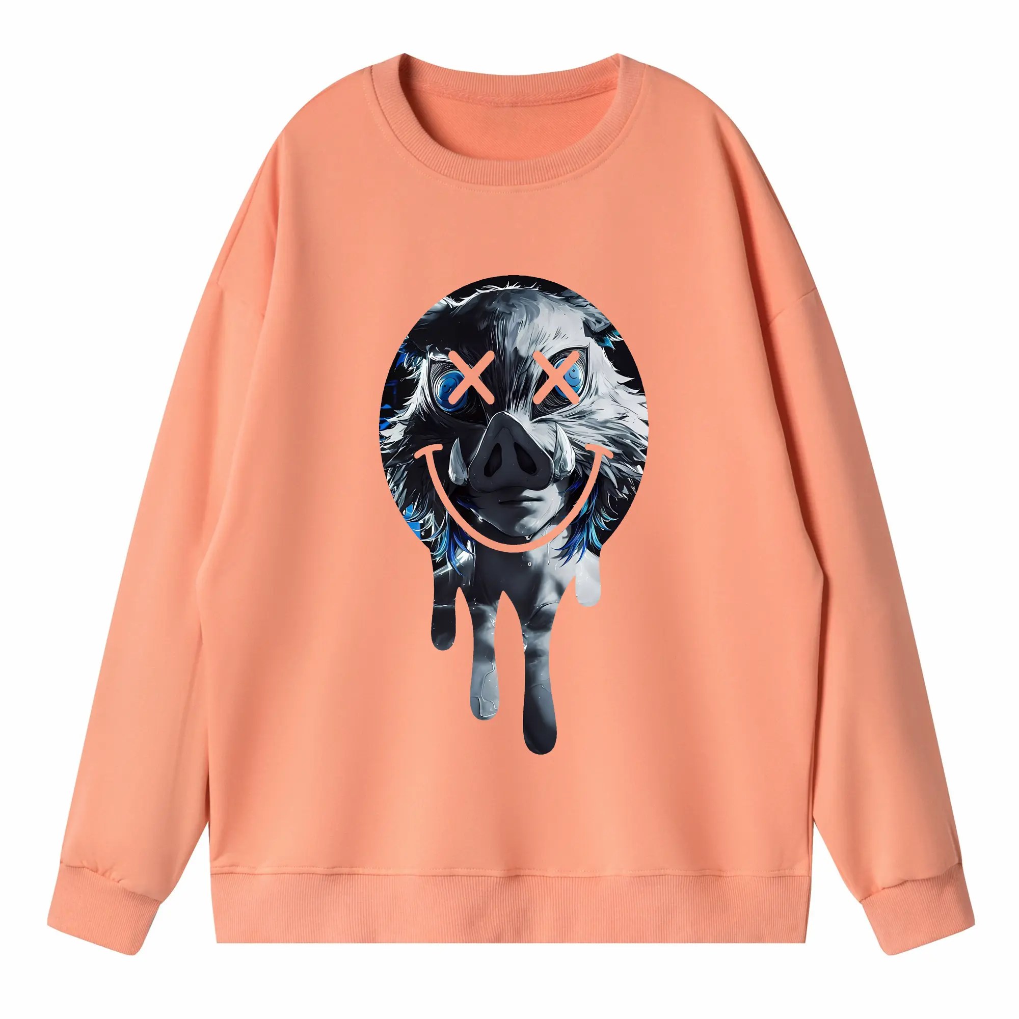 鬼滅の刃 グッズ,嘴平 伊之助 - 高品質 クルーネック スウェット ・ コットン59% ポリエステル41% ・ ユニセックス 長袖 トレーナー ・ カジュアル デイリー スポーツ 散歩用