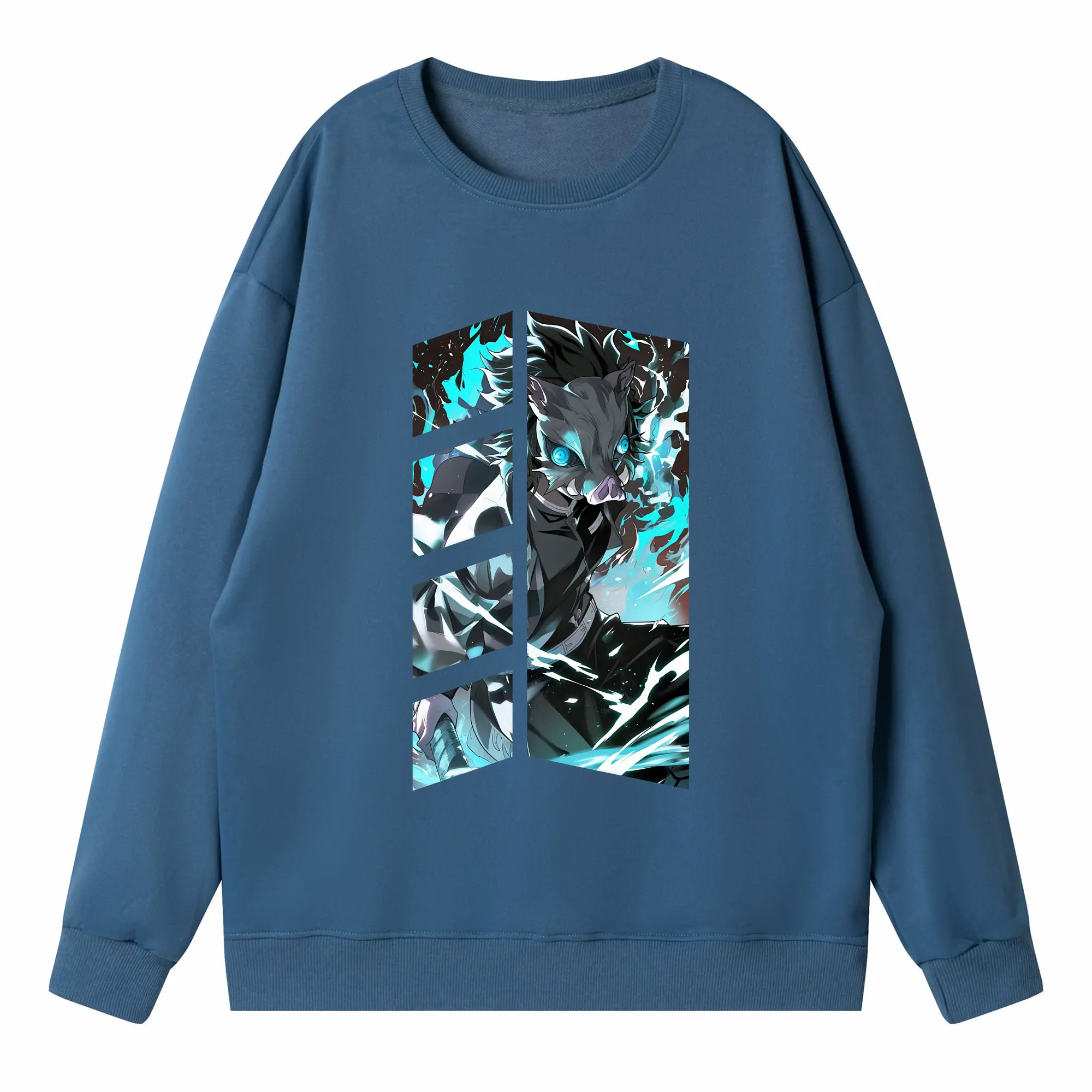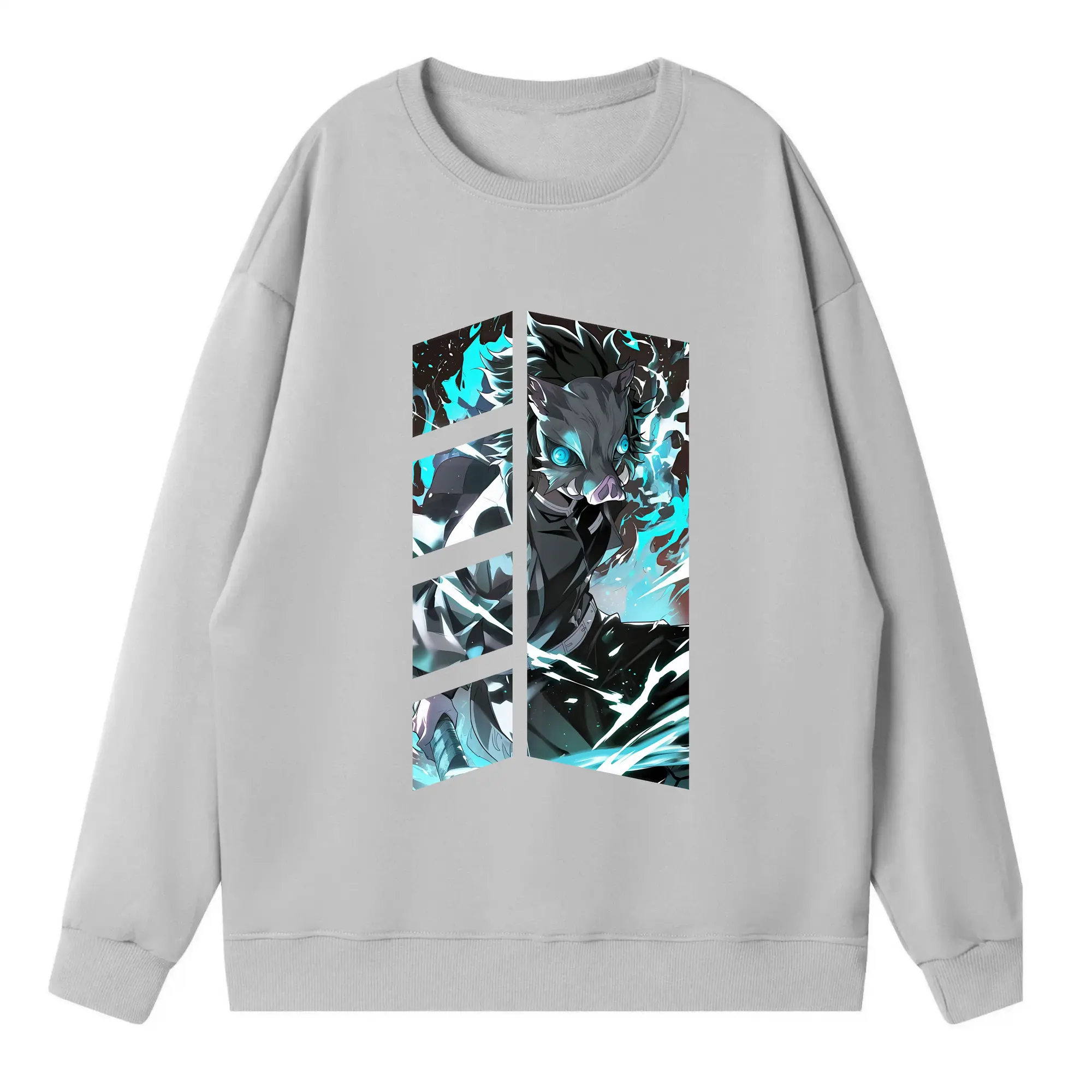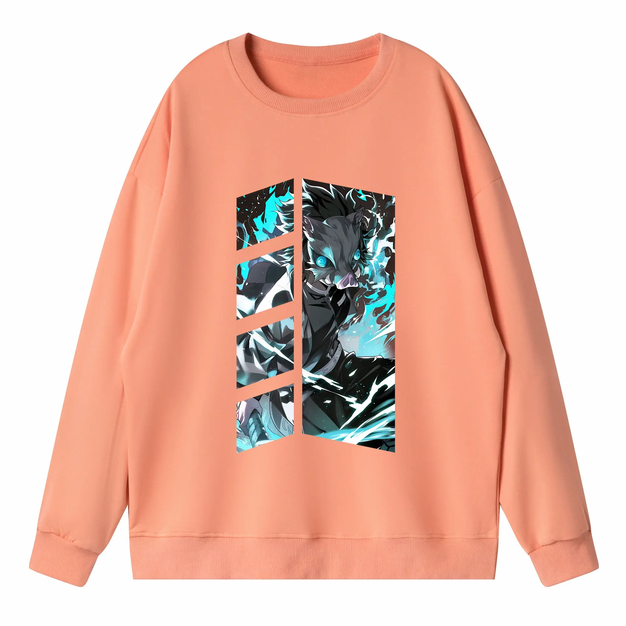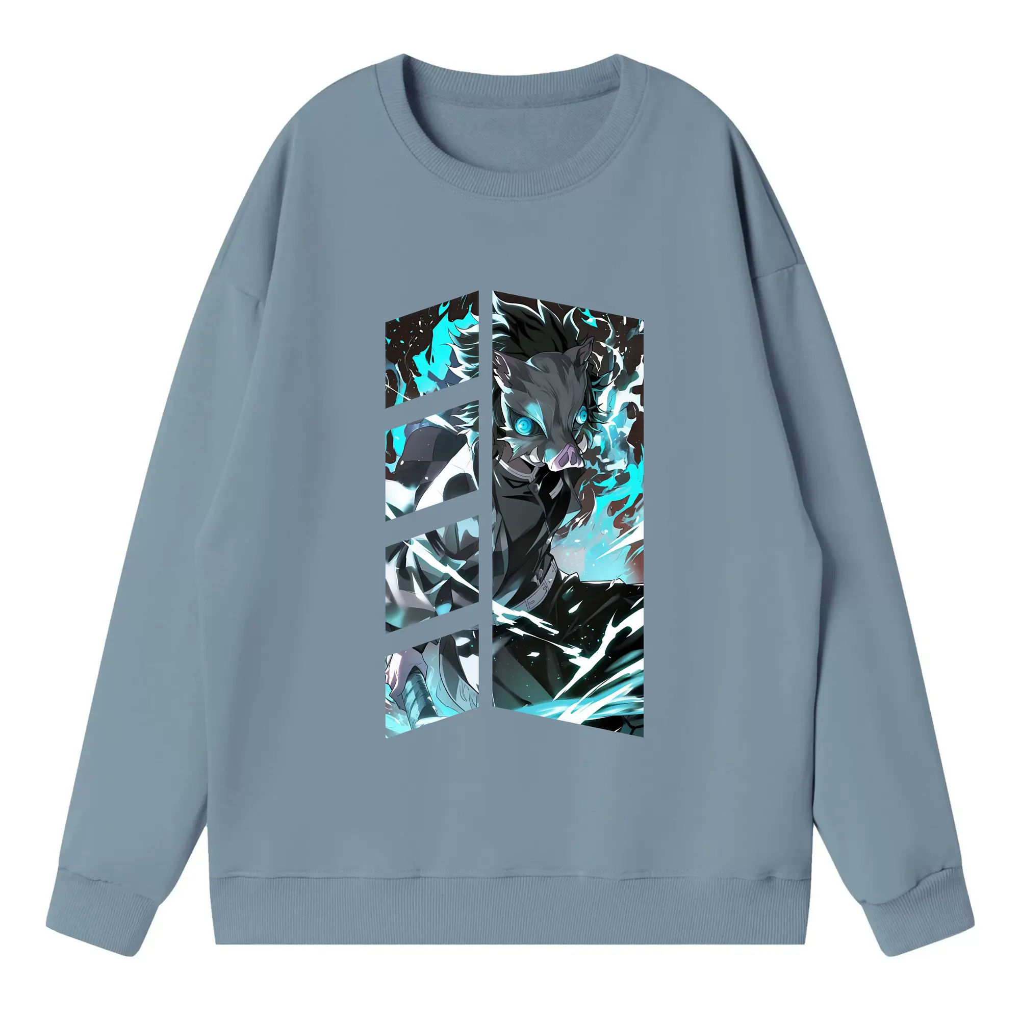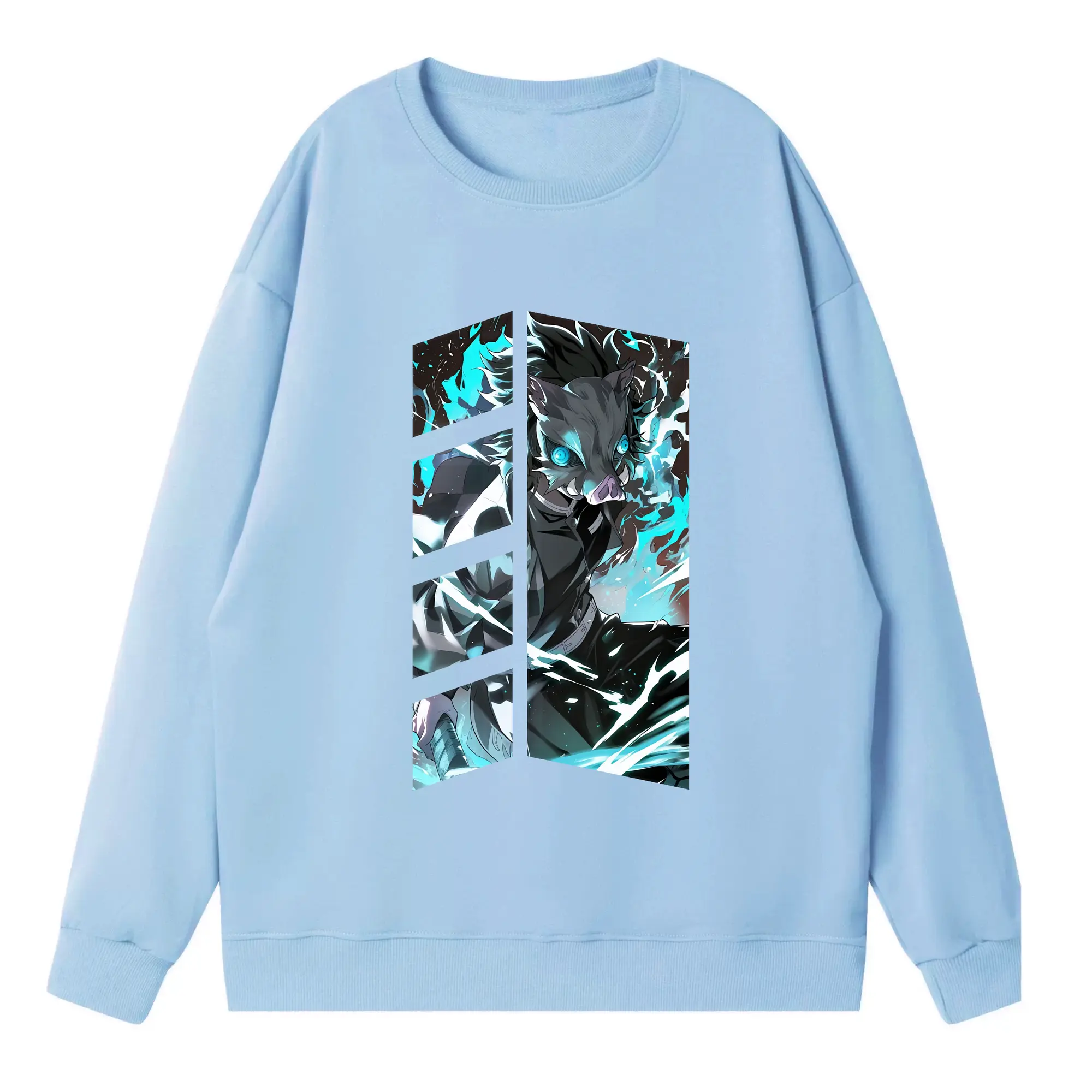 鬼滅の刃 グッズ,嘴平 伊之助 - 高品質 クルーネック スウェット ・ コットン59% ポリエステル41% ・ ユニセックス 長袖 トレーナー ・ カジュアル デイリー スポーツ 散歩用