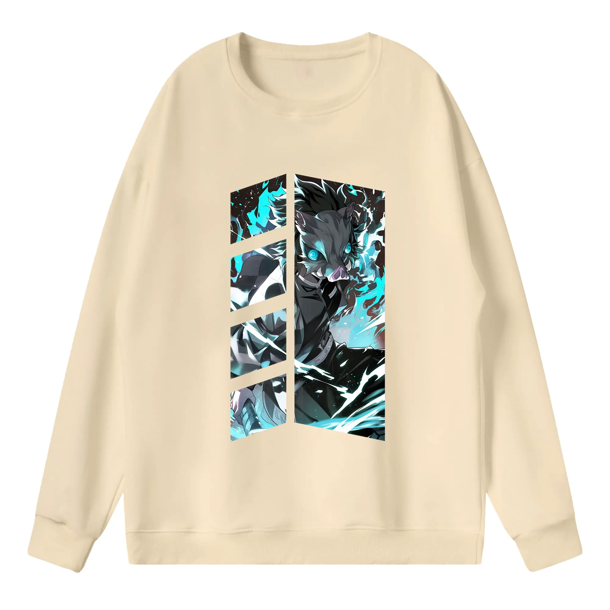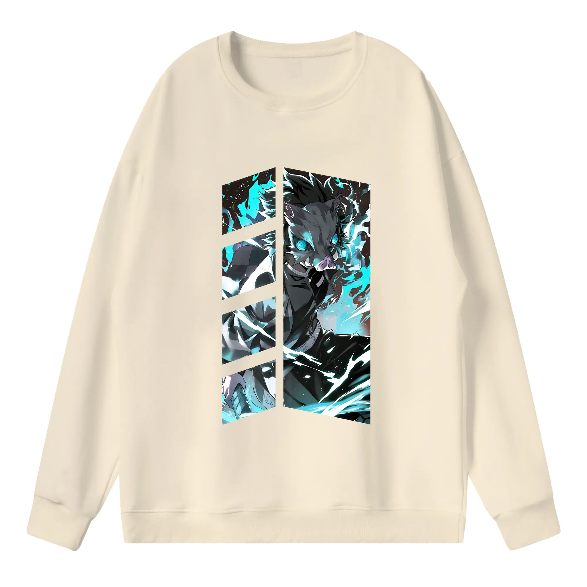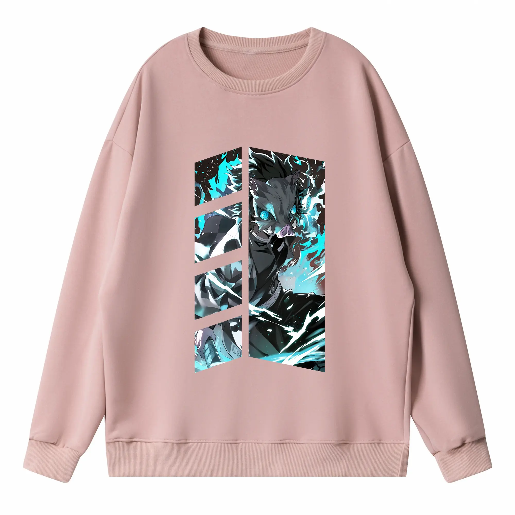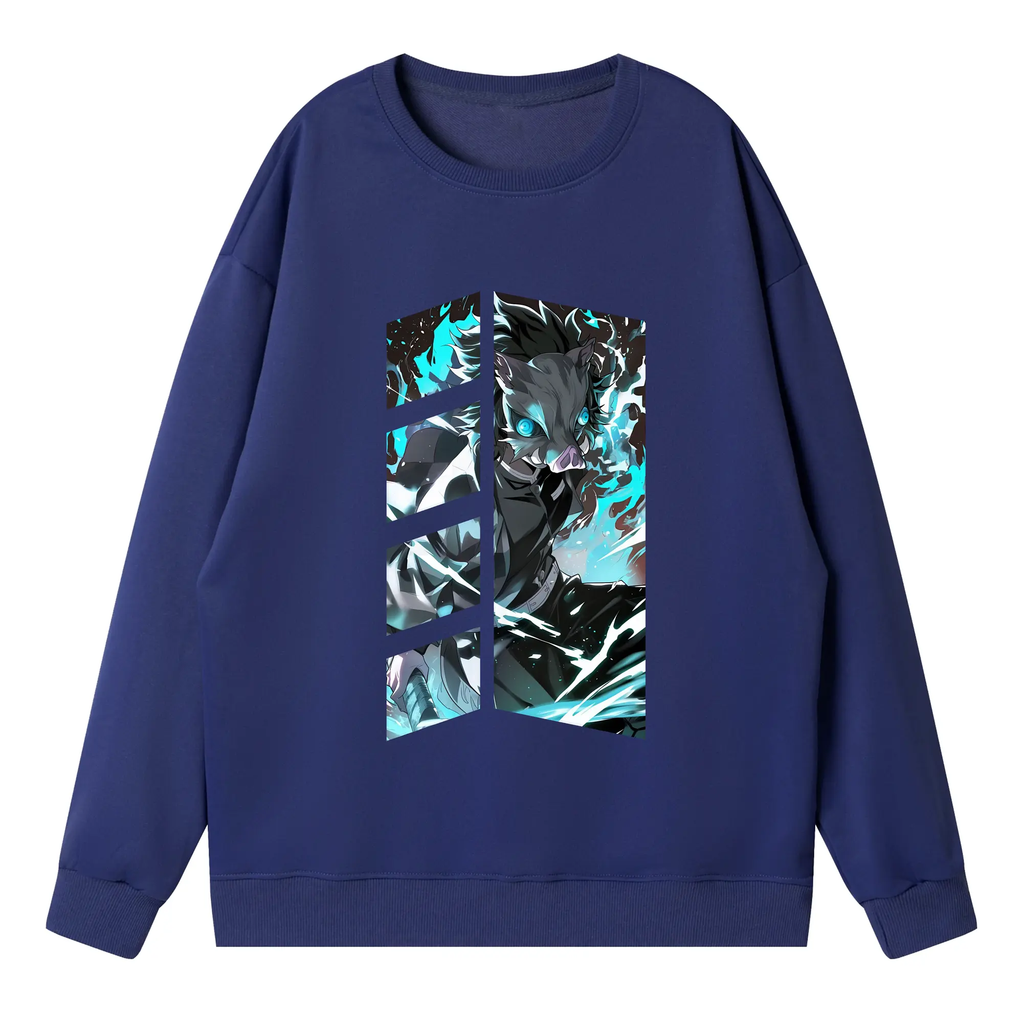 鬼滅の刃 グッズ,嘴平 伊之助 - 高品質 クルーネック スウェット ・ コットン59% ポリエステル41% ・ ユニセックス 長袖 トレーナー ・ カジュアル デイリー スポーツ 散歩用
