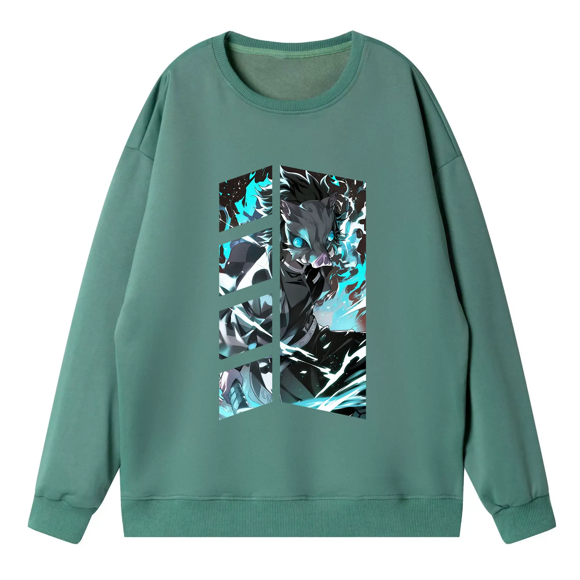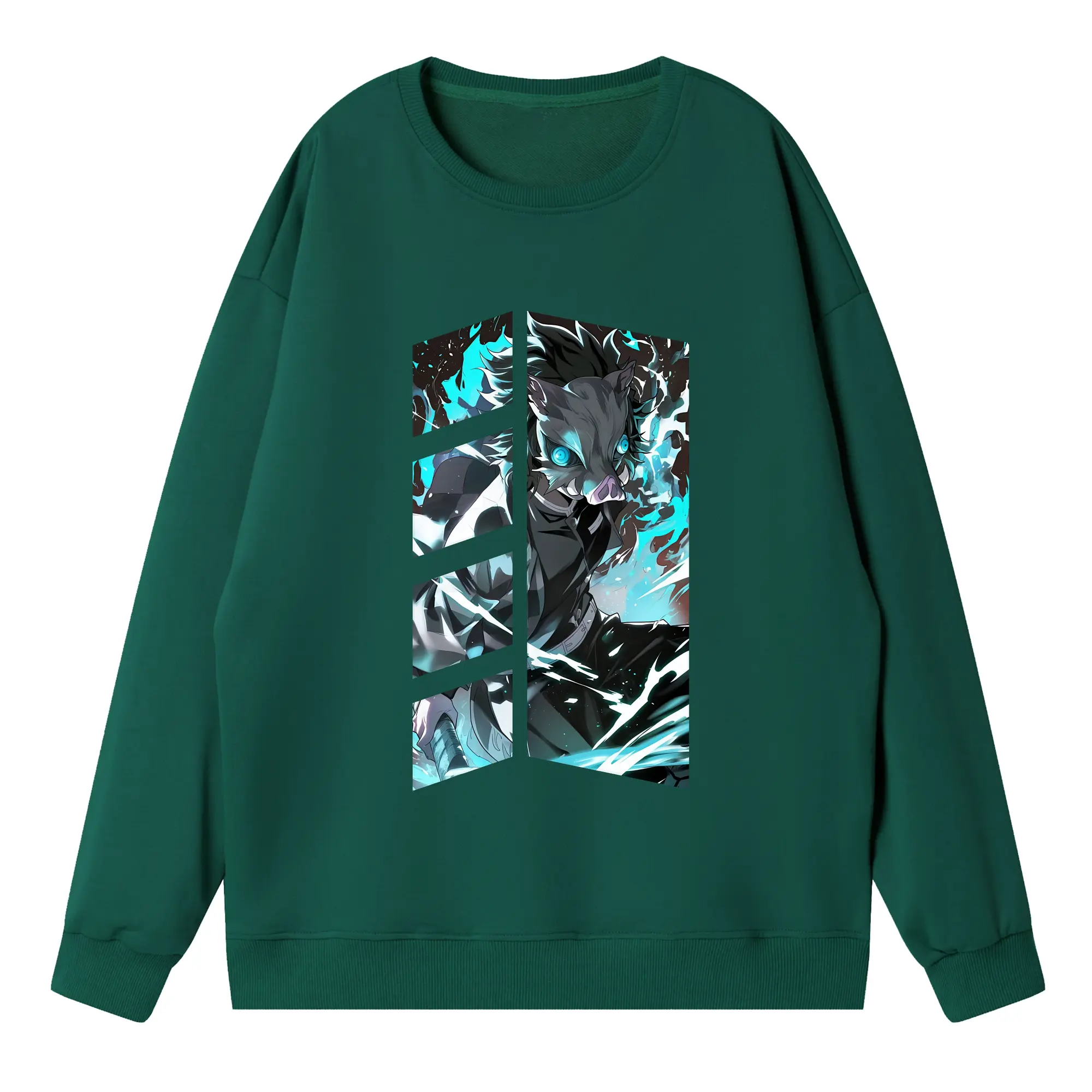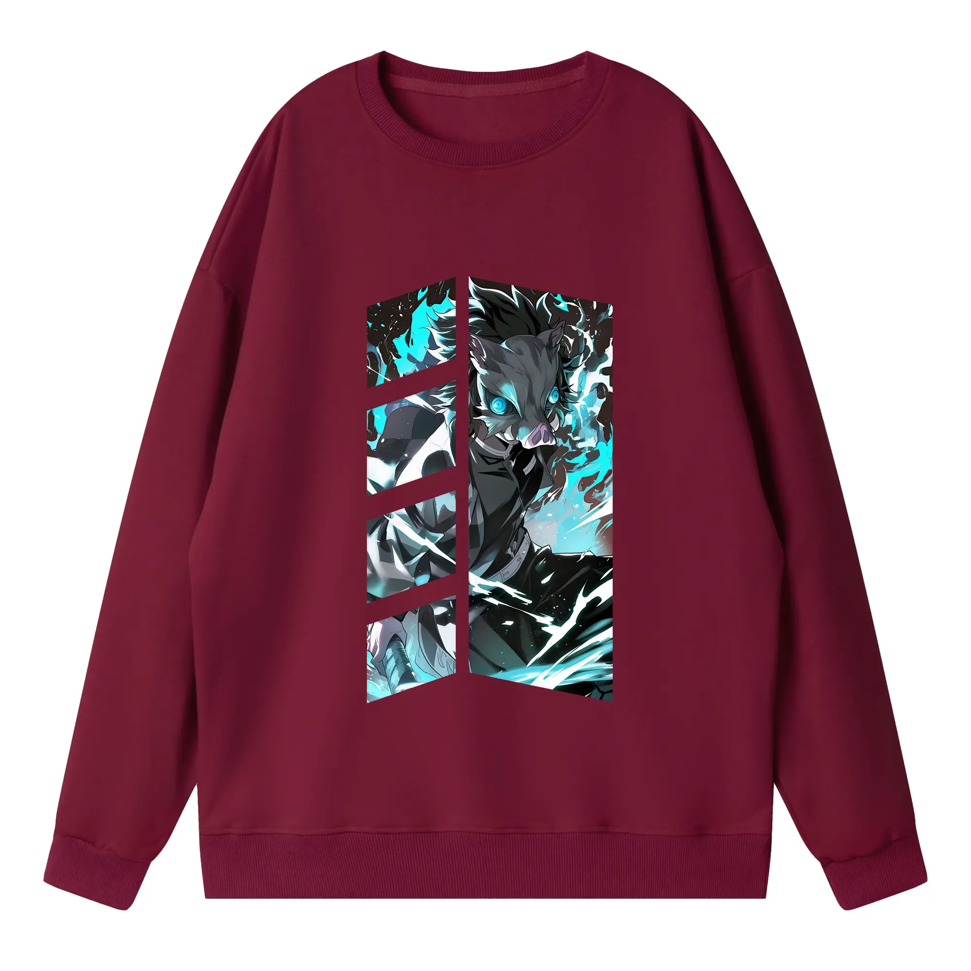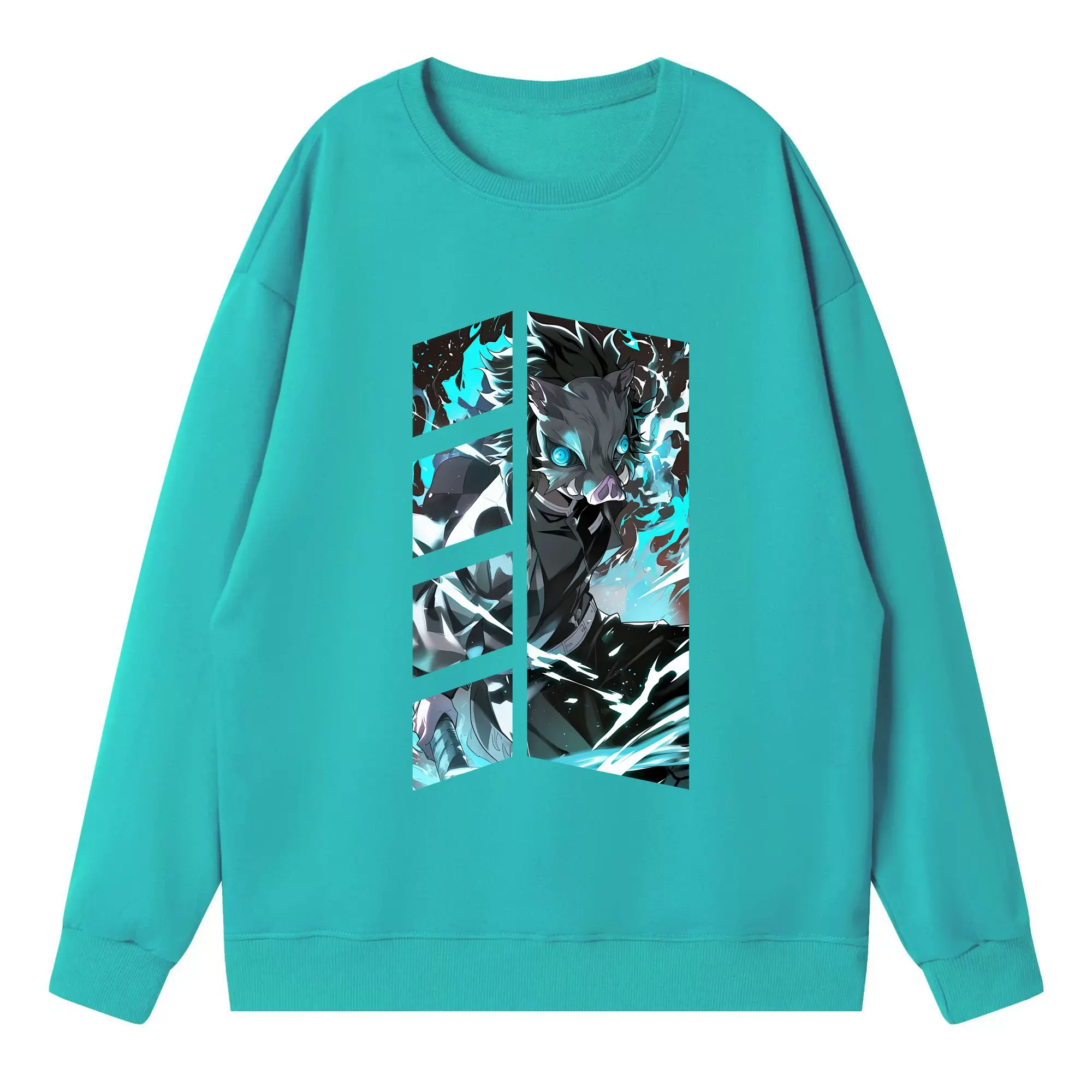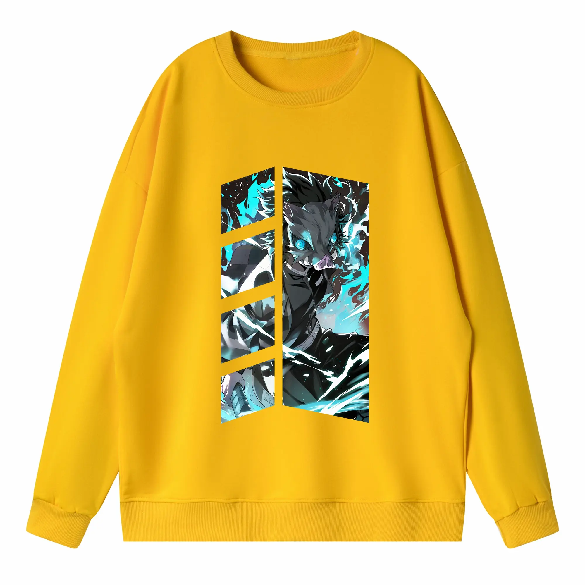鬼滅の刃 グッズ,嘴平 伊之助 - 高品質 クルーネック スウェット ・ コットン59% ポリエステル41% ・ ユニセックス 長袖 トレーナー ・ カジュアル デイリー スポーツ 散歩用