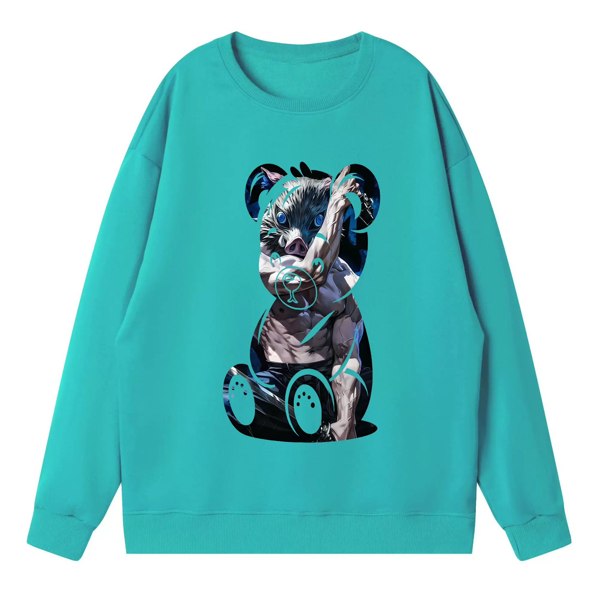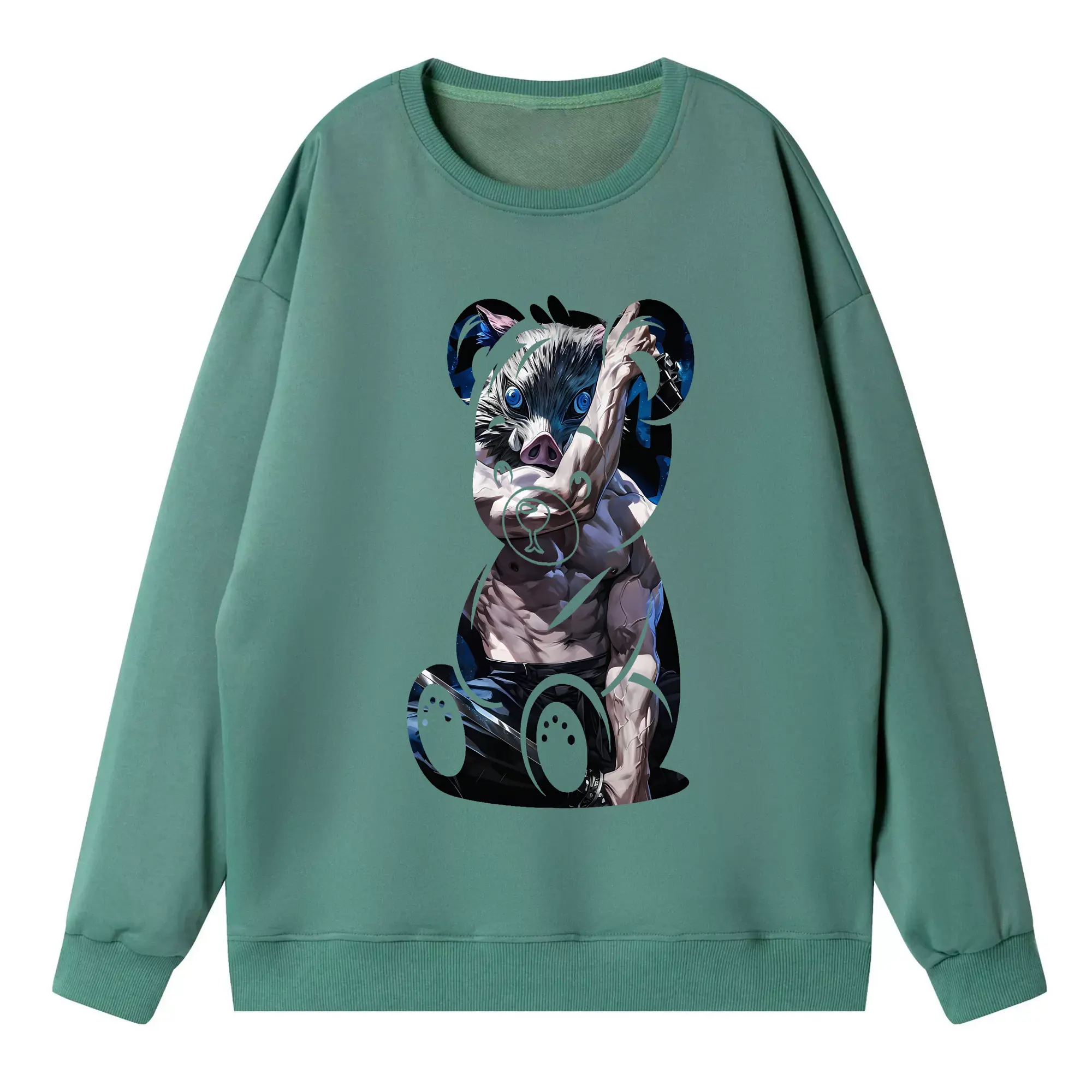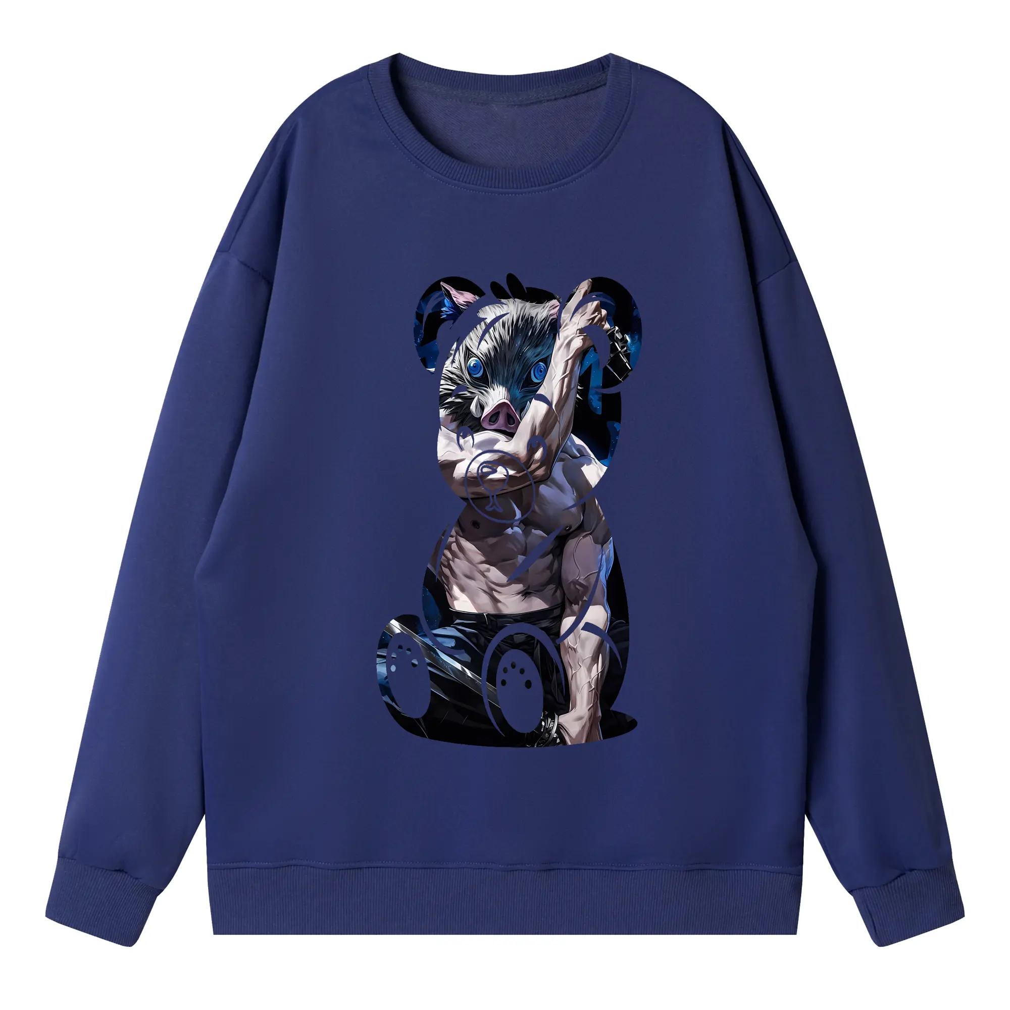 鬼滅の刃 グッズ,嘴平 伊之助 - 高品質 クルーネック スウェット ・ コットン59% ポリエステル41% ・ ユニセックス 長袖 トレーナー ・ カジュアル デイリー スポーツ 散歩用