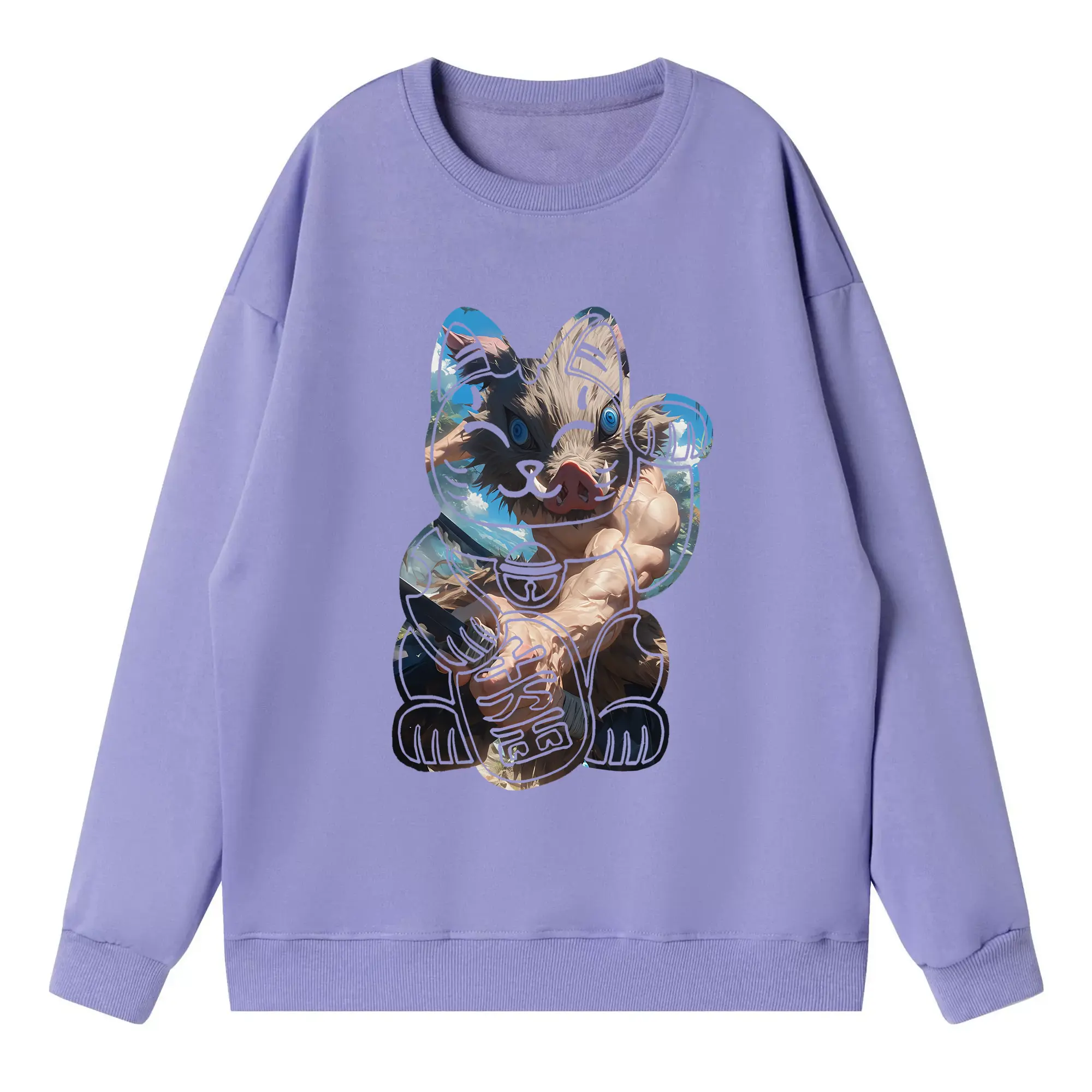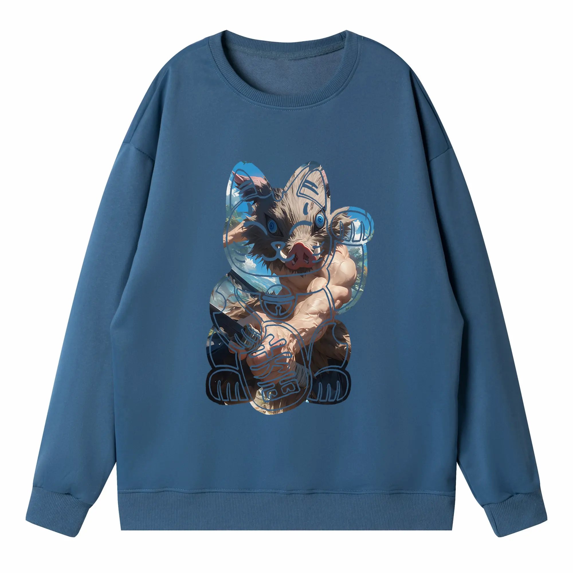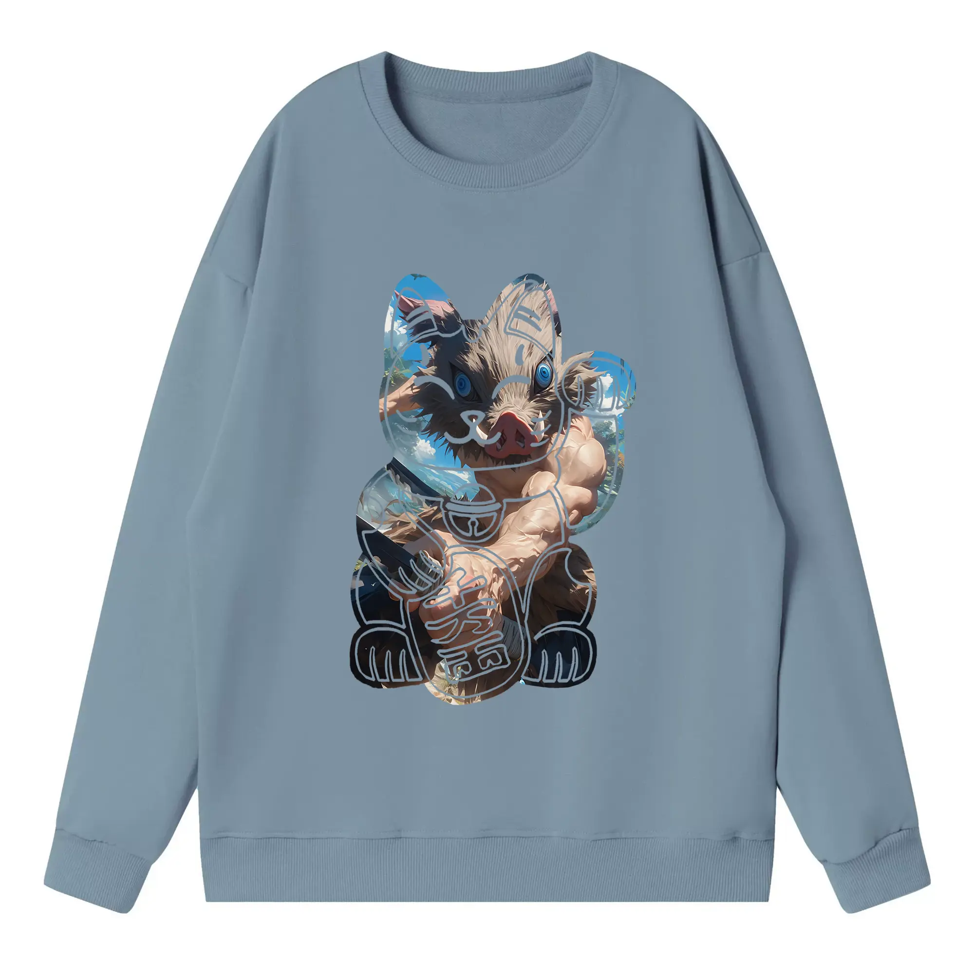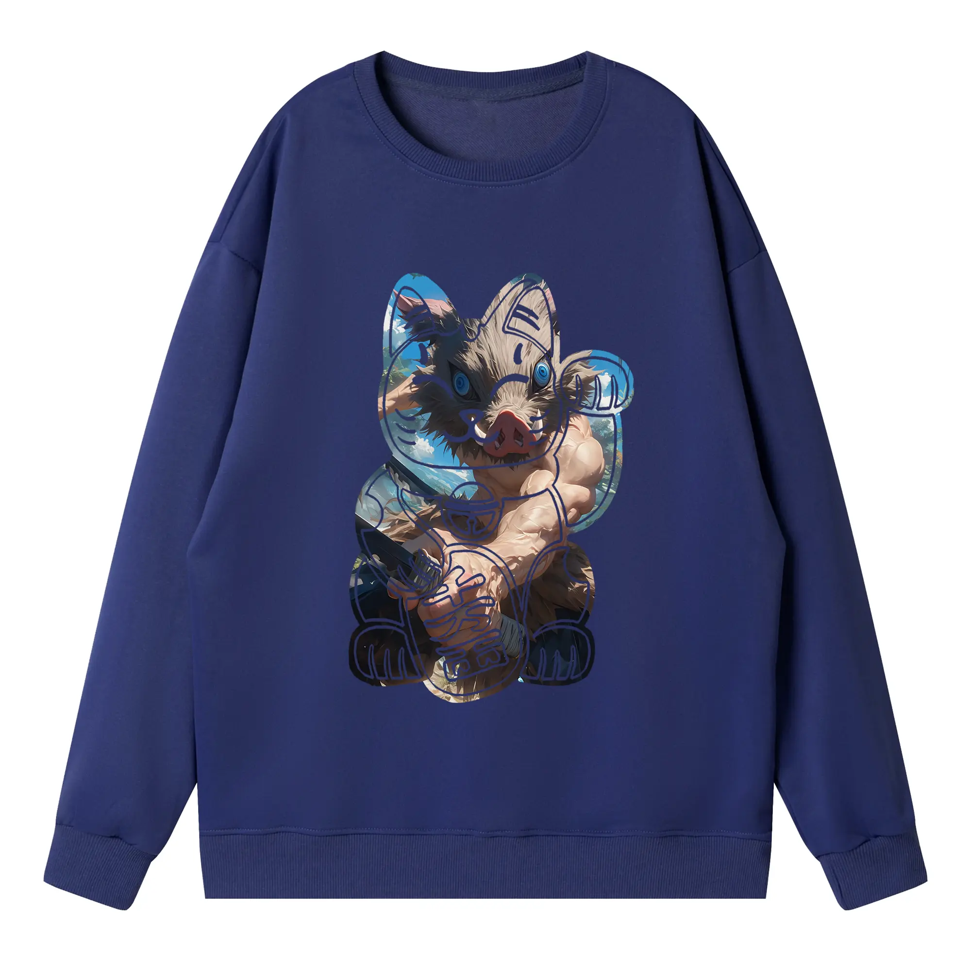 鬼滅の刃 グッズ,嘴平 伊之助 - 高品質 クルーネック スウェット ・ コットン59% ポリエステル41% ・ ユニセックス 長袖 トレーナー ・ カジュアル デイリー スポーツ 散歩用