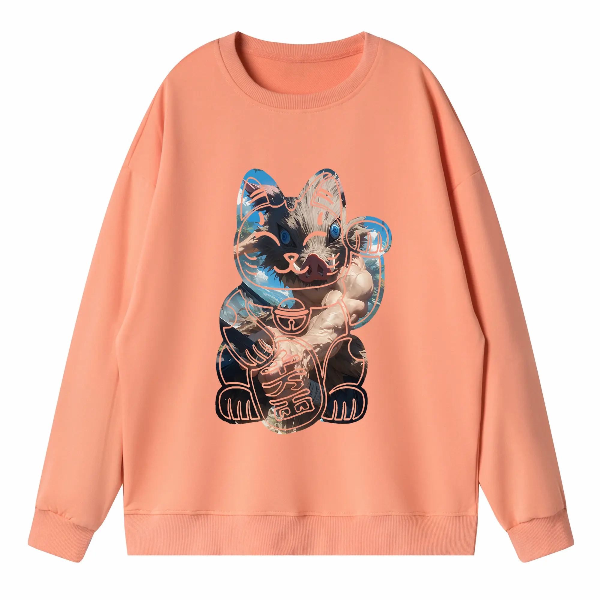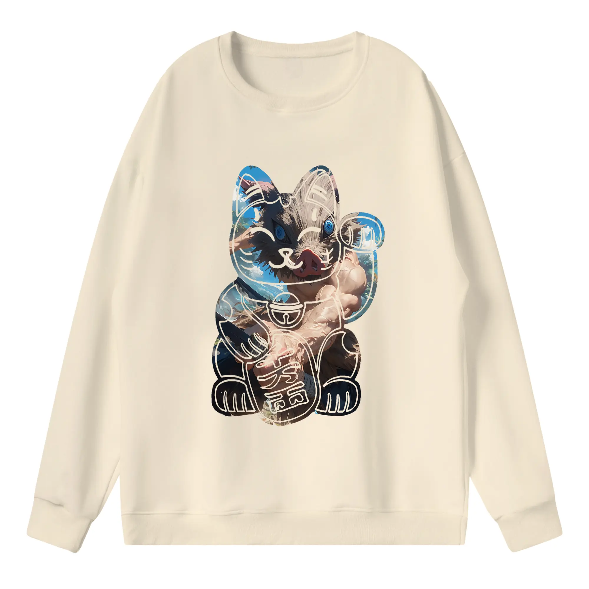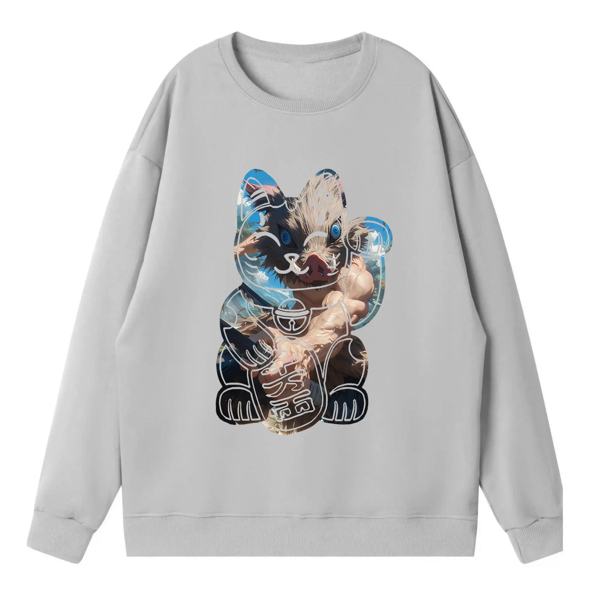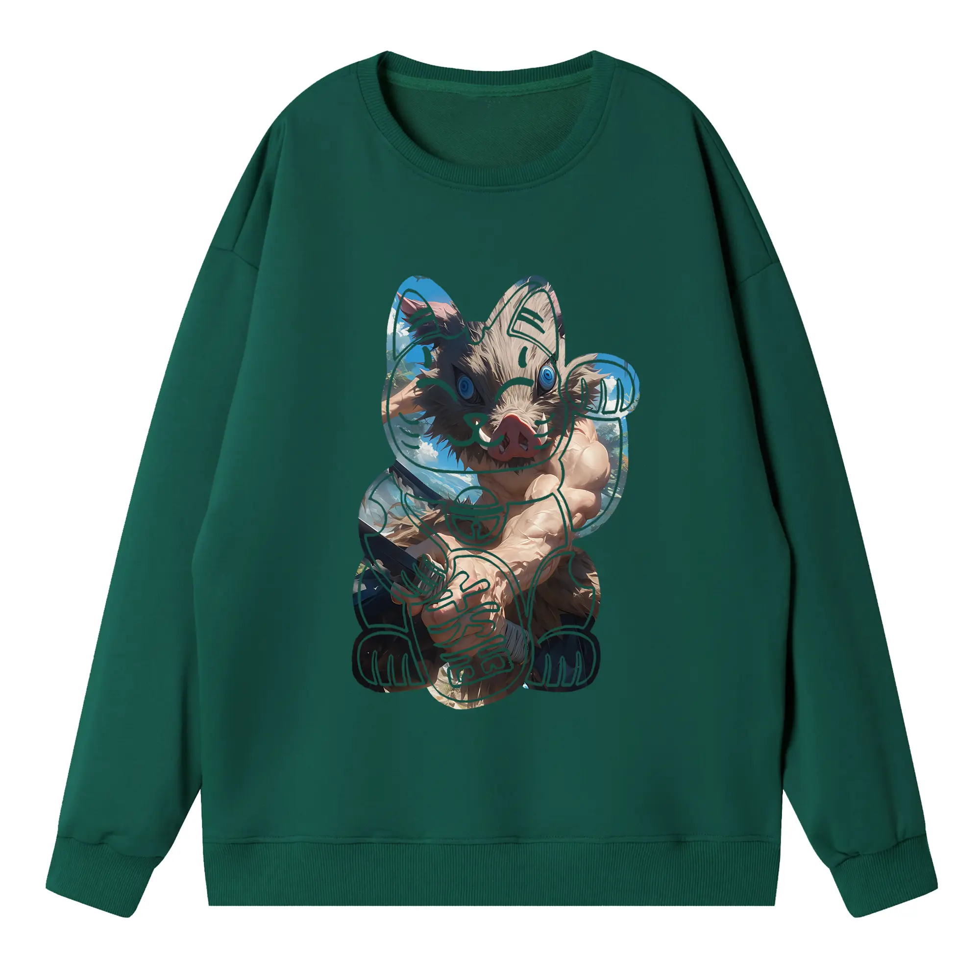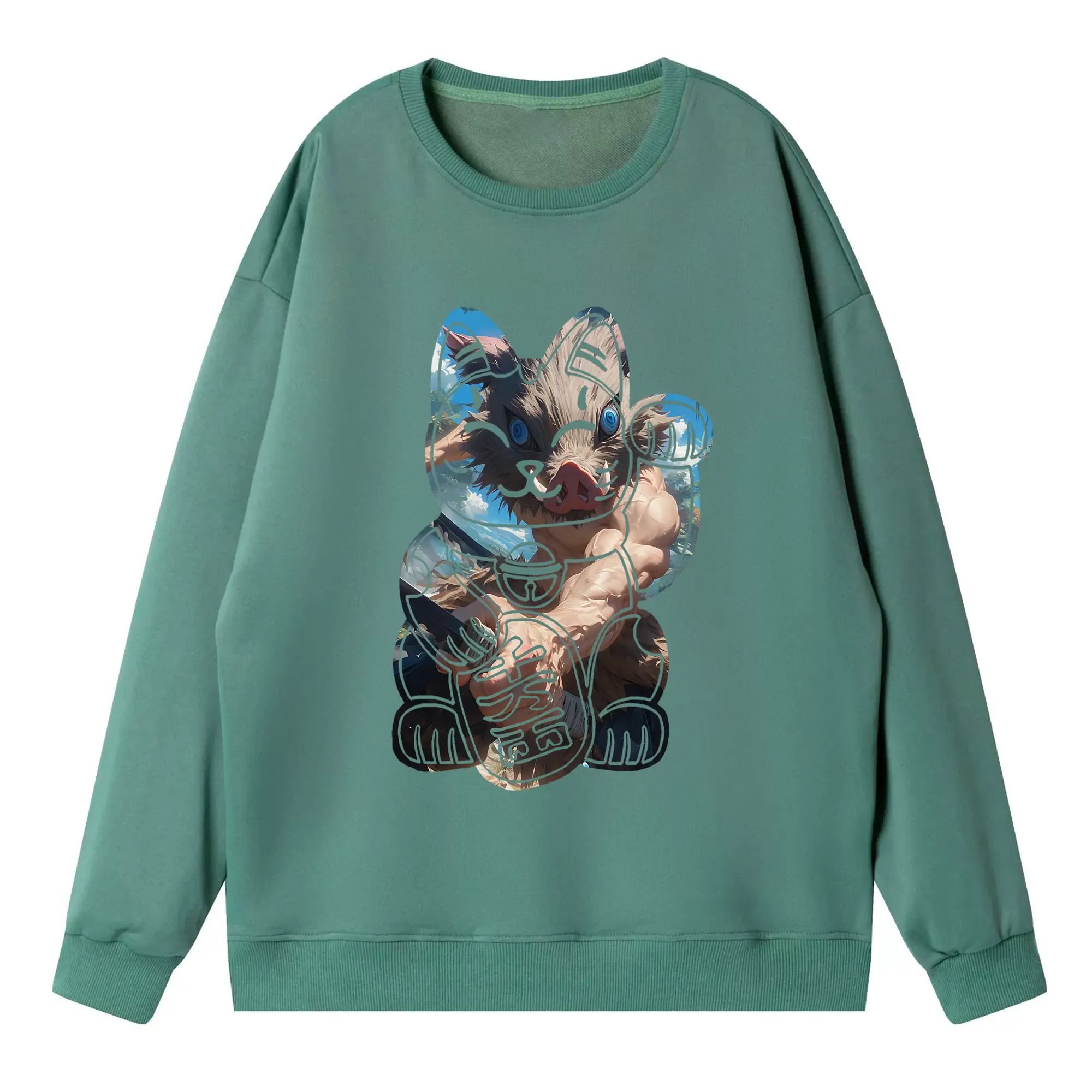 鬼滅の刃 グッズ,嘴平 伊之助 - 高品質 クルーネック スウェット ・ コットン59% ポリエステル41% ・ ユニセックス 長袖 トレーナー ・ カジュアル デイリー スポーツ 散歩用