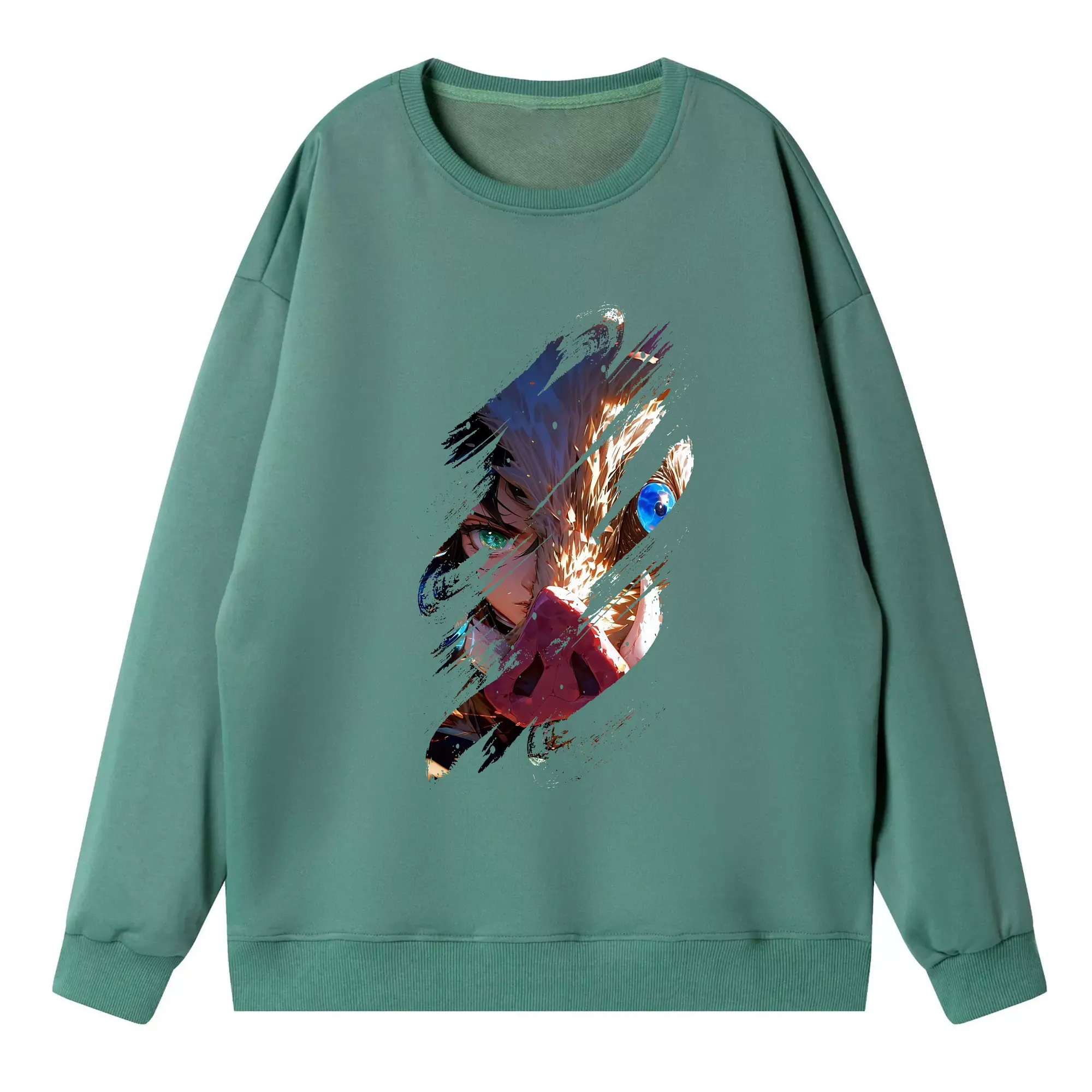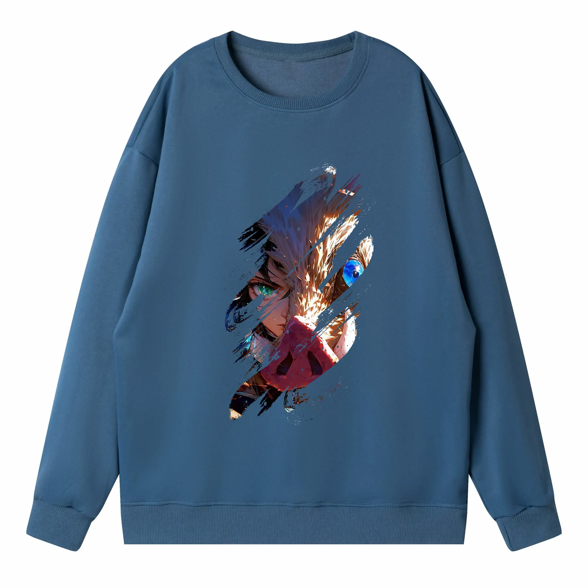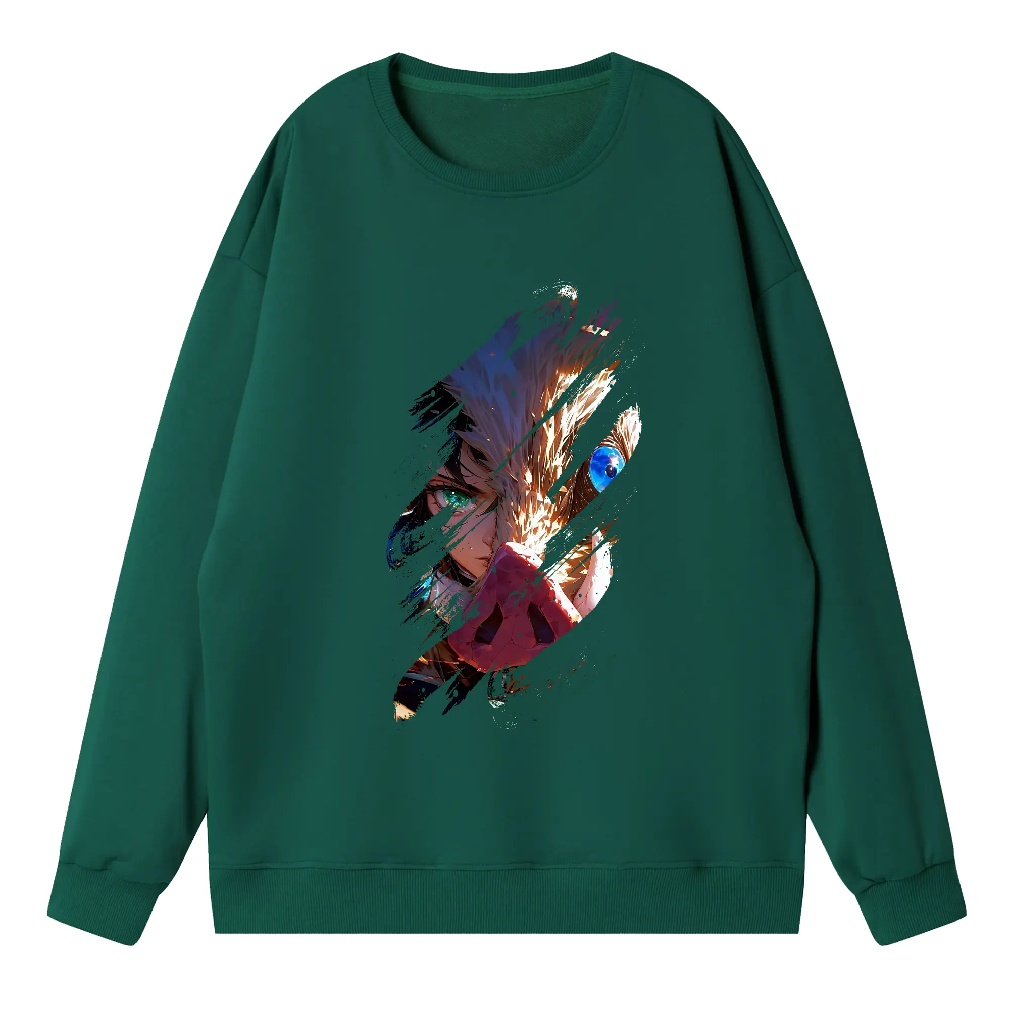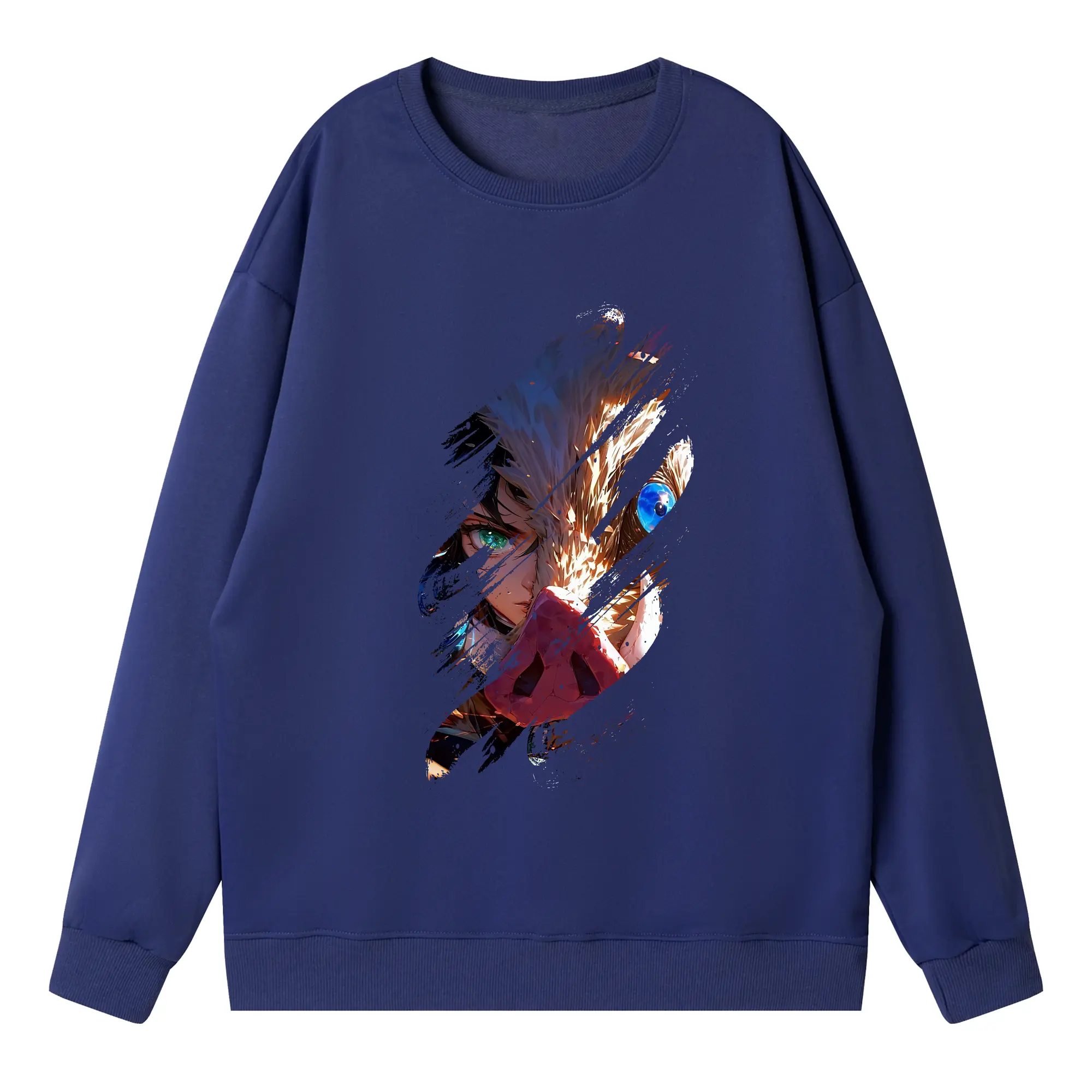 鬼滅の刃 グッズ,嘴平 伊之助 - 高品質 クルーネック スウェット ・ コットン59% ポリエステル41% ・ ユニセックス 長袖 トレーナー ・ カジュアル デイリー スポーツ 散歩用